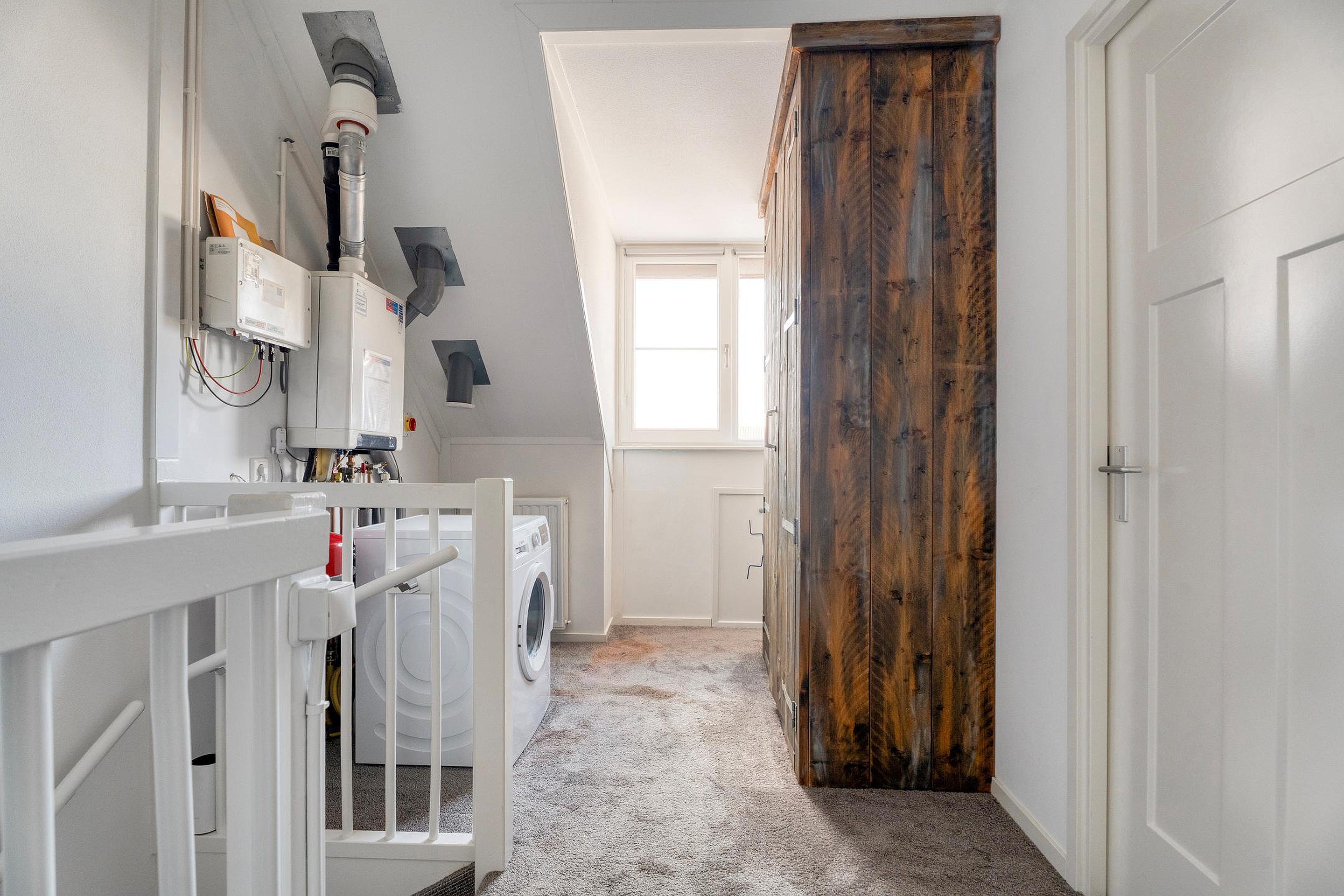Tweede verdieping Via de vaste trap bereikt u de tweede verdieping. De overloop biedt ruimte voor de wasmachine- en drogeraansluiting en geeft toegang tot de aanwezige vertrekken.