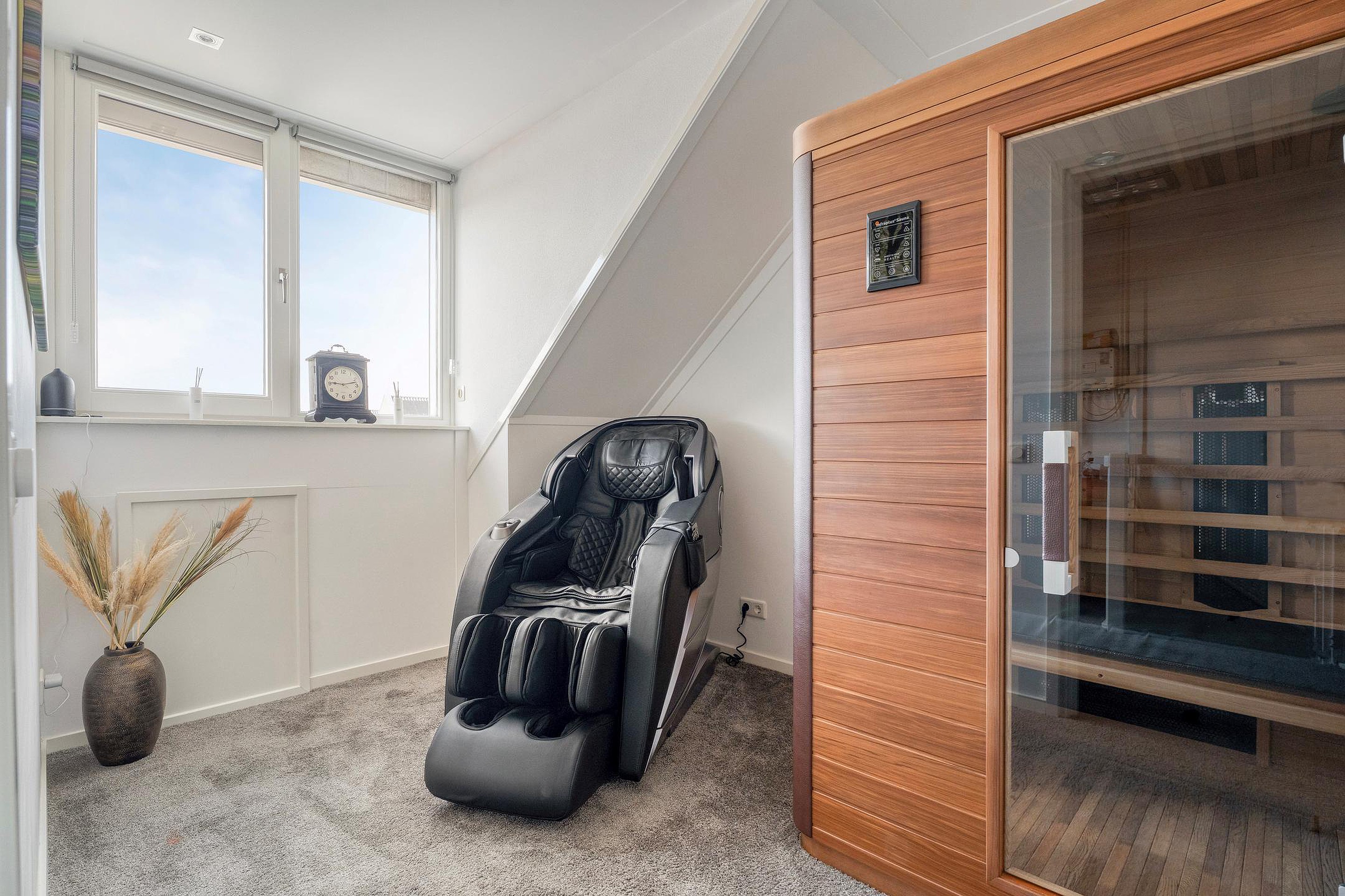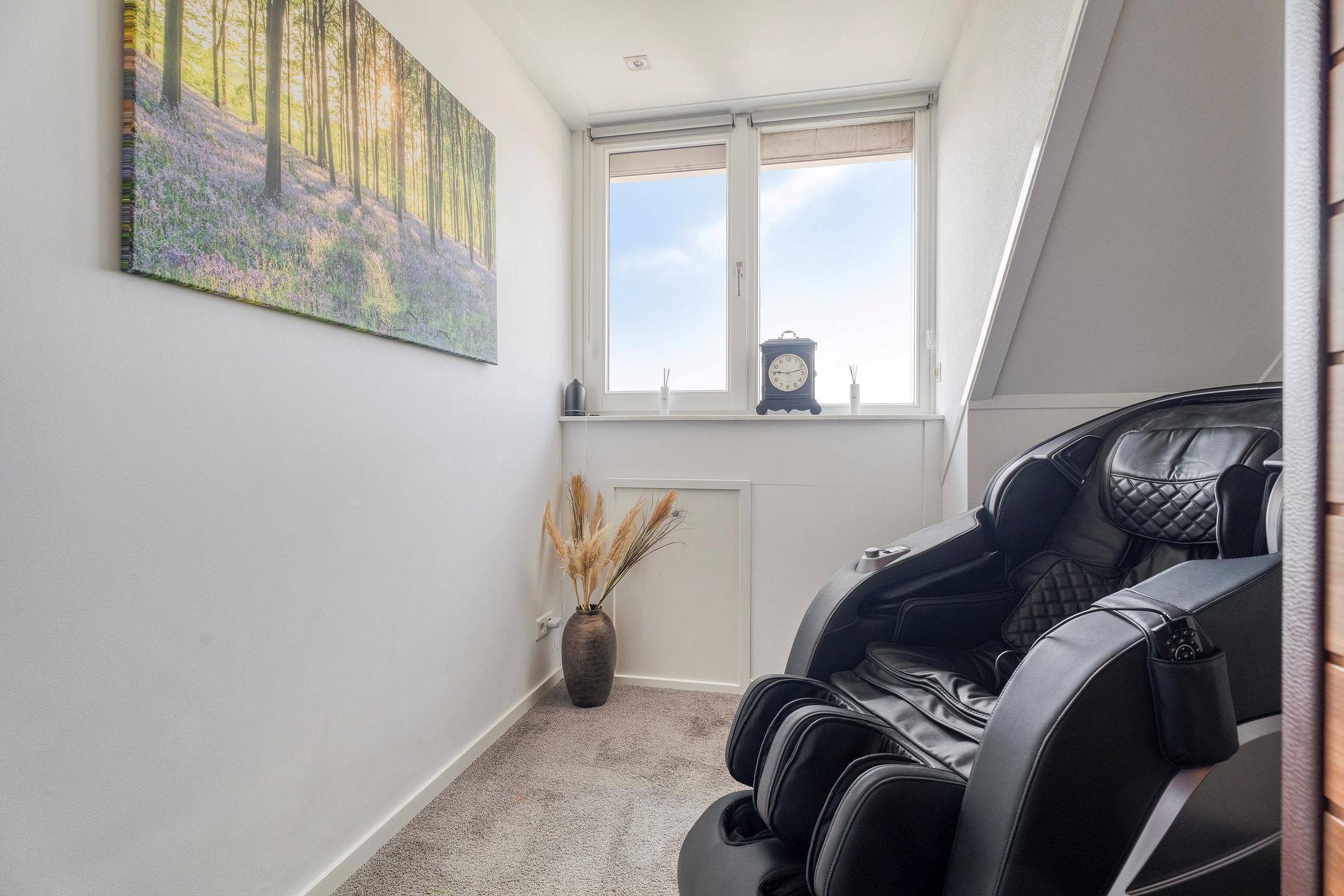 Ook boven is het comfort goed doorgevoerd. De eerste verdieping biedt twee ruime slaapkamers en een complete badkamer met ligbad, douche en dubbele wastafel. De tweede etage is volledig ingericht en biedt extra ruimte voor slapen, werken of spelen.