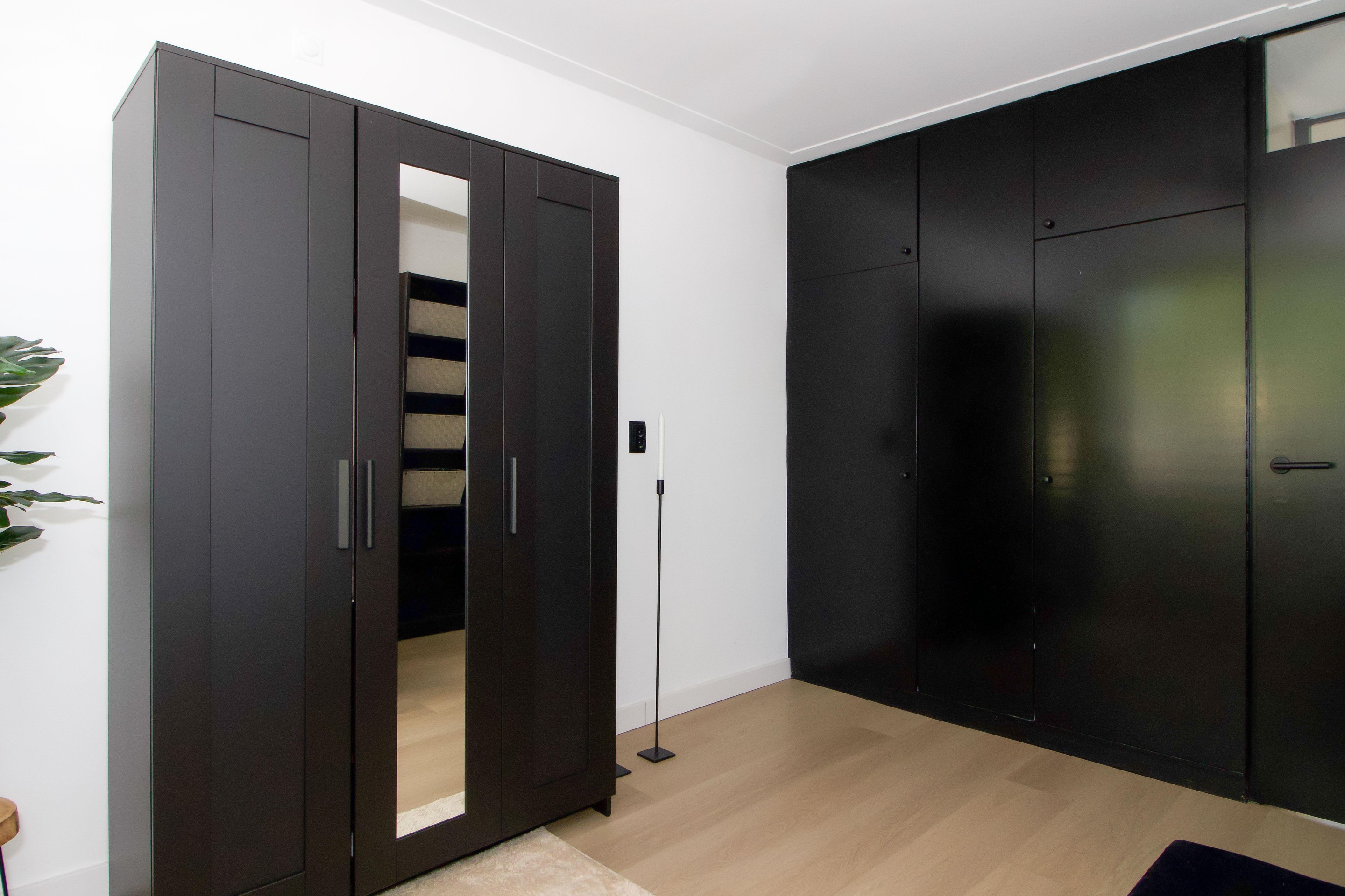 Aan beide zijden bevinden zich praktische vaste kasten achter de knieschotten, waardoor er volop bergruimte is voor koffers, seizoensspullen of kleding.