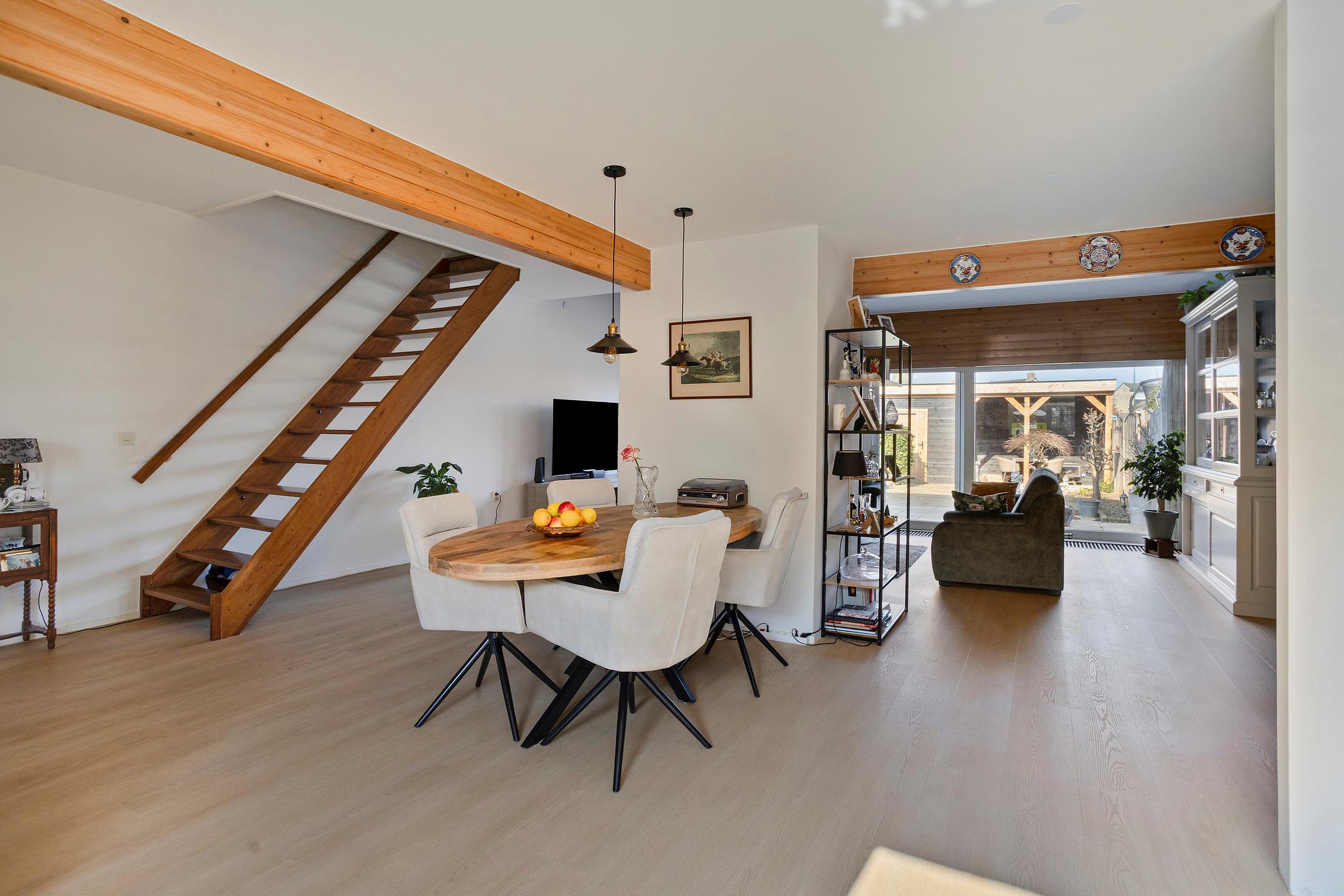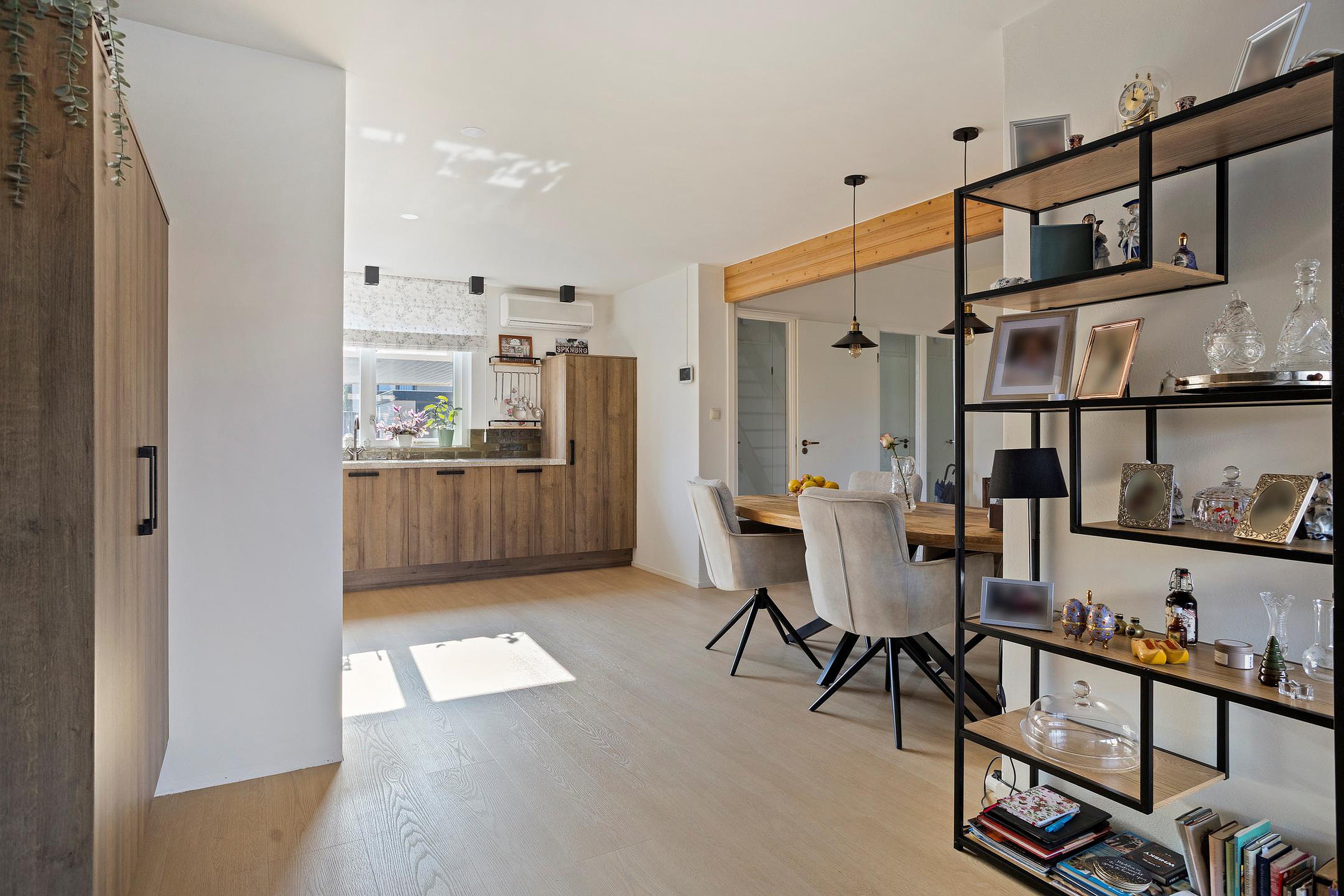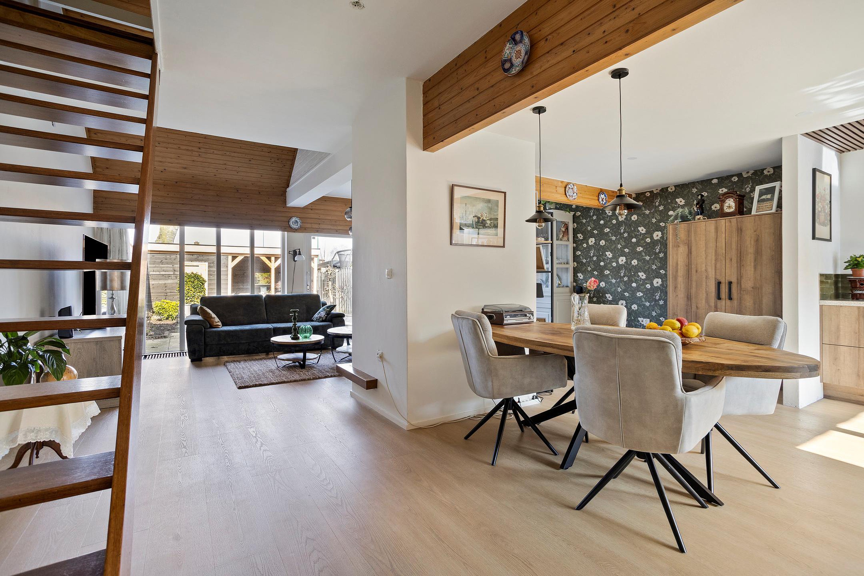 De woning is de afgelopen jaren gemoderniseerd met onder andere een nieuwe keuken (2024), een modern toilet (2024) en maar liefst 24 zonnepanelen. De woonkamer is opvallend ruim en speels ingedeeld door een centrale kolom met schoorsteenkanaal. Aan de voorzijde bevindt zich de open keuken in hoekopstelling met schuifpui naar de verzorgde achtertuin op het noordwesten, voorzien van een veranda, berging en achterom.