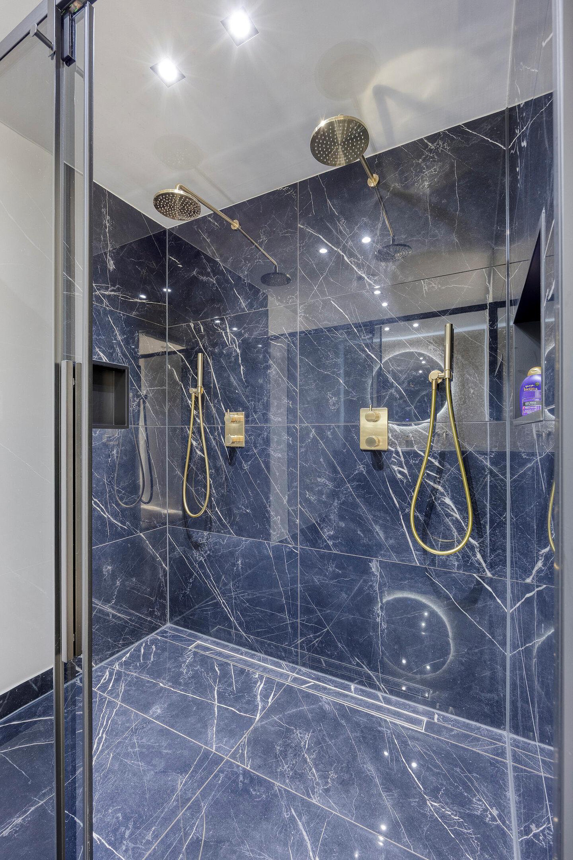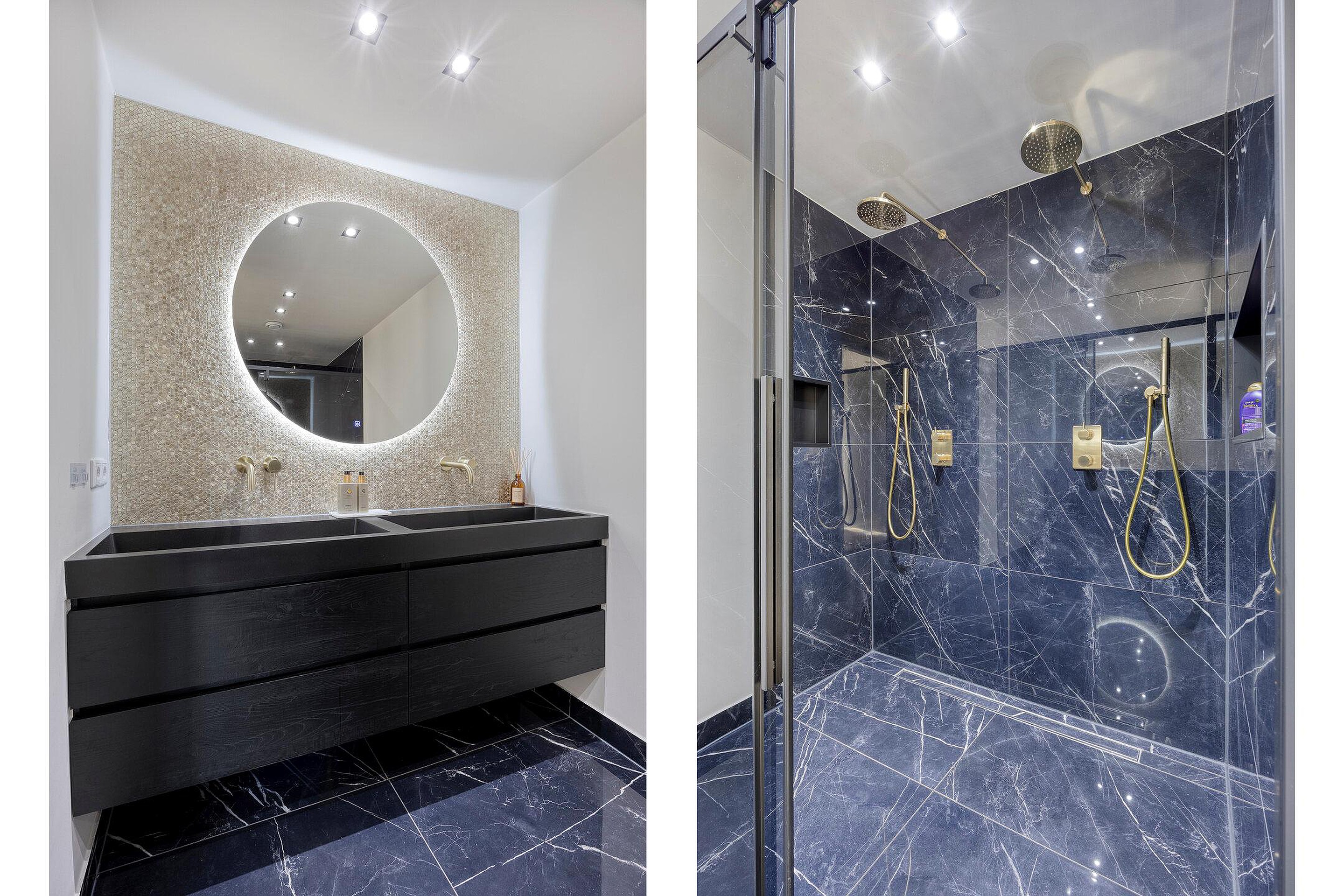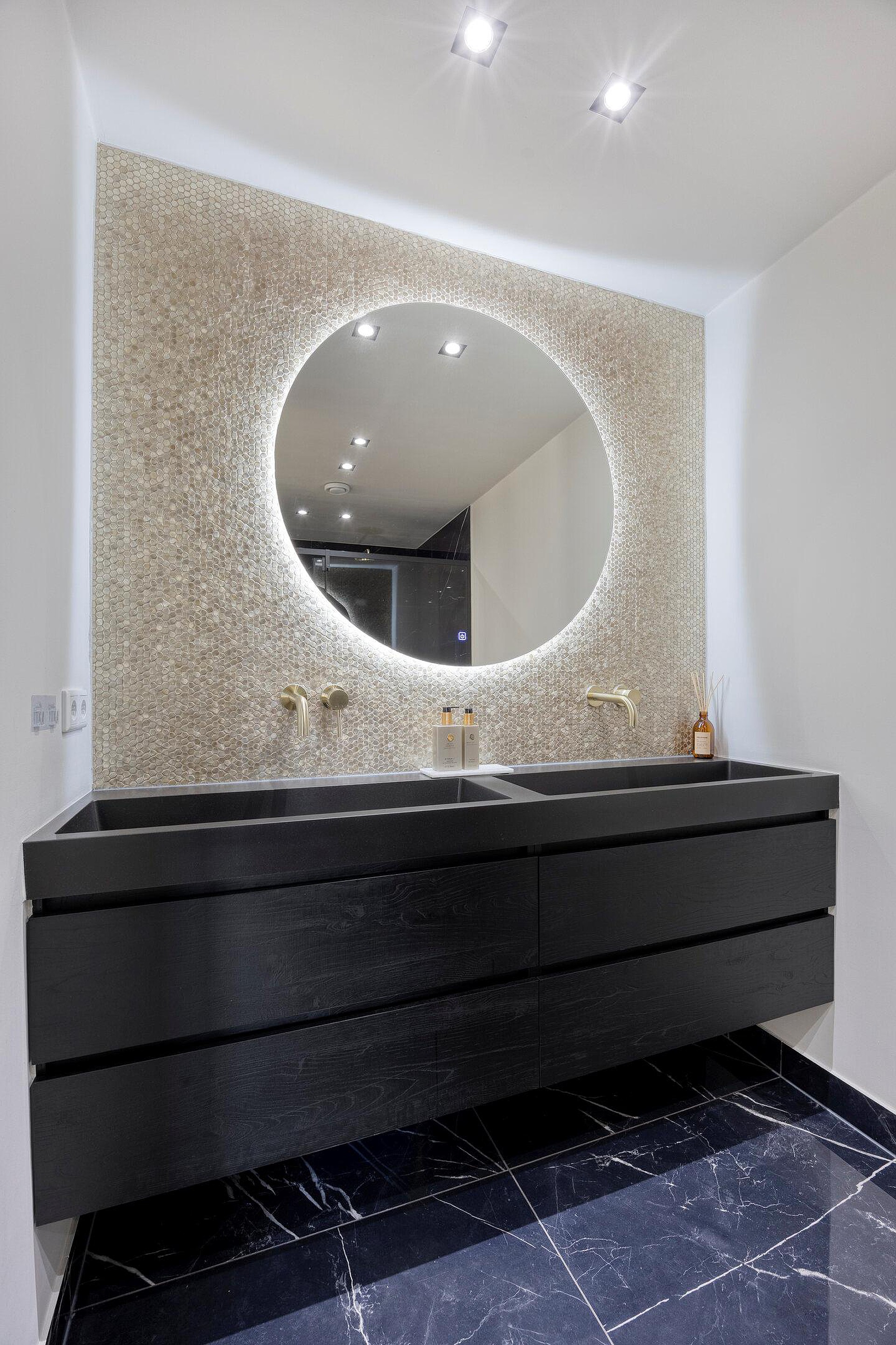 Overloop met separaat toilet. Drie ruime slaapkamers, waarvan de ouderslaapkamer is voorzien van airconditioning. Moderne badkamer met dubbele wastafel en royale inloopdouche met regen- en handdouche. Vloerverwarming op de gehele verdieping.