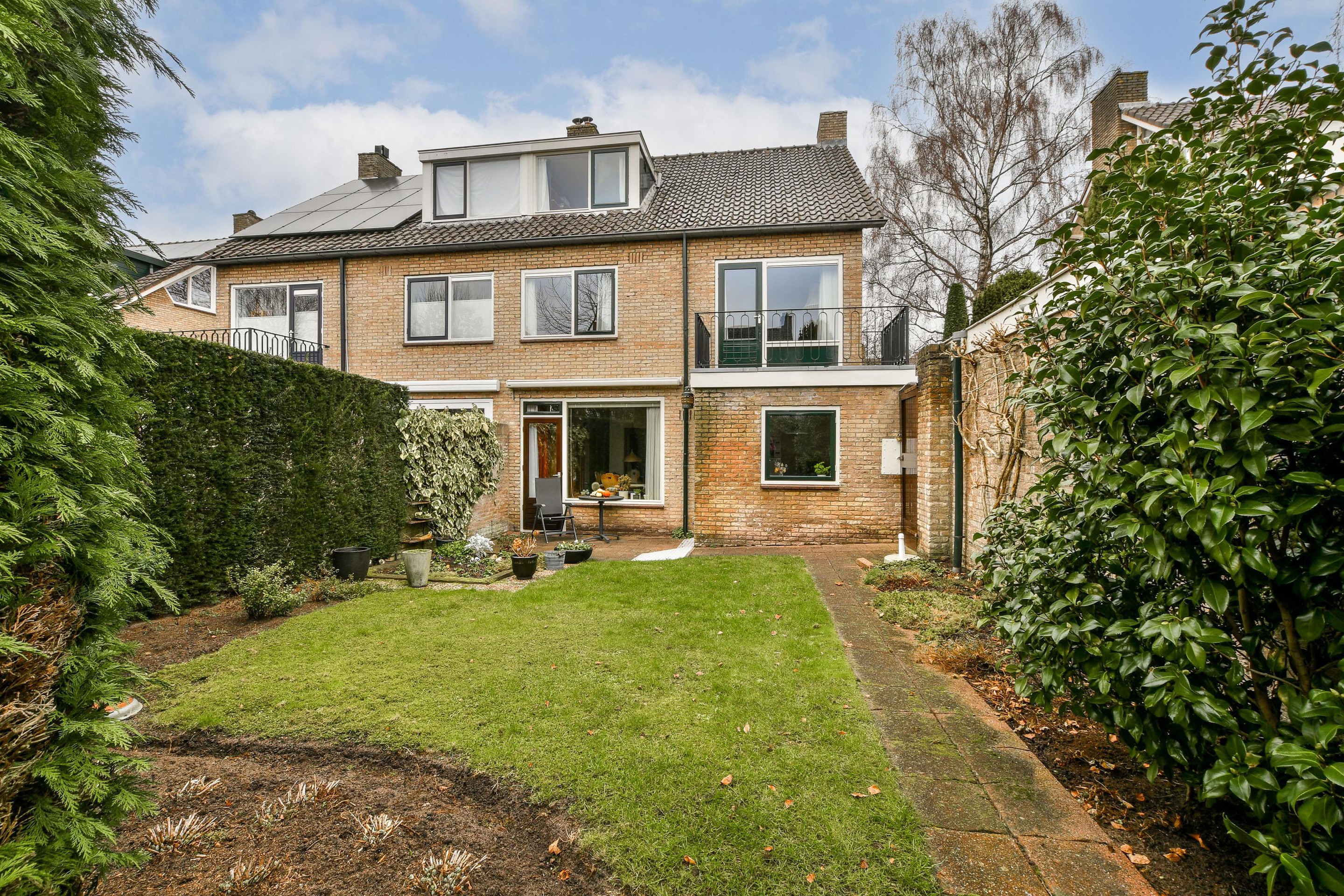 Aan de voorzijde van de woning bevindt zich een eigen oprit met plek voor minimaal twee auto’s en toegang tot de stenen garage van meer dan 8 meter diep. De achtertuin is is voorzien van een gazon dat overzicht en ruimte biedt. Het aanwezige groen zorgt voor een beschut gevoel en draagt bij aan de privacy.