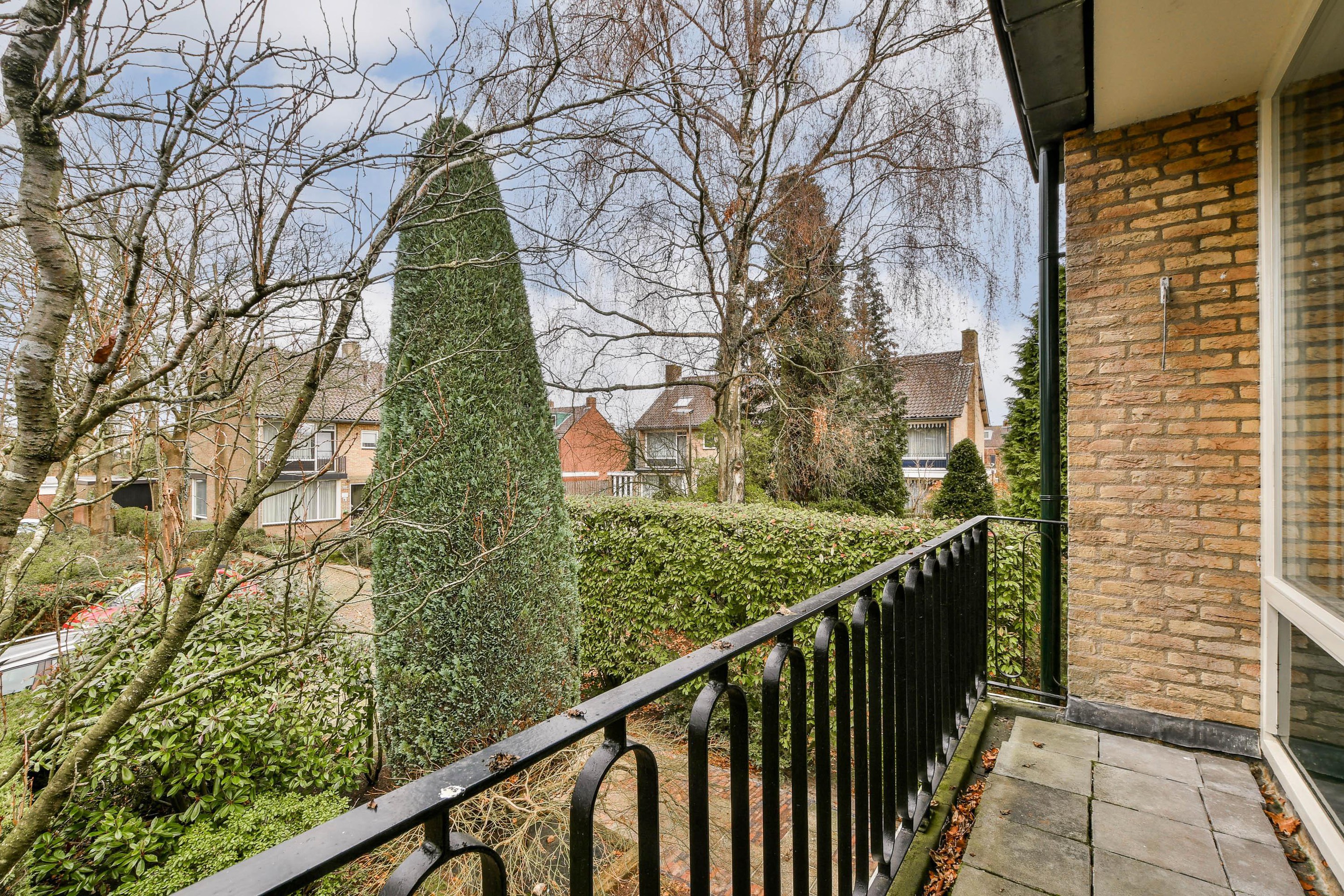Aan de achterzijde van deze verdieping heeft het balkon voldoende ruimte voor een zit om te genieten van de zon met uitzicht over de tuin.