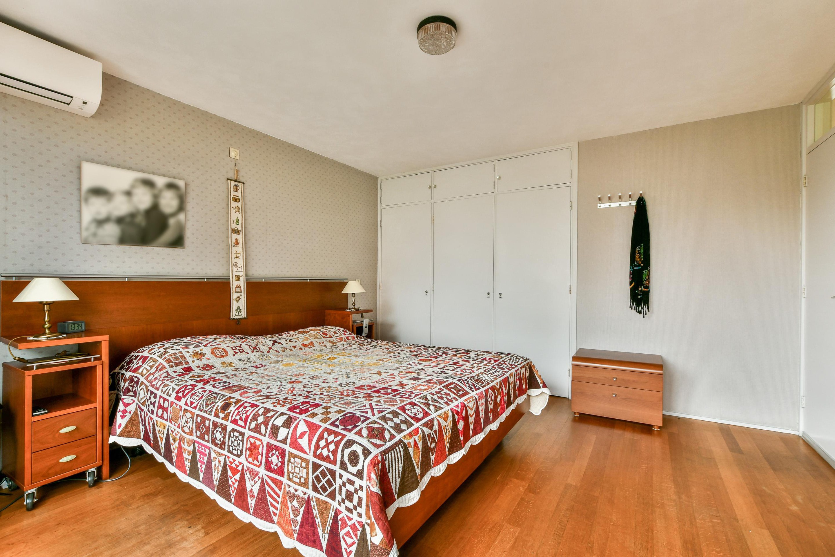 Via de trap in de hal bereikt u de eerste verdieping. Hier bevinden zich drie slaapkamers, waarvan twee riante aan de voor- en achterzijde, beide met balkon. Eén van deze slaapkamers is voorzien van airconditioning.