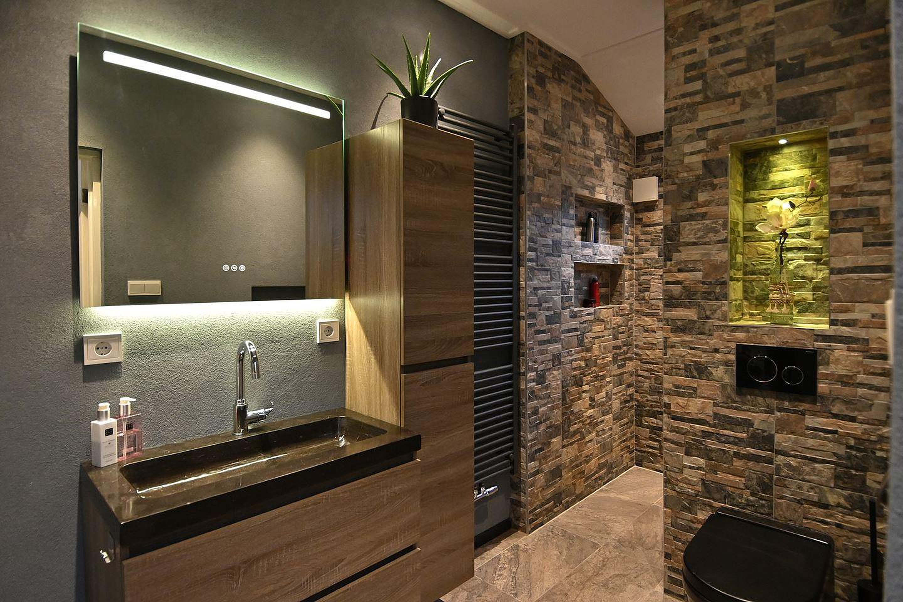 Begane grond: Entree, halletje, woon-/eetkamer met laminaatvloer, ruime keuken met diverse inbouwapparatuur en toegang tot de moderne badkamer met inloopdouche, zwevend toilet, wastafel verwerkt in meubelen en voorzien van vloerverwarming, De provisiekelder is vanuit de hal bereikbaar.