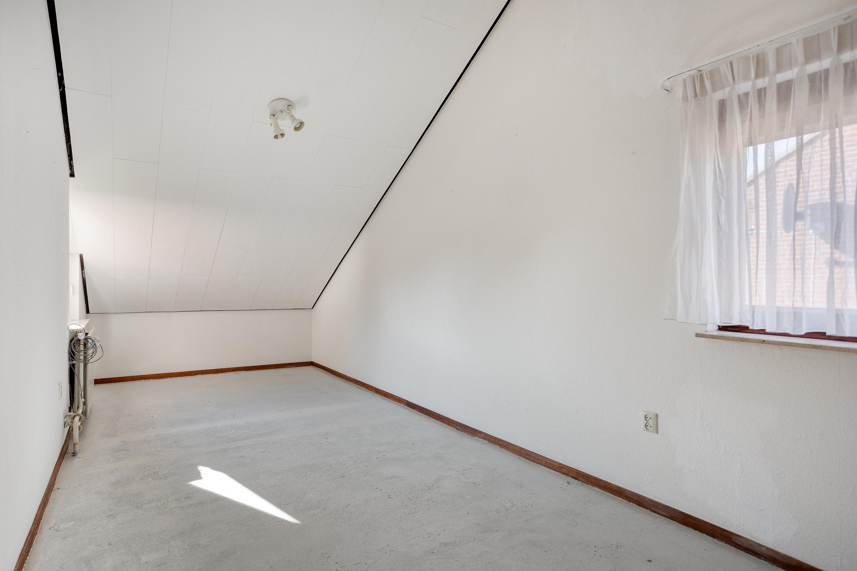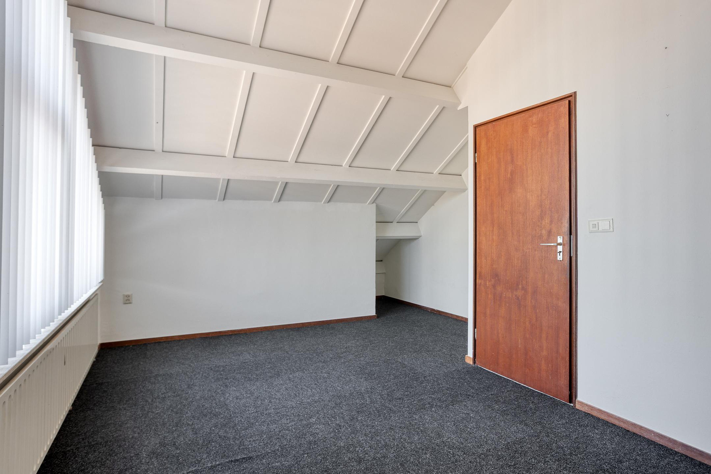 Bereikbaar via de vaste trap, hier bevindt zich slaapkamer V (ca.18m2), met een ruimtelijk gevoel door plafondhoogte tot aan het dak. De vloer is van niet verlijmde tapijttegels voorzien. De bergruimte (ca.14m2) biedt veel plek voor opslag, ook zijn hier de cv-ketel en de boiler geïnstalleerd.