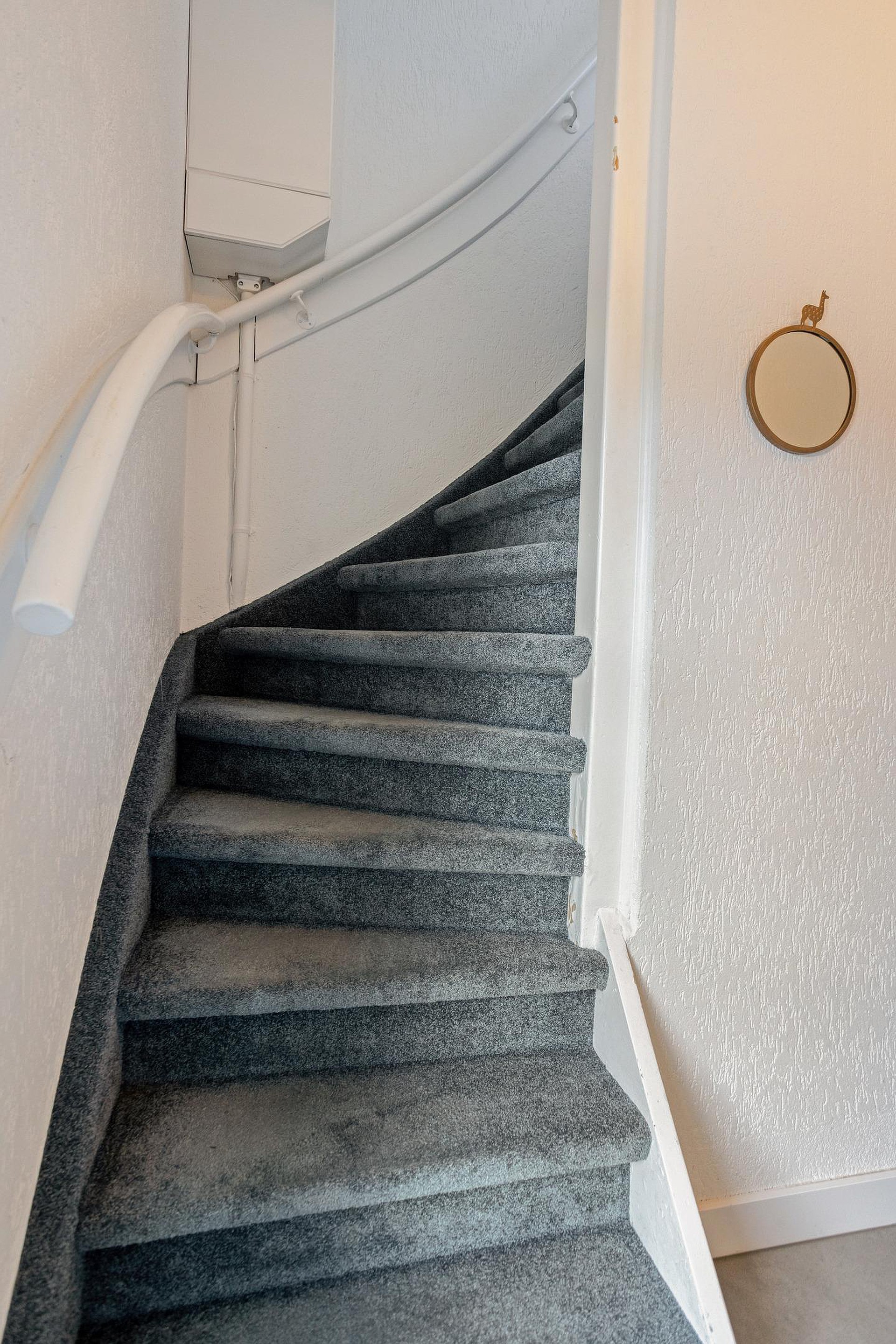 Via de vlizotrap bereikt men de bergzolder waar de cv-ketel en de omvormer van de zonnepanelen zich bevinden.