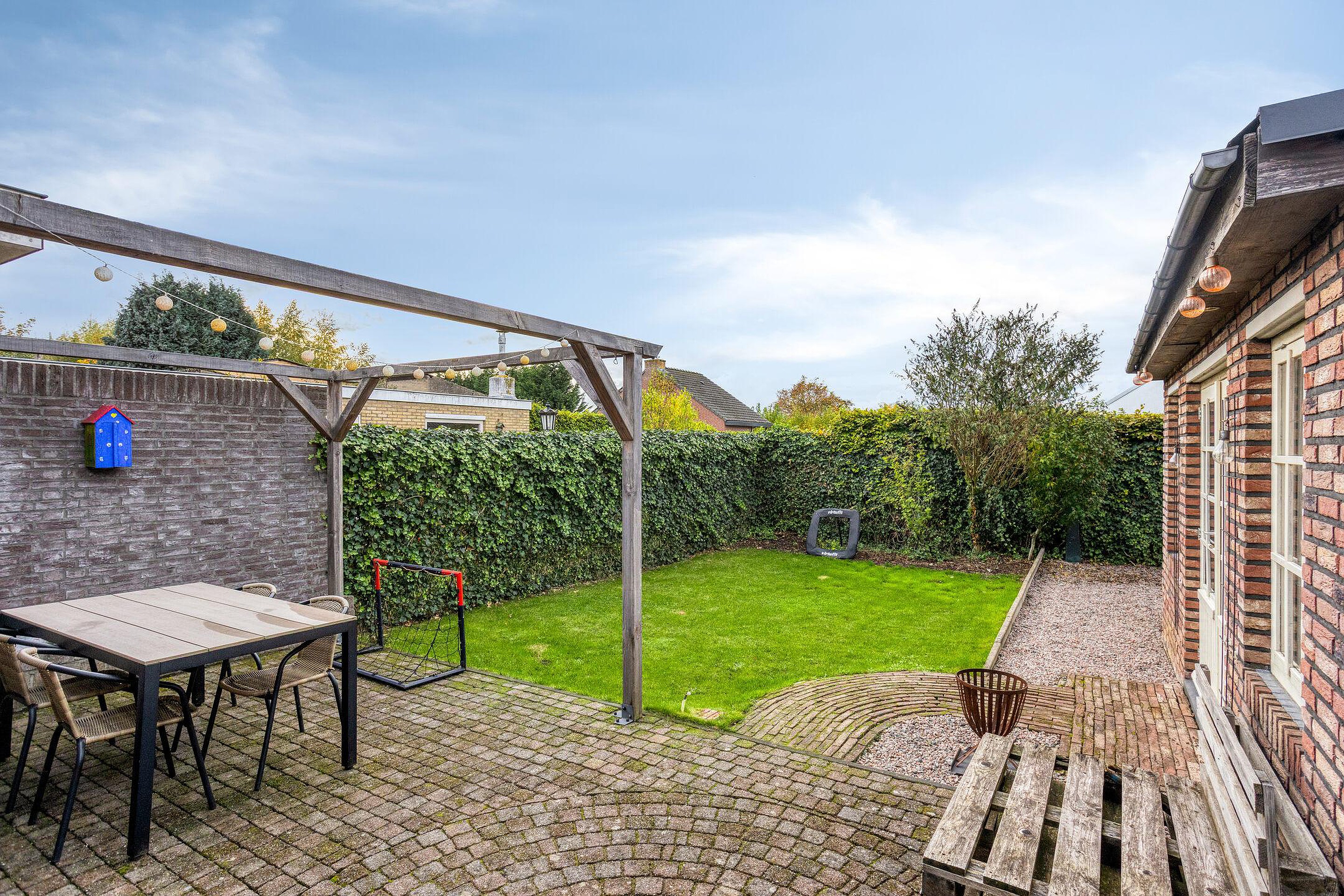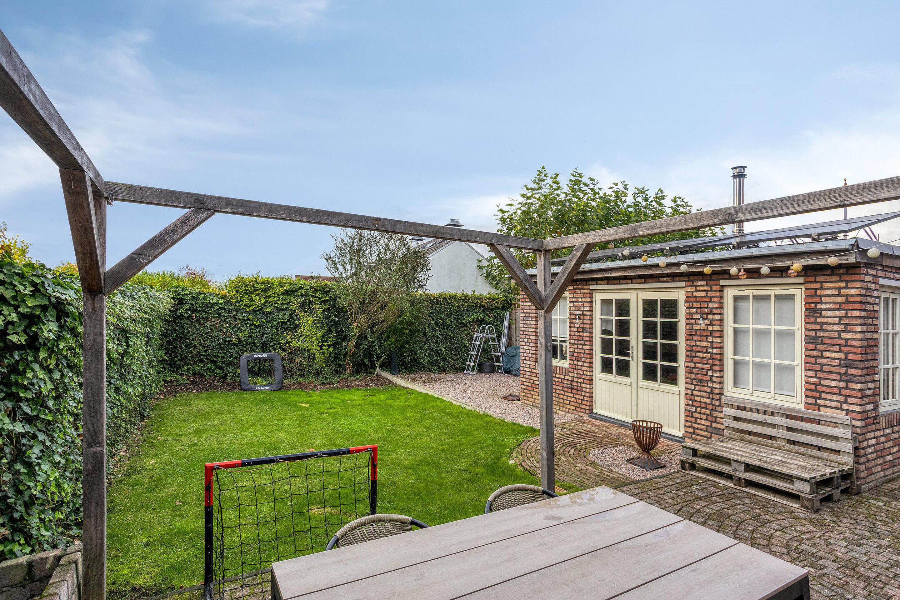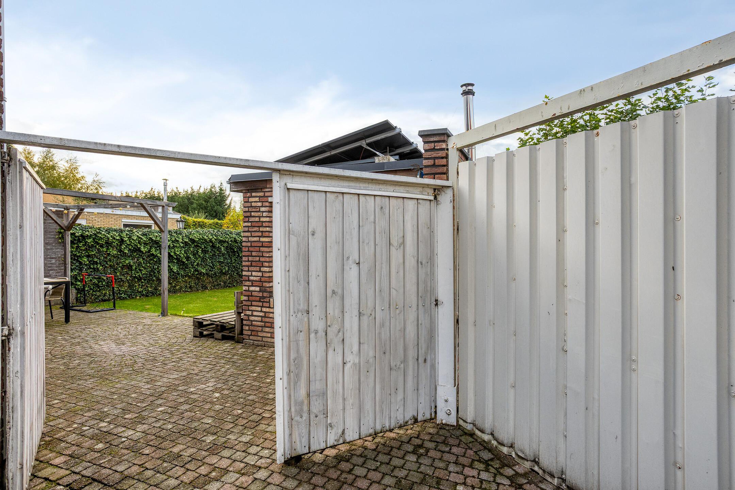 De zonnige, op het westen gelegen achtertuin is een heerlijke plek om van de middag- en avondzon te genieten. Van zowel de living als de keuken stap je zo de tuin in, hier staat een solide, in spouwmuur opgetrokken stenen berging voorzien van een gezellige houtkachel, perfect voor hobby's, klussen of ontspannen avonden. De tuin is ook bereikbaar via de gedeelde oprit aan de zijkant van het huis. aan de voorzijde beschikt de woning bovendien over een eigen oprit met parkeergelegenheid voor de auto.