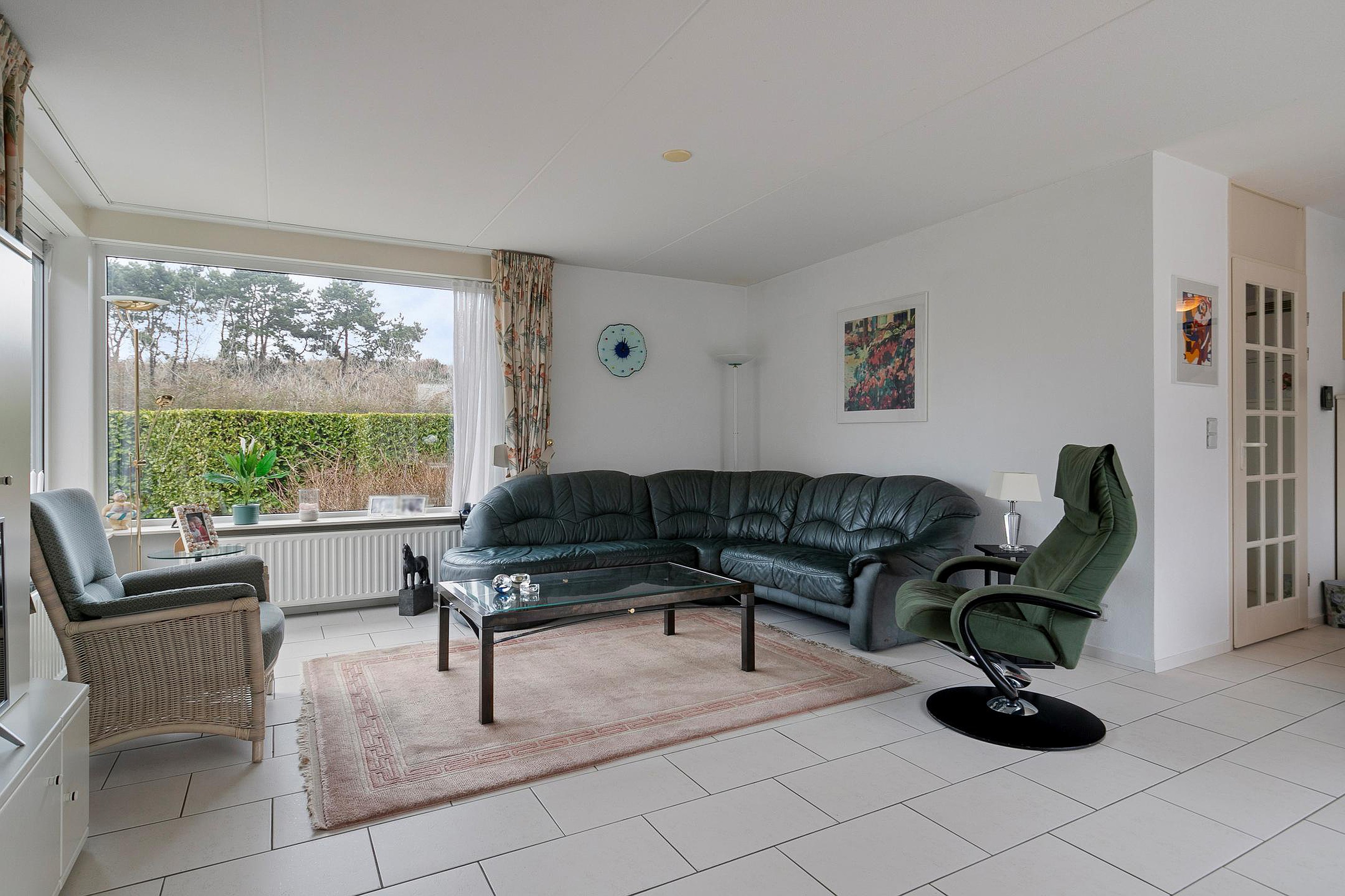 Bij binnenkomst valt direct de ruime en lichte woonkamer op. Dankzij de grote raampartijen is er veel natuurlijk licht en heb je een mooi uitzicht op de tuin. De open indeling geeft een ruimtelijk gevoel, terwijl de keuken op een speelse manier wordt afgescheiden met een halfhoog muurtje. Dit creëert een gezellige sfeer waarin koken en leven samenkomen.