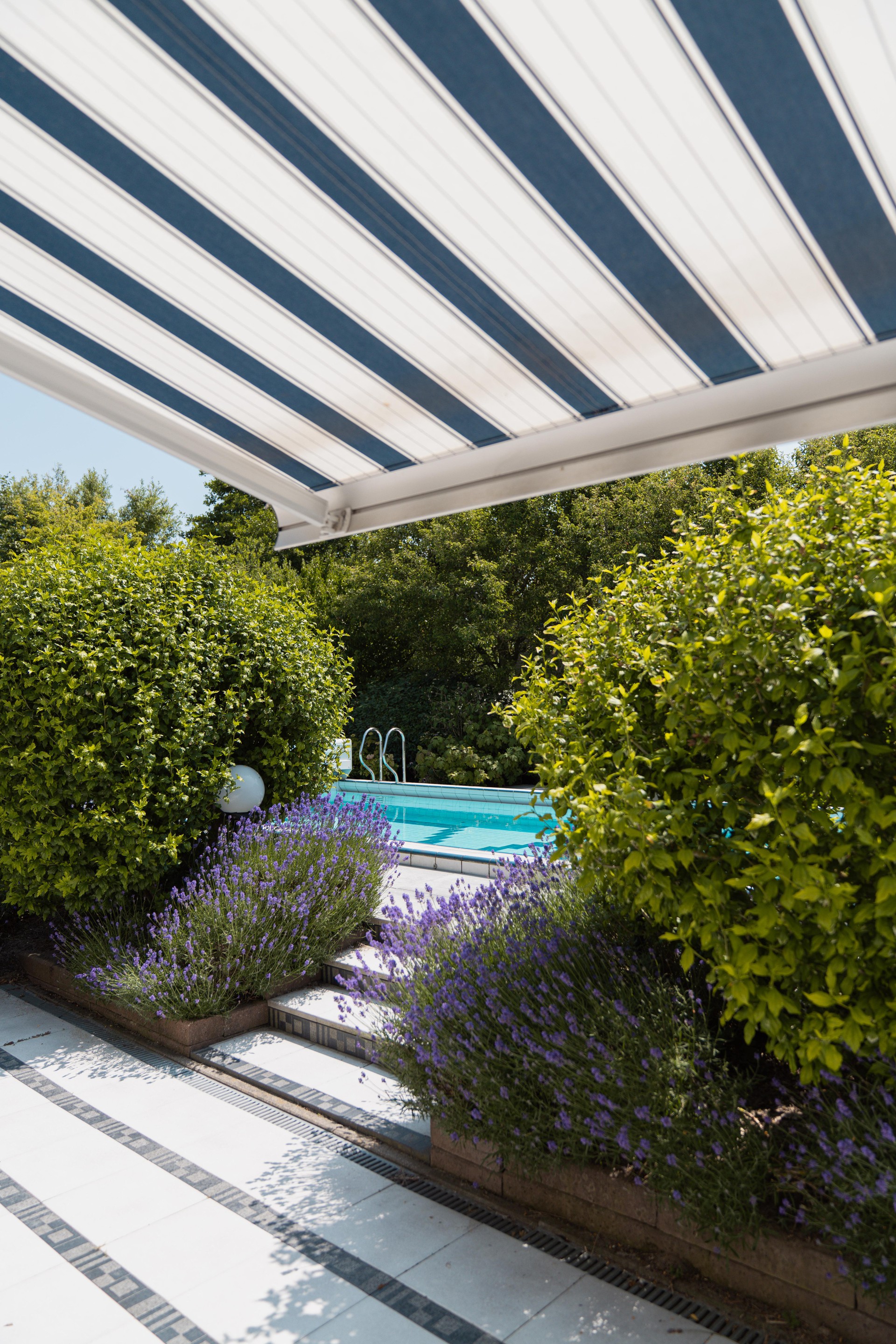 De tuin is een heerlijke plek om te ontspannen. Mooi aangelegd en met een ideale ligging op het zuidwesten geniet je hier de hele dag door van de zon. Het verwarmde zwembad zorgt voor extra luxe en verkoeling op warme dagen – een echt vakantiegevoel in je eigen achtertuin!