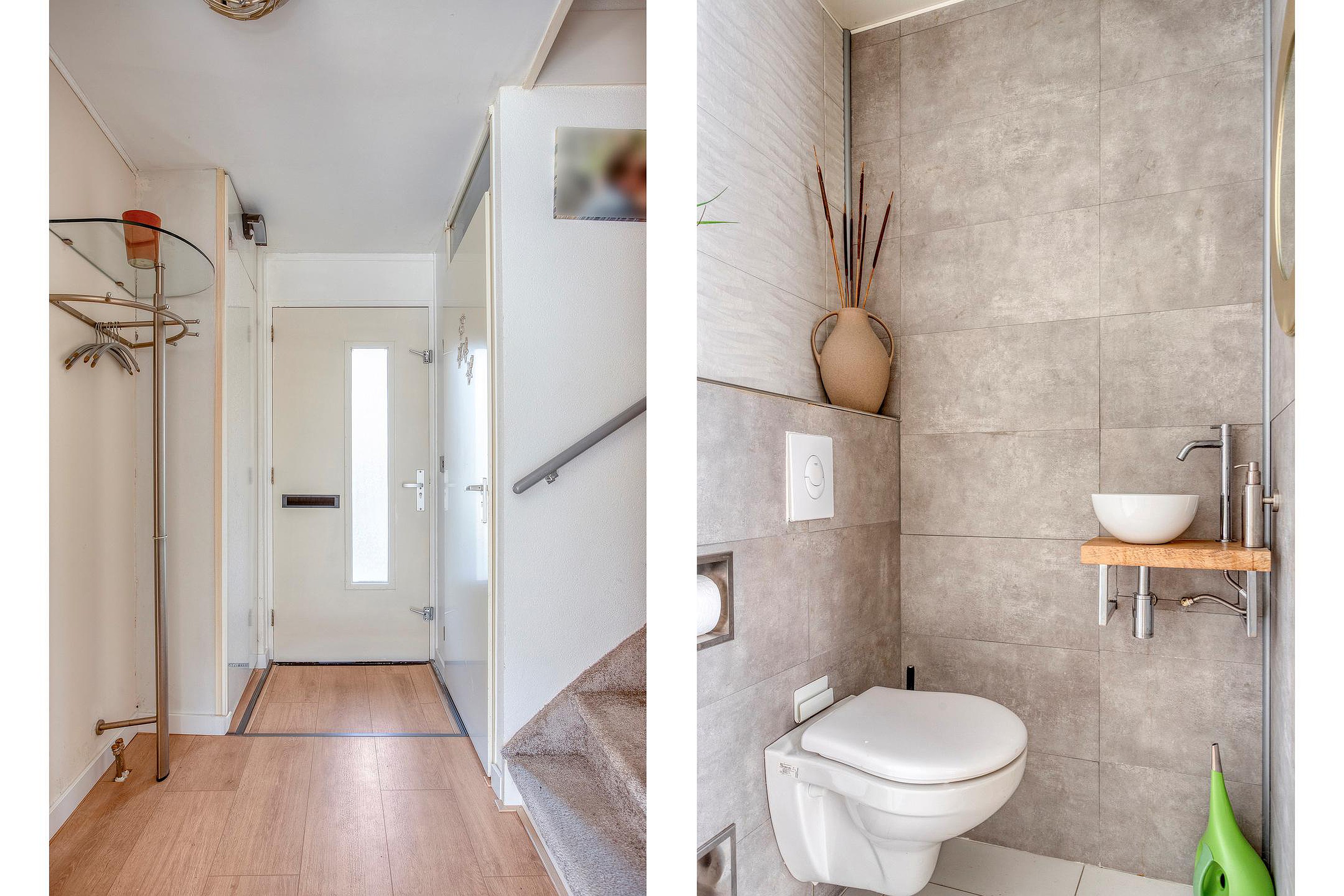 Entree/hal, met toegang tot de woonkamer, toilet, meterkast en trapopgang naar de eerste verdieping.