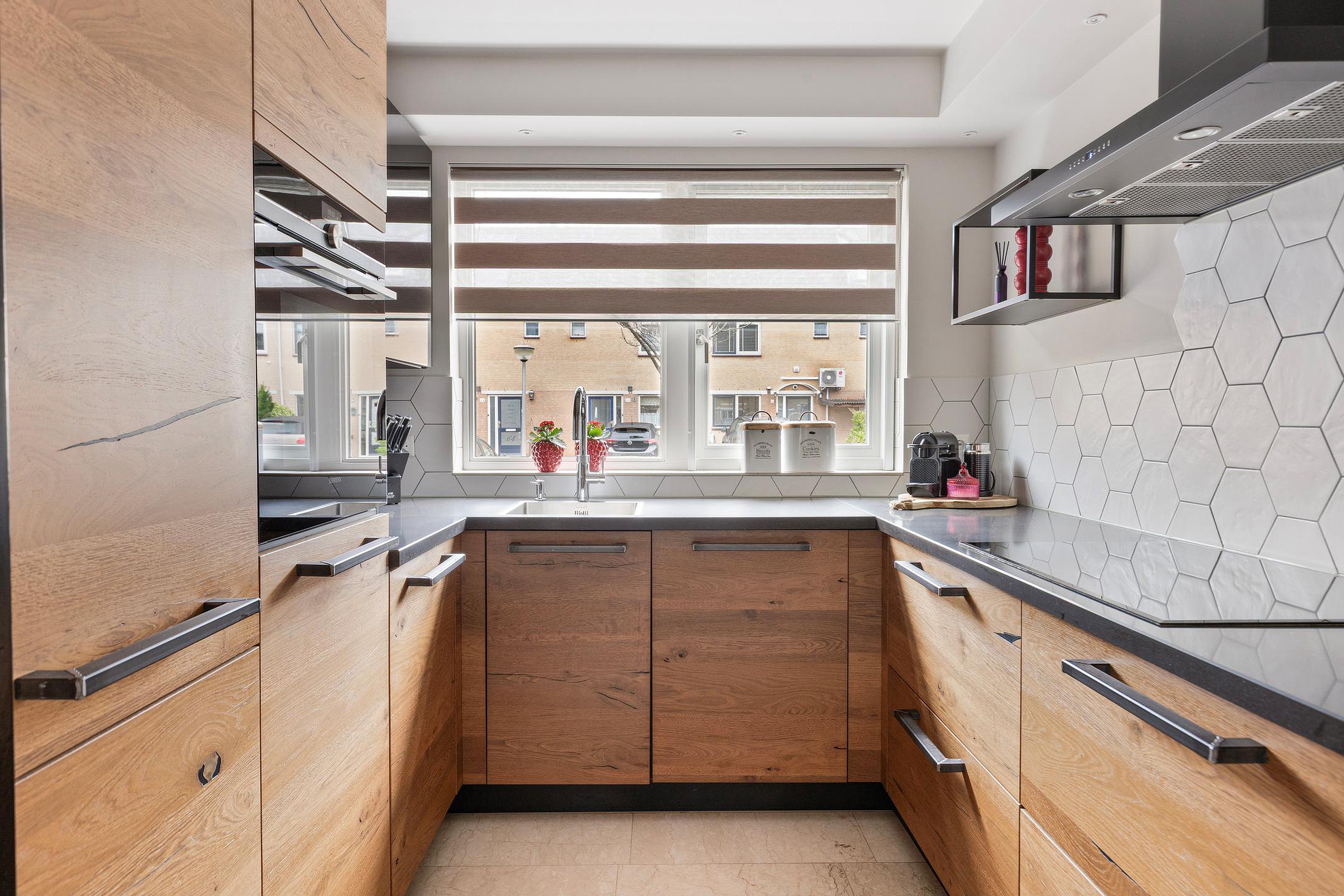- Moderne open keuken met uitzicht op pleintje