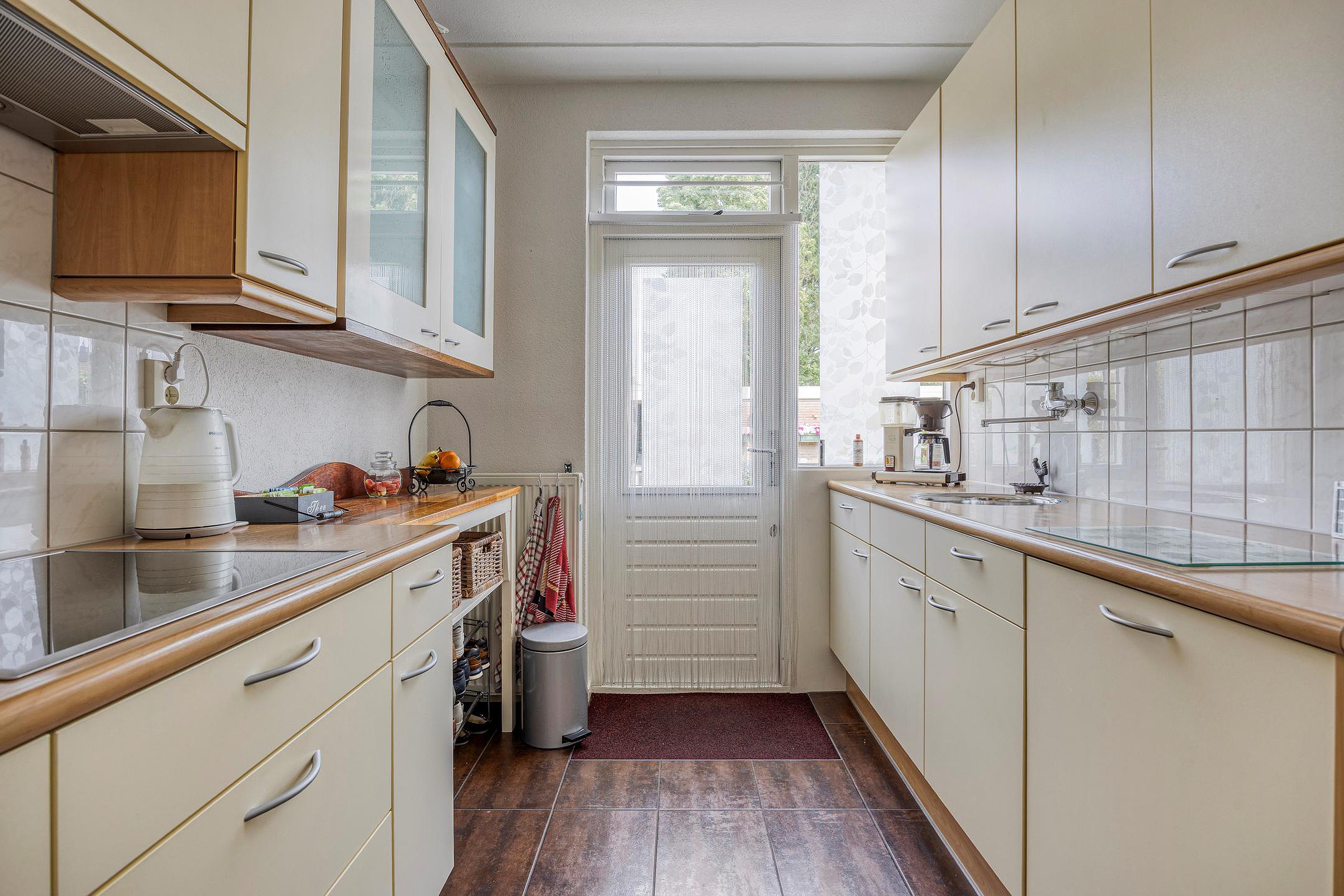Keuken, een afgesloten ruimte grenzend aan de achtertuin. Voorzien van een keukenblok in een dubbel rechte opstelling met een inductie kookplaat, afzuigkap, koelkast, vaatwasser en combimagnetron. Deze ruimte is voorzien van een tegelvloer afwerking met vloerverwarming.