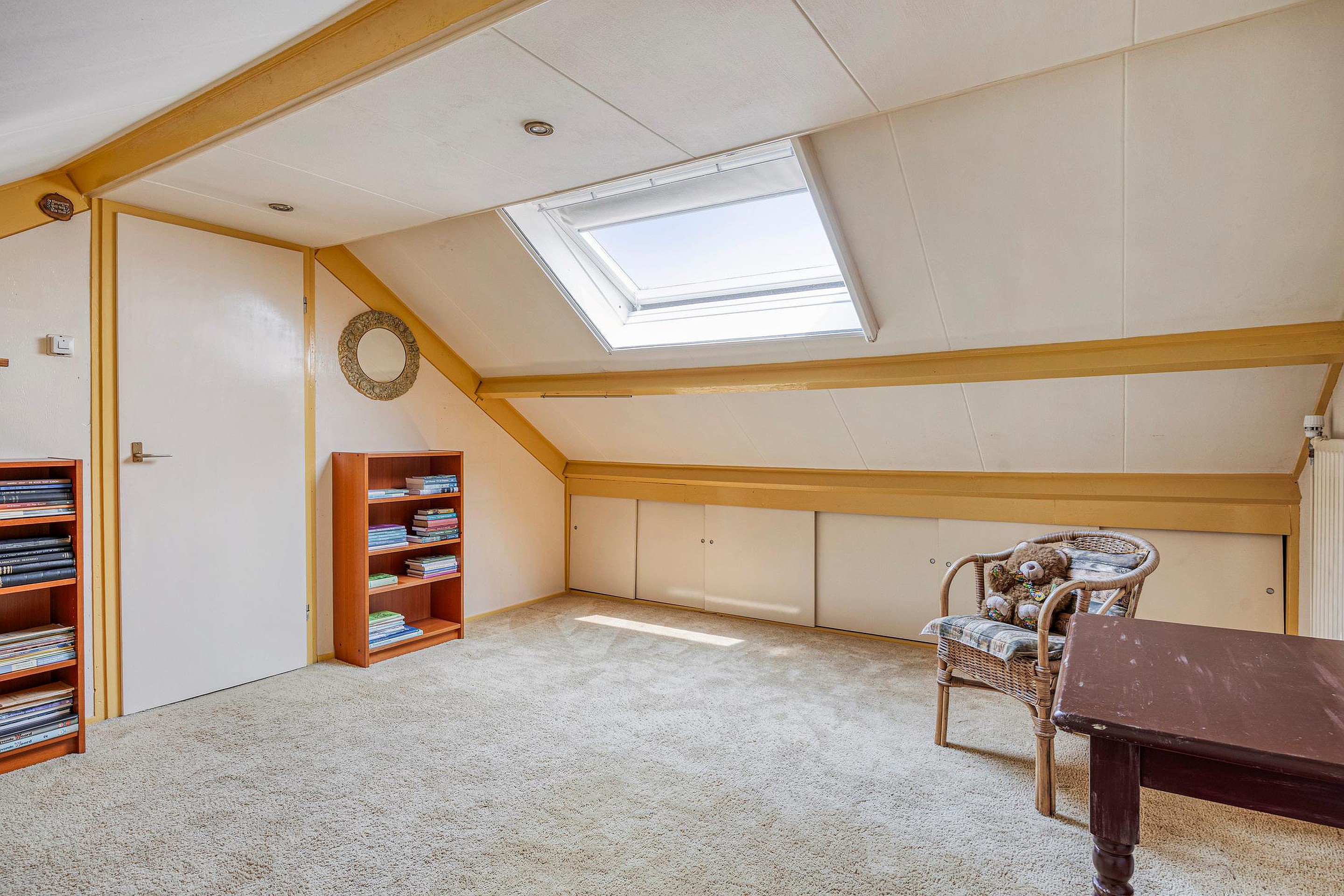 Slaapkamer 4, een ruime zolderkamer voorzien van tapijt vloerafwerking en een Velux dakraam aan de achterzijde.