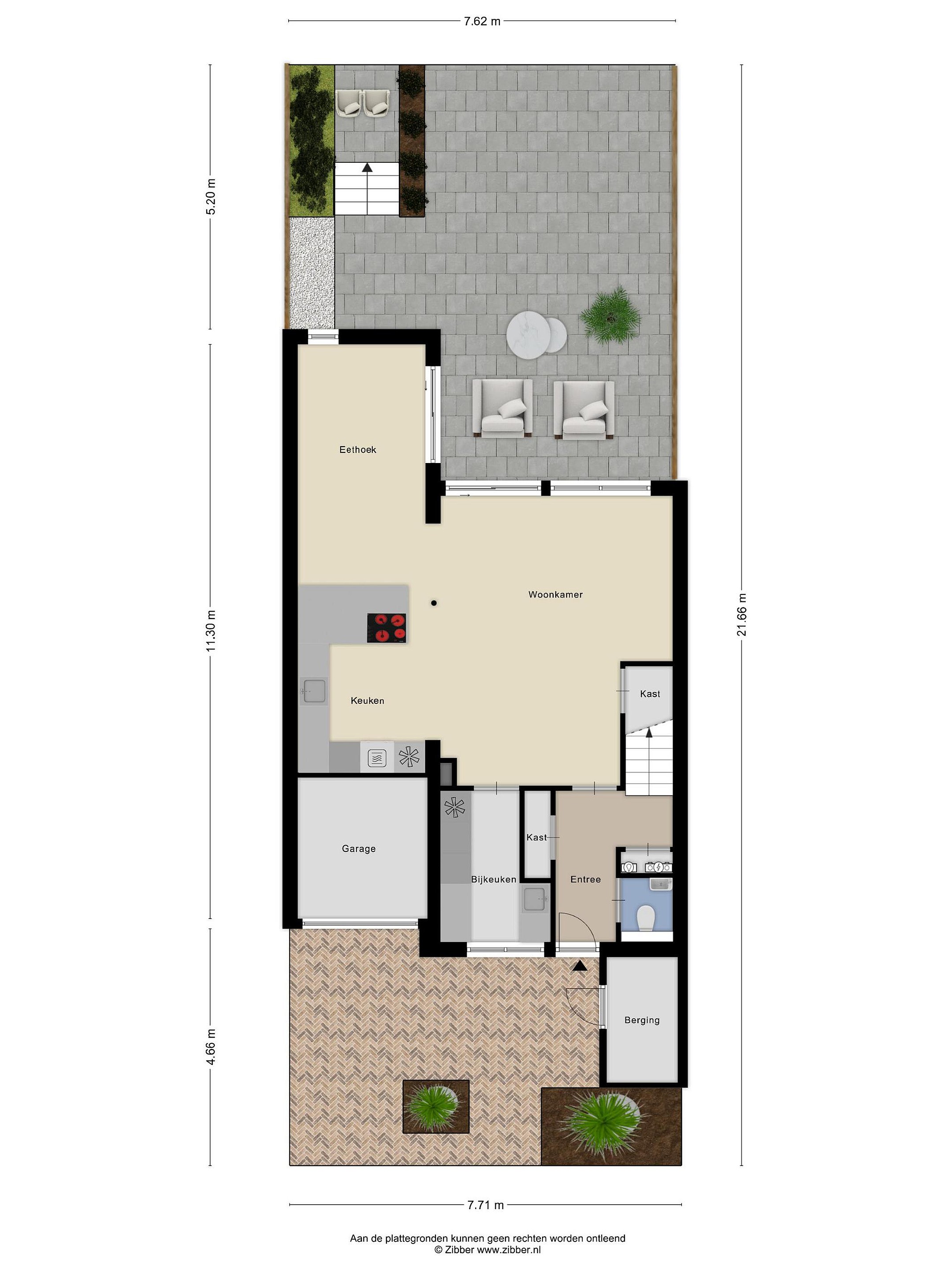 Tuin Aan de voorzijde van de woning beschikt u over een eigen parkeerplaats, een schuur van 4 m2 en een berging met roldeur (7 m2), afkomstig van de oorspronkelijke garage.