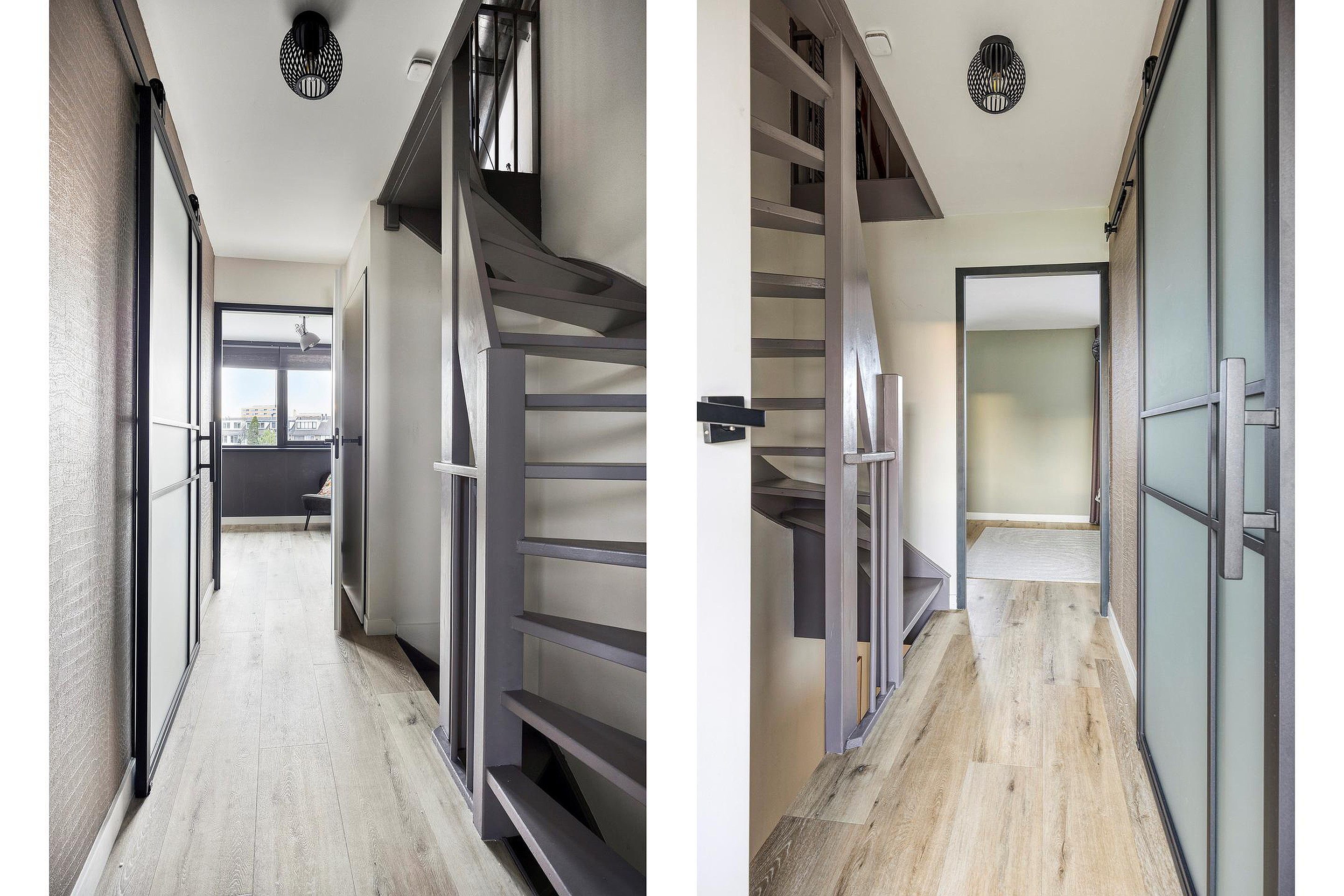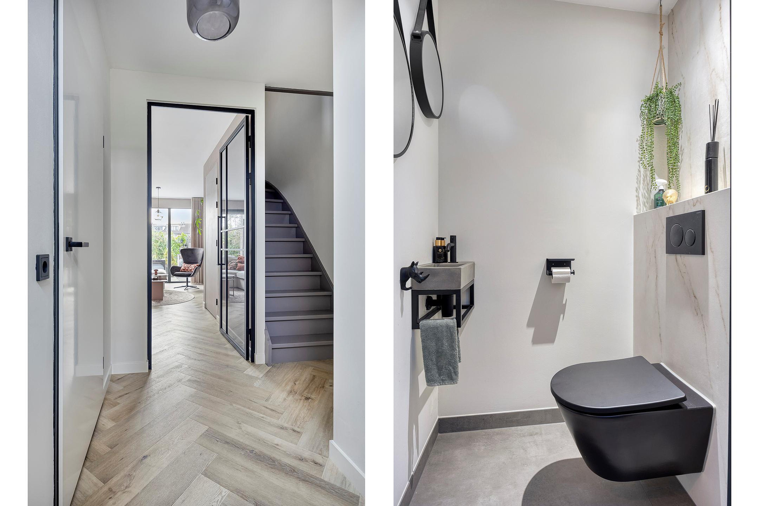 Begane grond Bij binnenkomst ervaart u direct de zorg en aandacht waarmee deze woning is gerenoveerd. De hal is voorzien van een vernieuwde meterkast, garderoberuimte en een modern toilet. De hal geeft toegang tot zowel de woonkamer als de trap naar de verdieping.