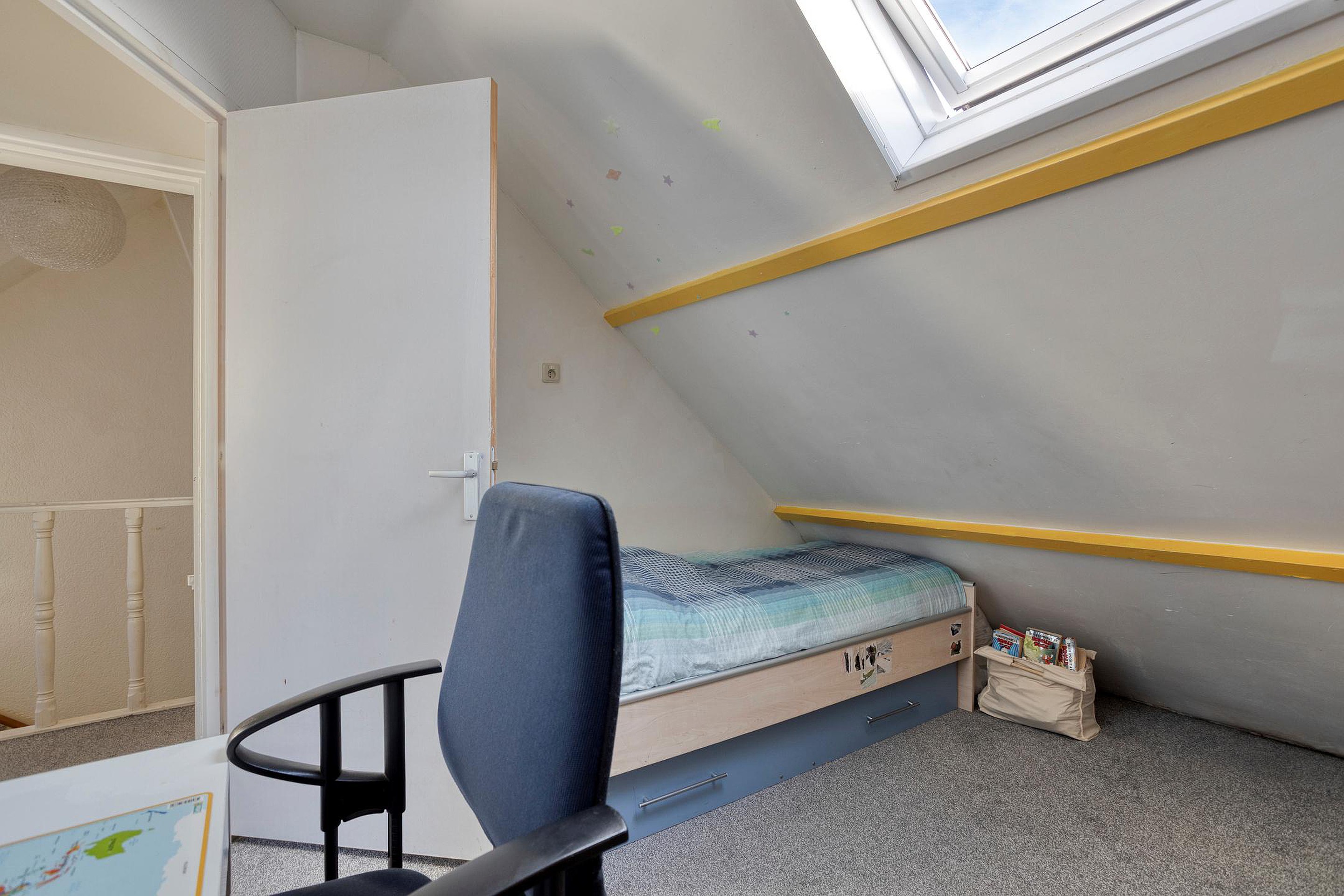 Slaapkamer 3, gelegen aan de achterzijde, voorzien van een kunststof dakkapel met elektrische rolluiken en bergruimte achter het knieschot.