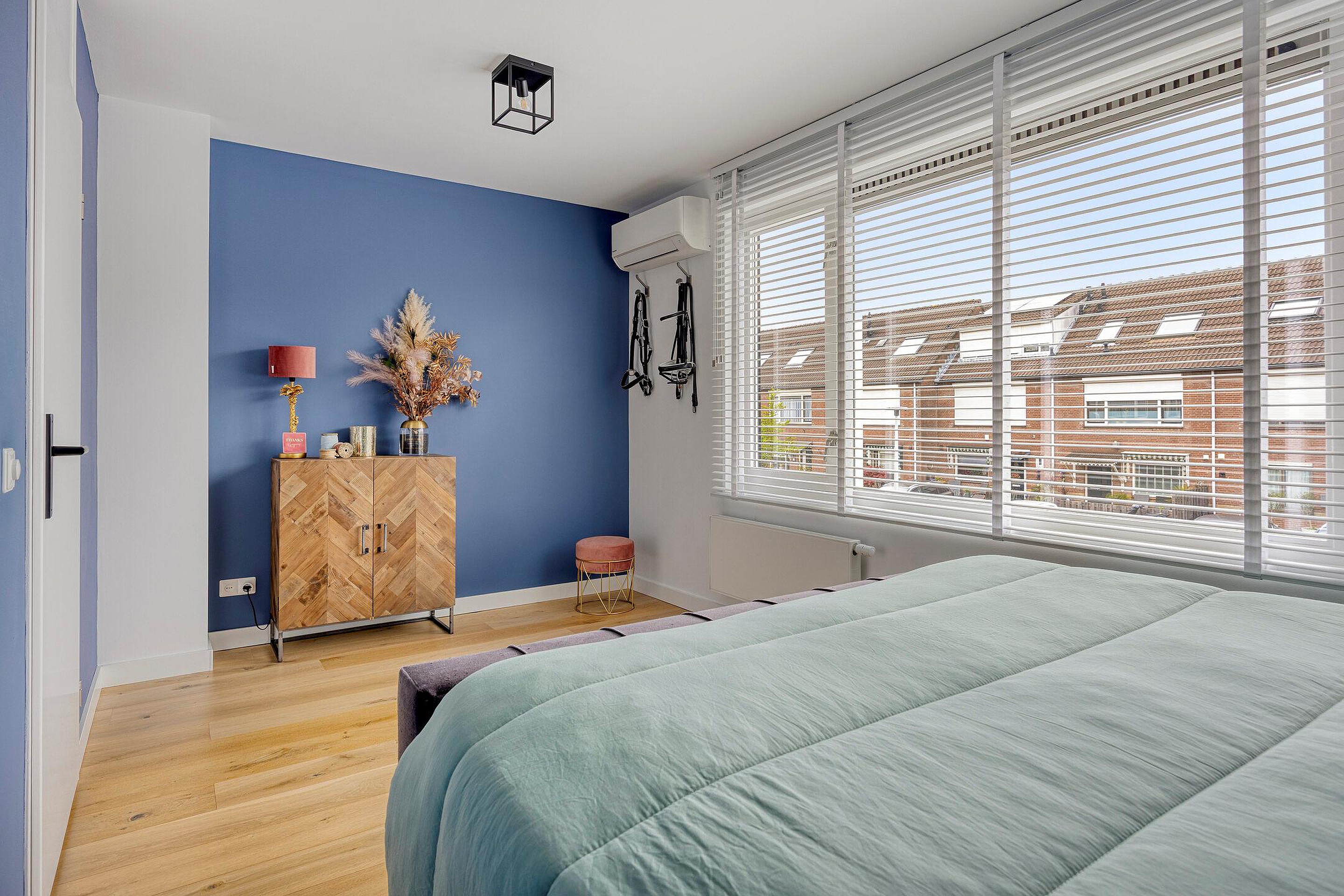 Slaapkamer 3, een riante slaapkamer, gelegen aan de achterzijde. De kamer is voorzien van een grote dakkapel met elektrische screens (2025) en een praktische (inloop)kast.