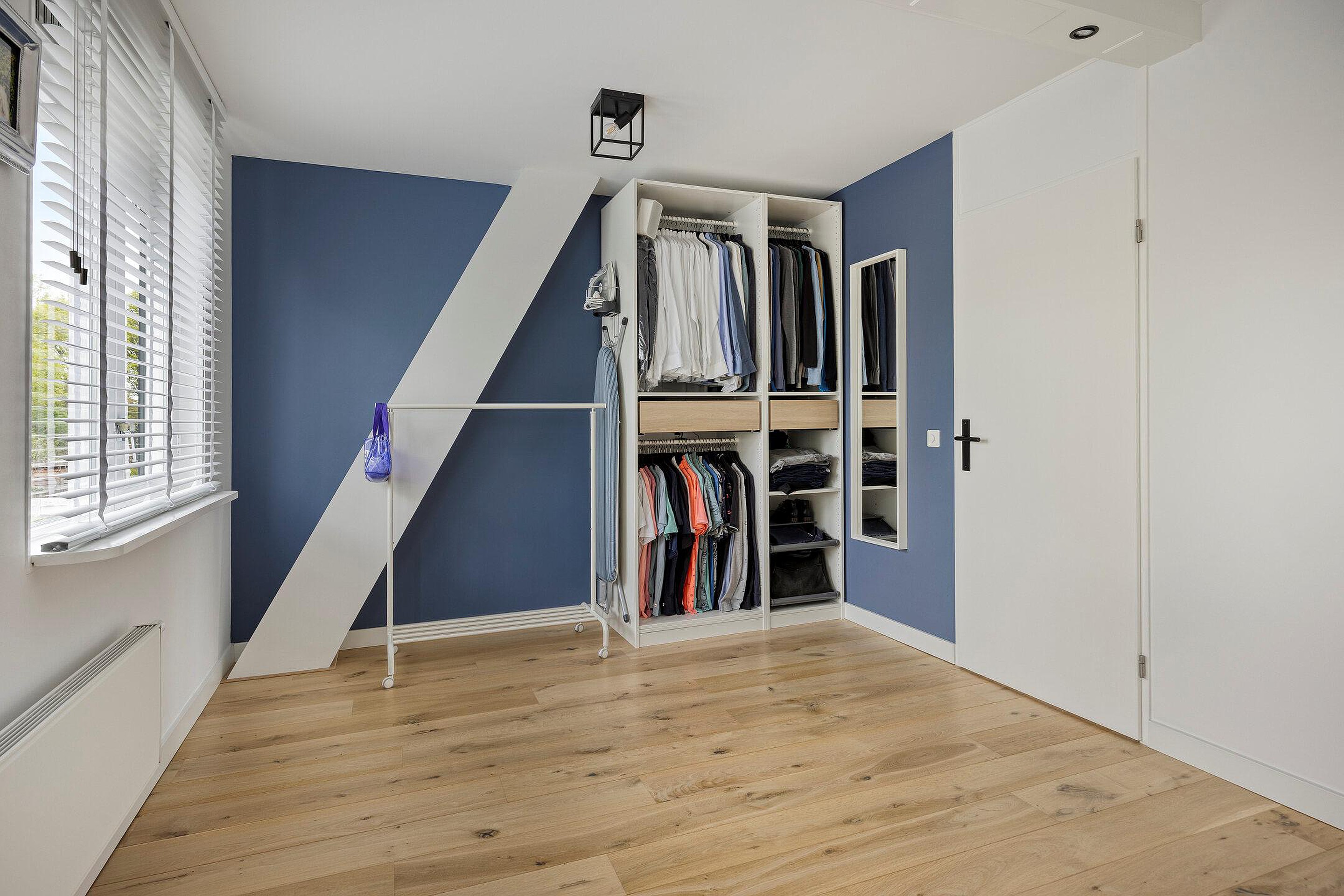 Slaapkamer 2, eveneens een ruime kamer (oorspronkelijk 2 kamers), welke nu in gebruik is als walk-in closet. Ook deze kamer is voorzien van elektrische rolluiken (2021).