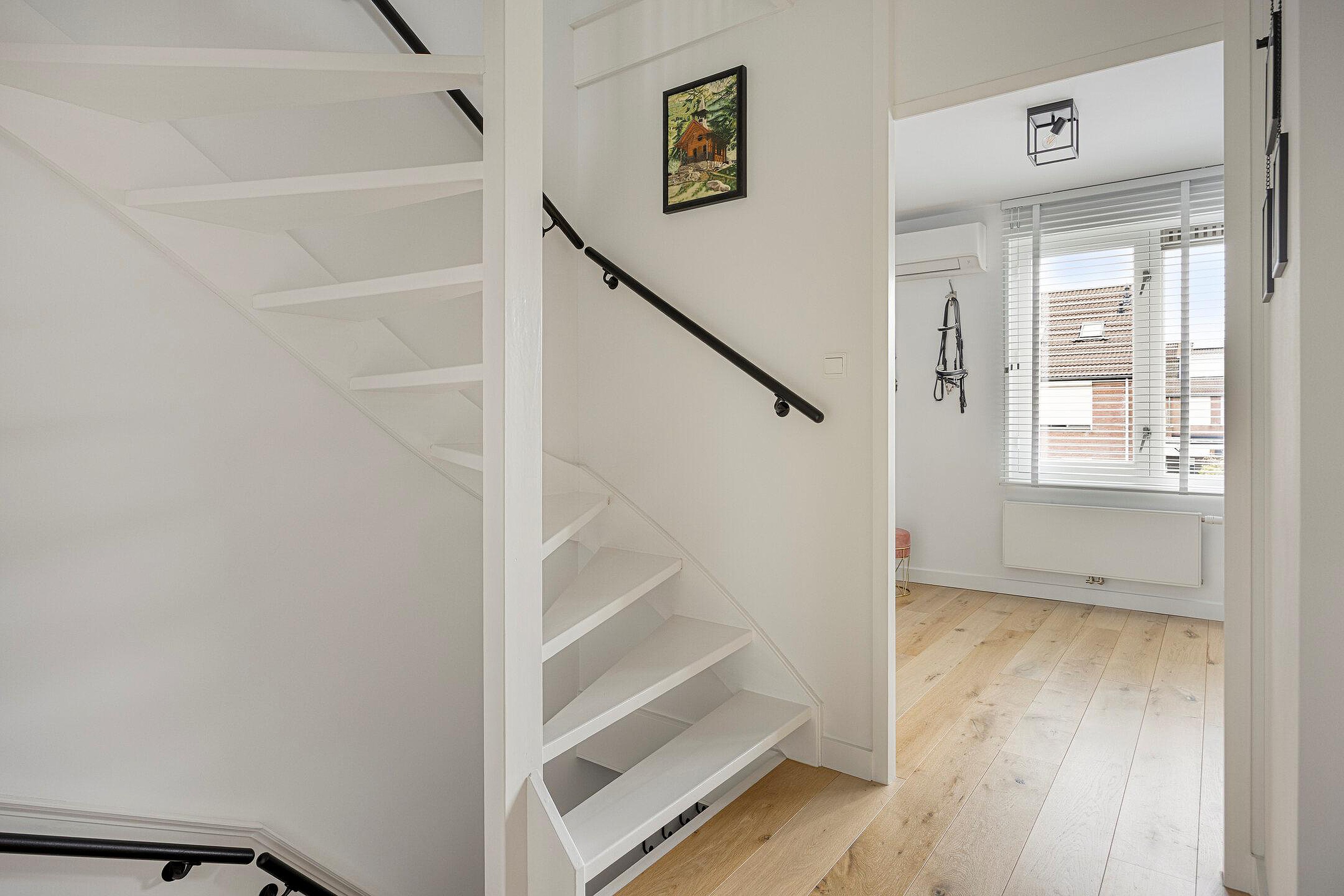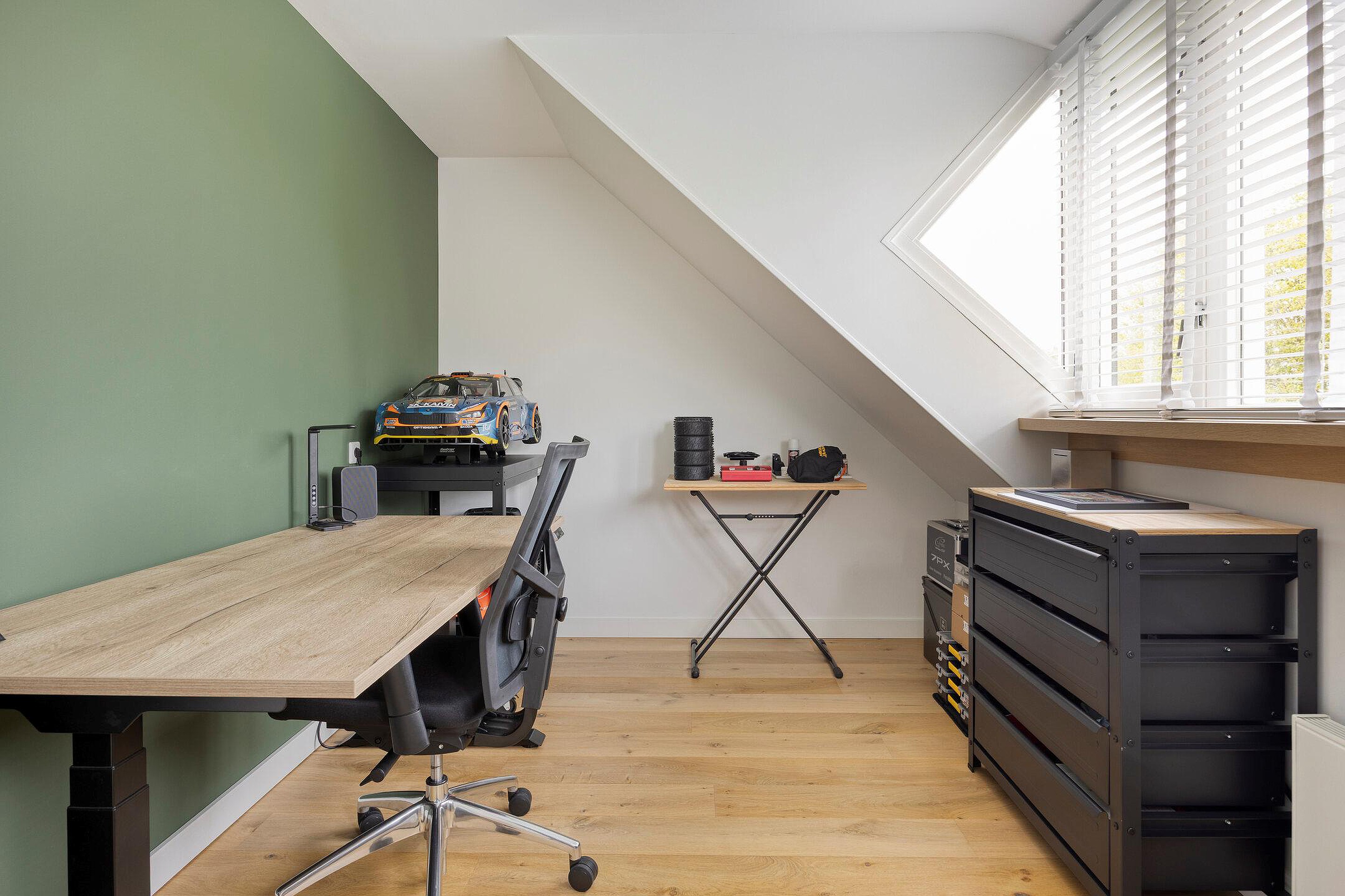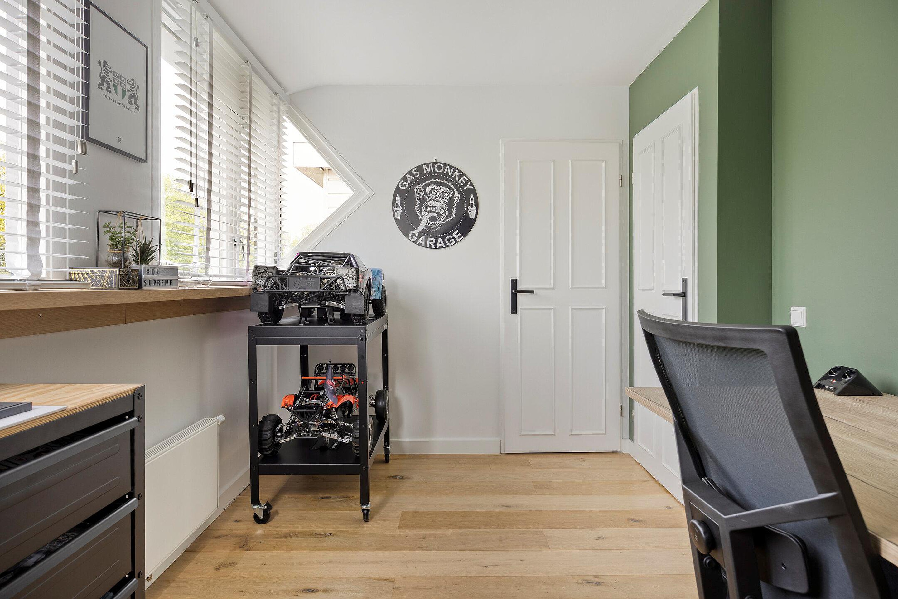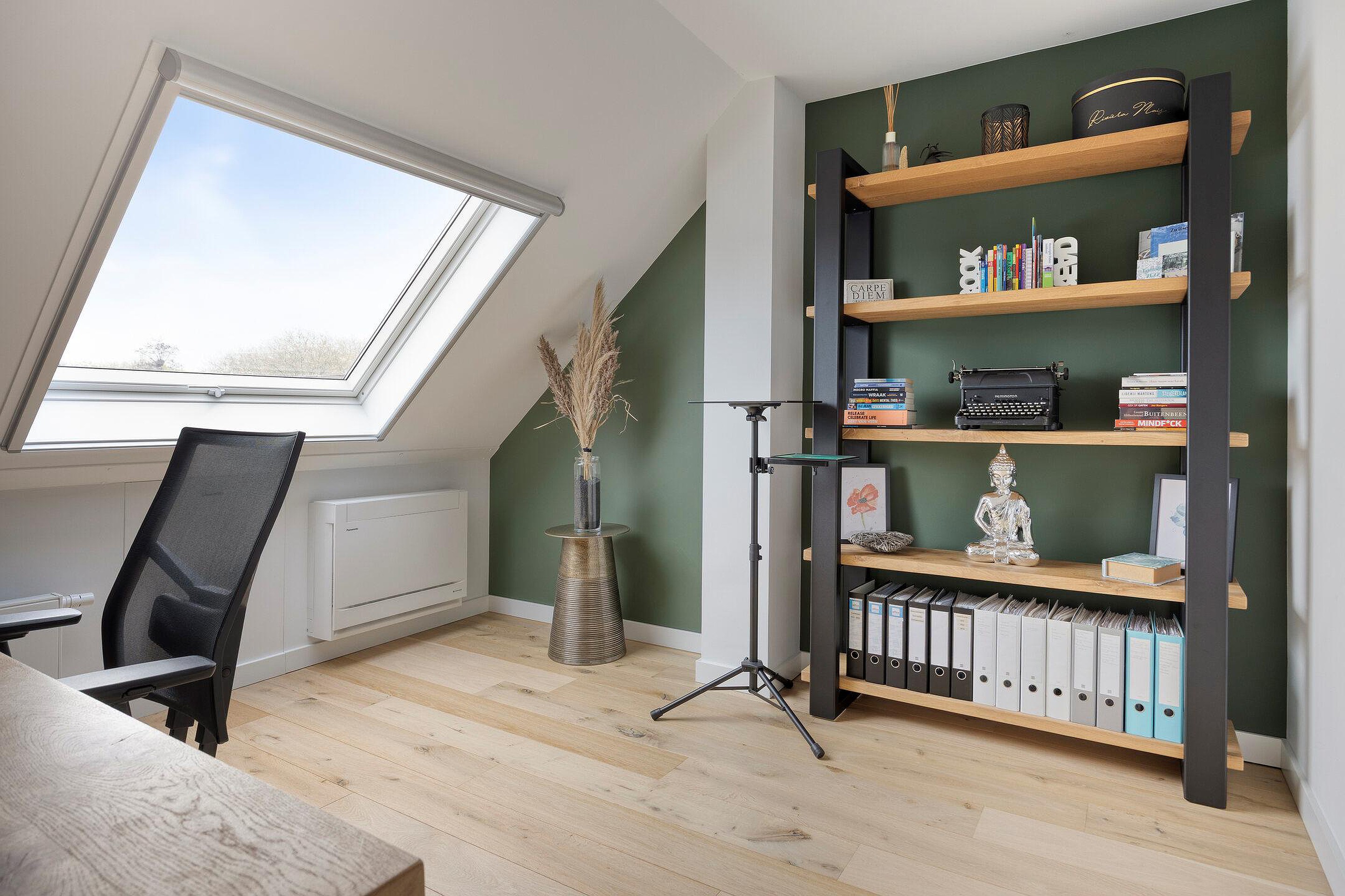 De eerste verdieping is voorzien van een strakke eikenhouten parketvloer.