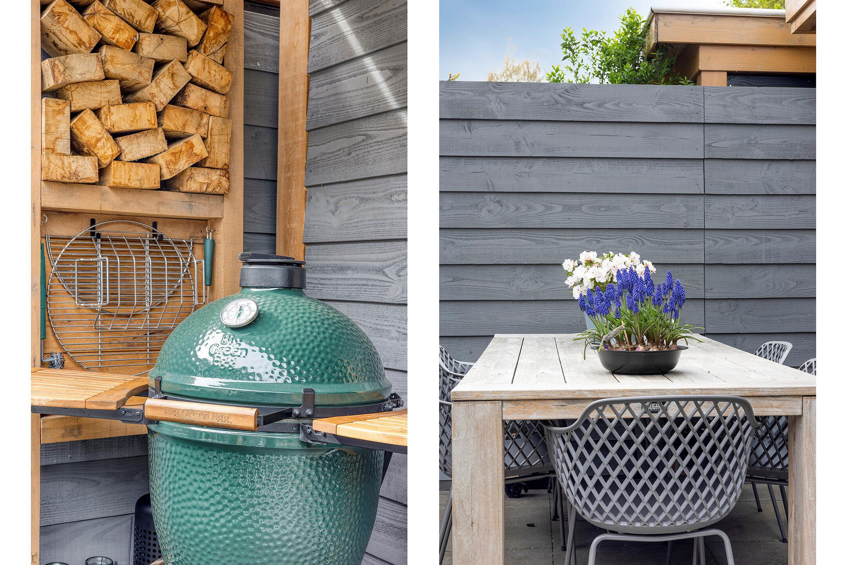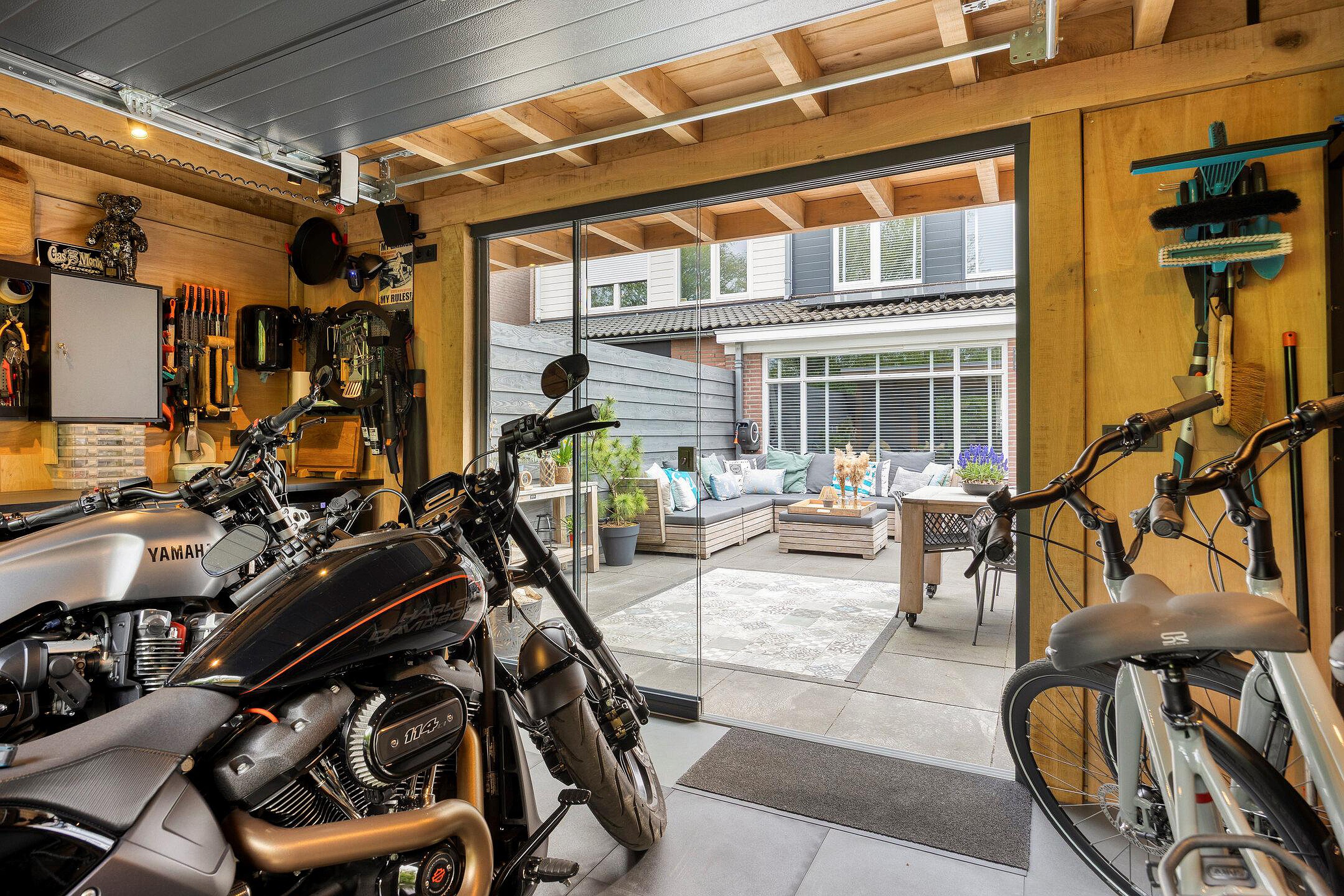 Achtertuin, een heerlijke en fraai aangelegde en zonnige achtertuin (westen), voorzien van sierbestrating, elektra en een buitenkraan. Verder is de tuin in 2021 voorzien van nieuwe schuttingen met hardhouten palen en rabatdelen. In 2023 is er een royale berging/hobbyruimte/veranda gebouwd op een onderheide betonvloer afgewerkt met pvc-tegels, voorzien van een elektrisch bedienbare garagedeur (Novoferm) naar het achterpad en chique glazen schuifdeuren richting de achtertuin.
