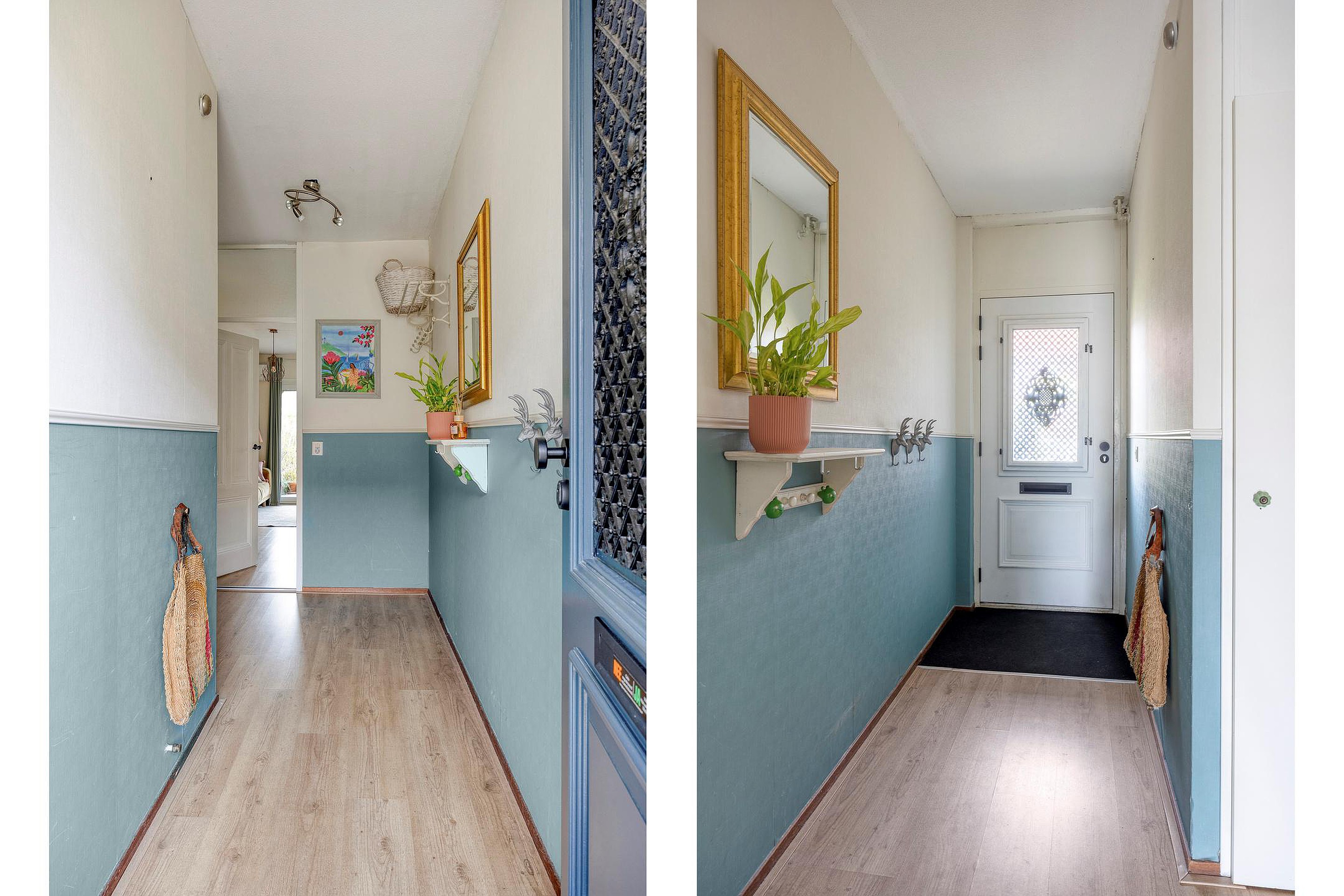 Entree/hal, met droogloopmat en toegang tot de woonkamer, toilet, meterkast en trapopgang naar de eerste verdieping.