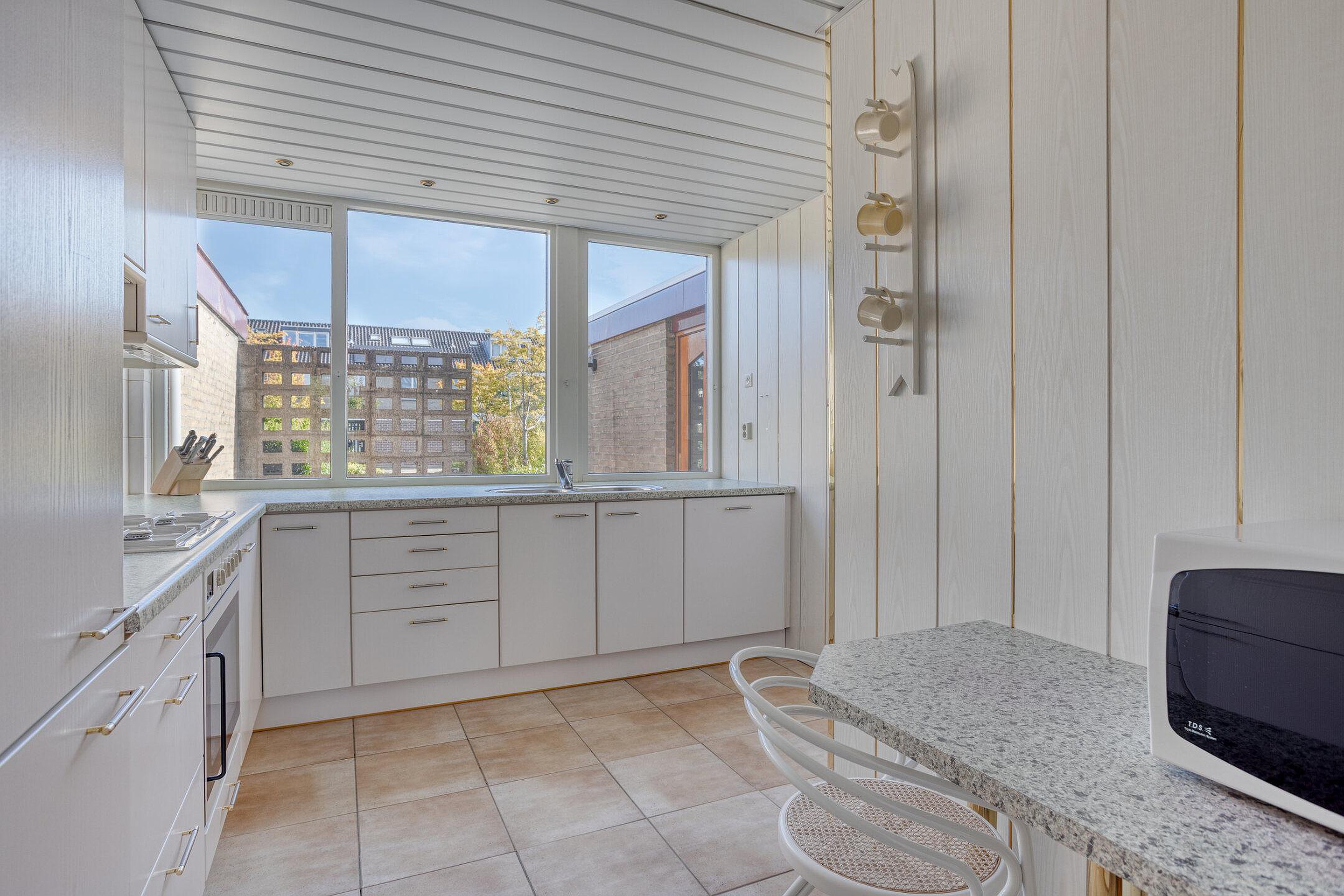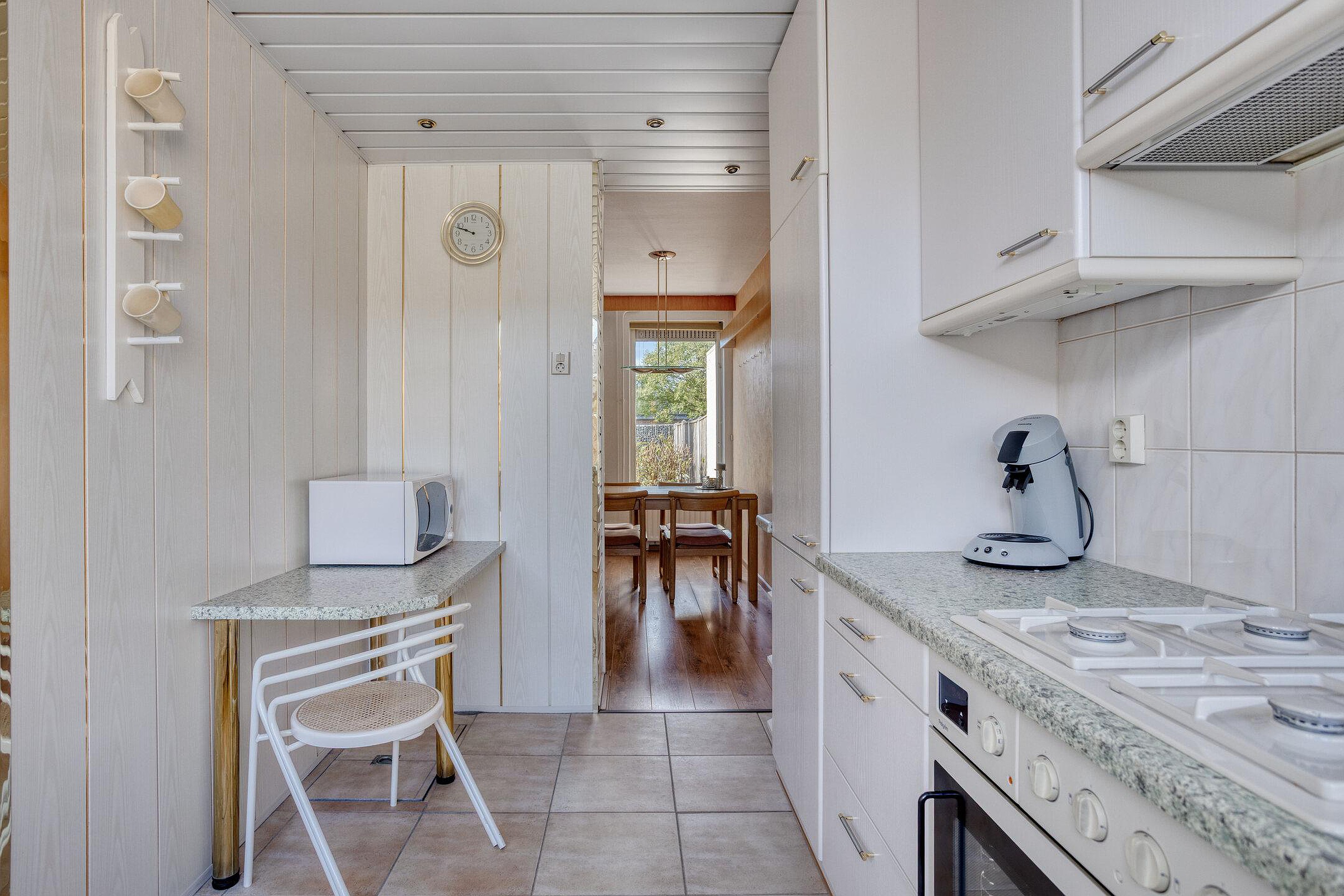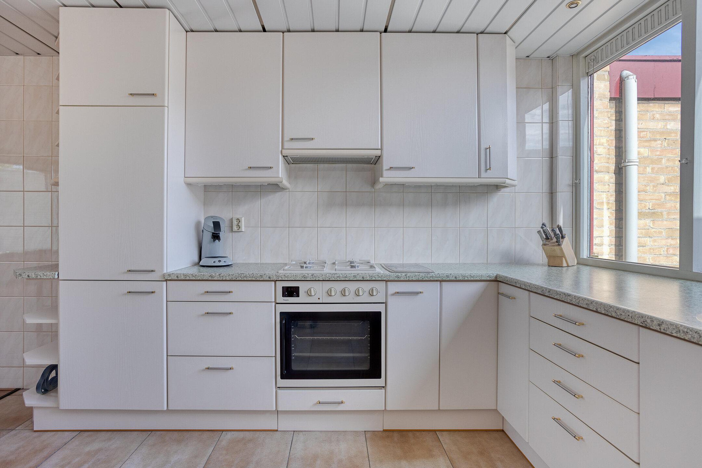Keuken, een ruime keuken gelegen aan de voorzijde met uitzicht op het woonerf, voorzien van een keukenblok in L-vormige opstelling, gaskookplaat, afzuigkap, oven, koel/vriescombinatie, vaatwasser en een dubbele spoelbak.