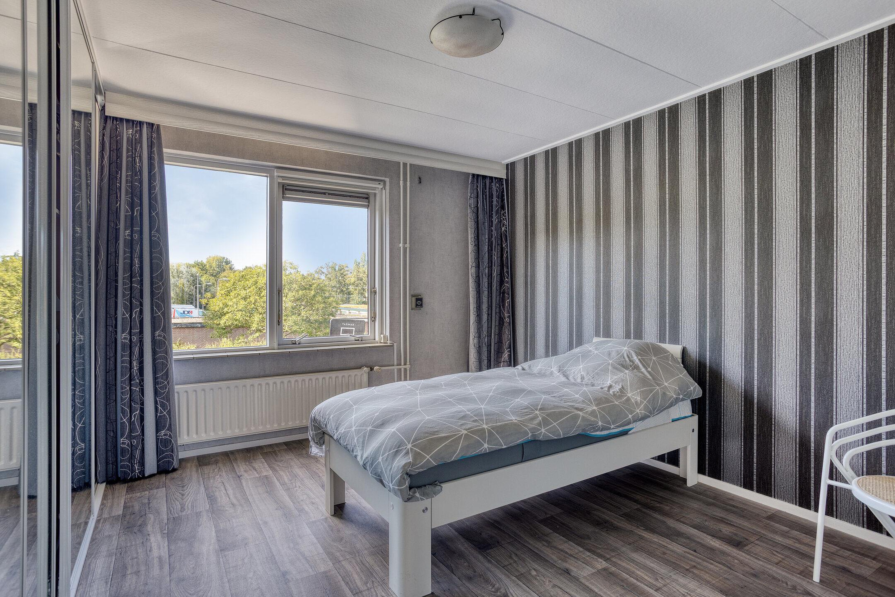 Slaapkamer 2, gelegen aan de voorzijde, voorzien van een vaste kast, kunststof kozijn met draai/kantelramen en laminaat vloerafwerking.