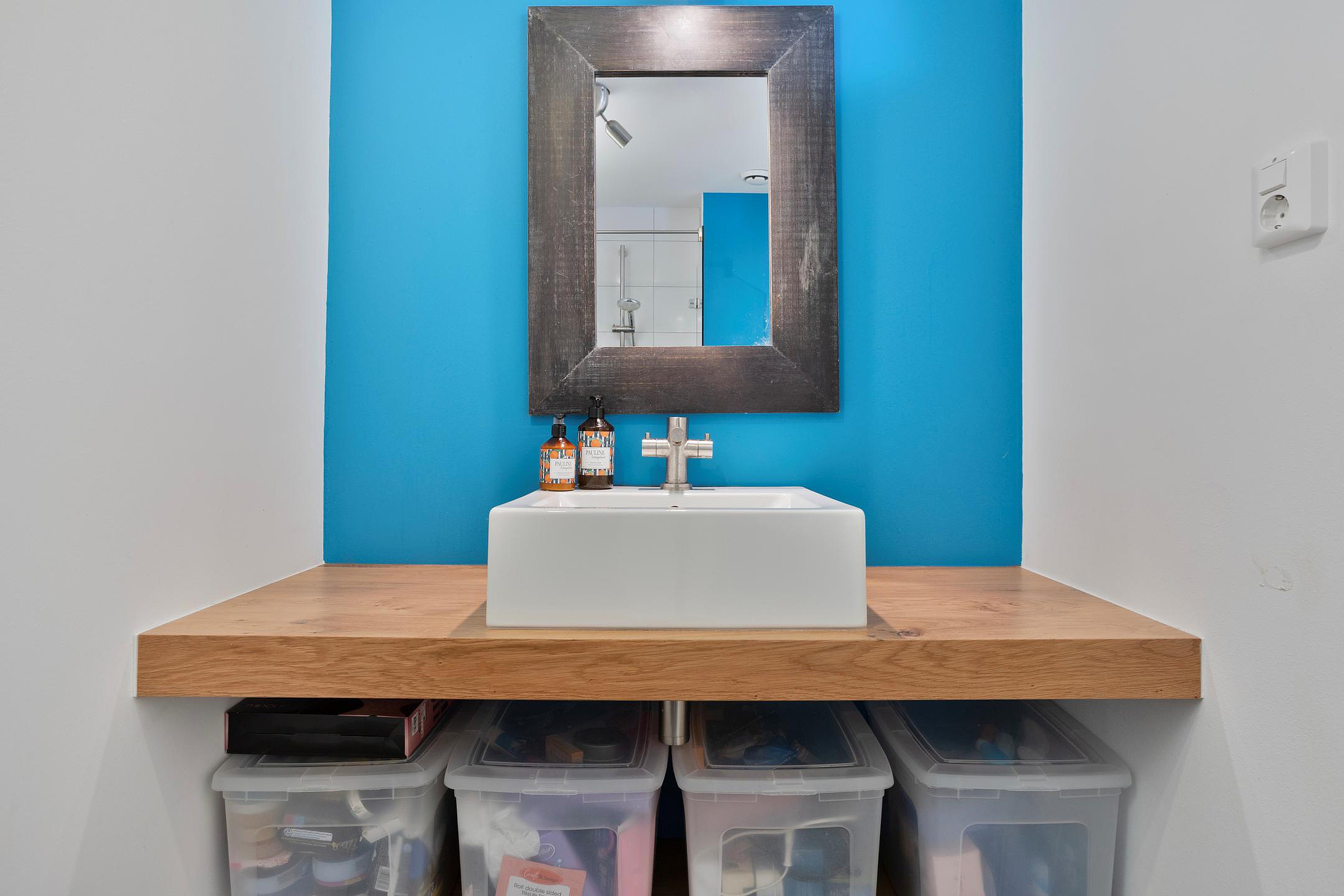 De begane grond is deels voorzien van een fraaie frans eiken vloer en deels een trendy plavuizenvloer. Gestuukte plafonds en wanden maken de living helemaal af. De zonnige tuin beschikt over een grote berging en is via de straat bereikbaar. Je fiets, scooter of motor stallen kan hier dus zonder problemen.