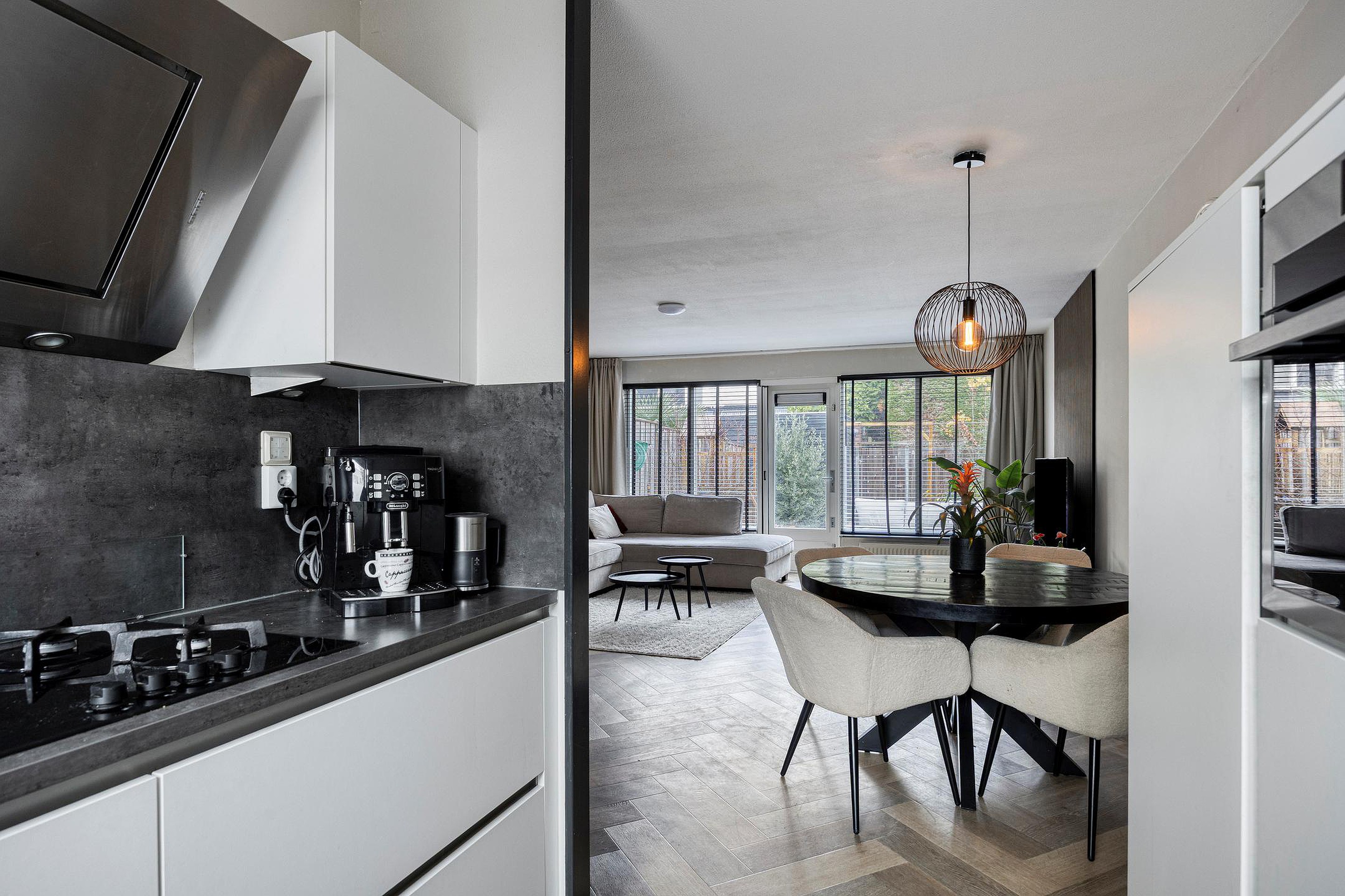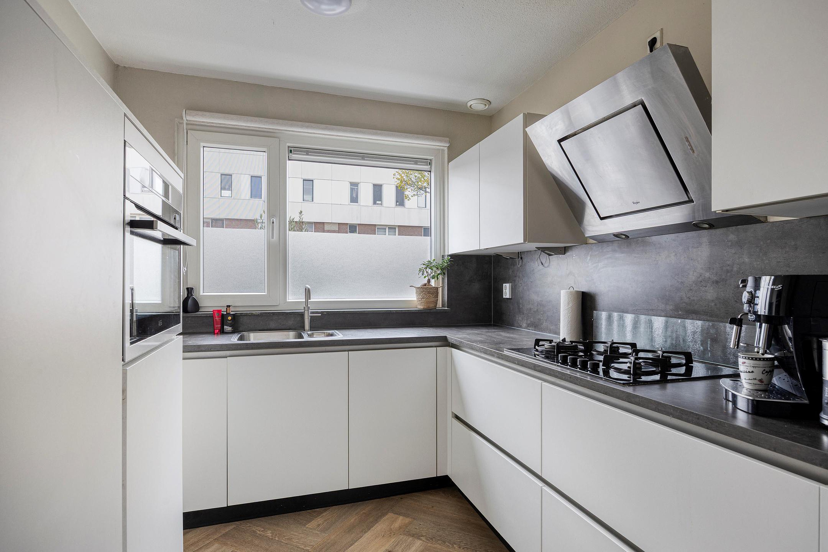 Keuken, gelegen aan de voorzijde van de woning, voorzien van een gaskookplaat met afzuigkap, Quooker (2025), vaatwasser, combioven (2025), koelkast en vriezer.