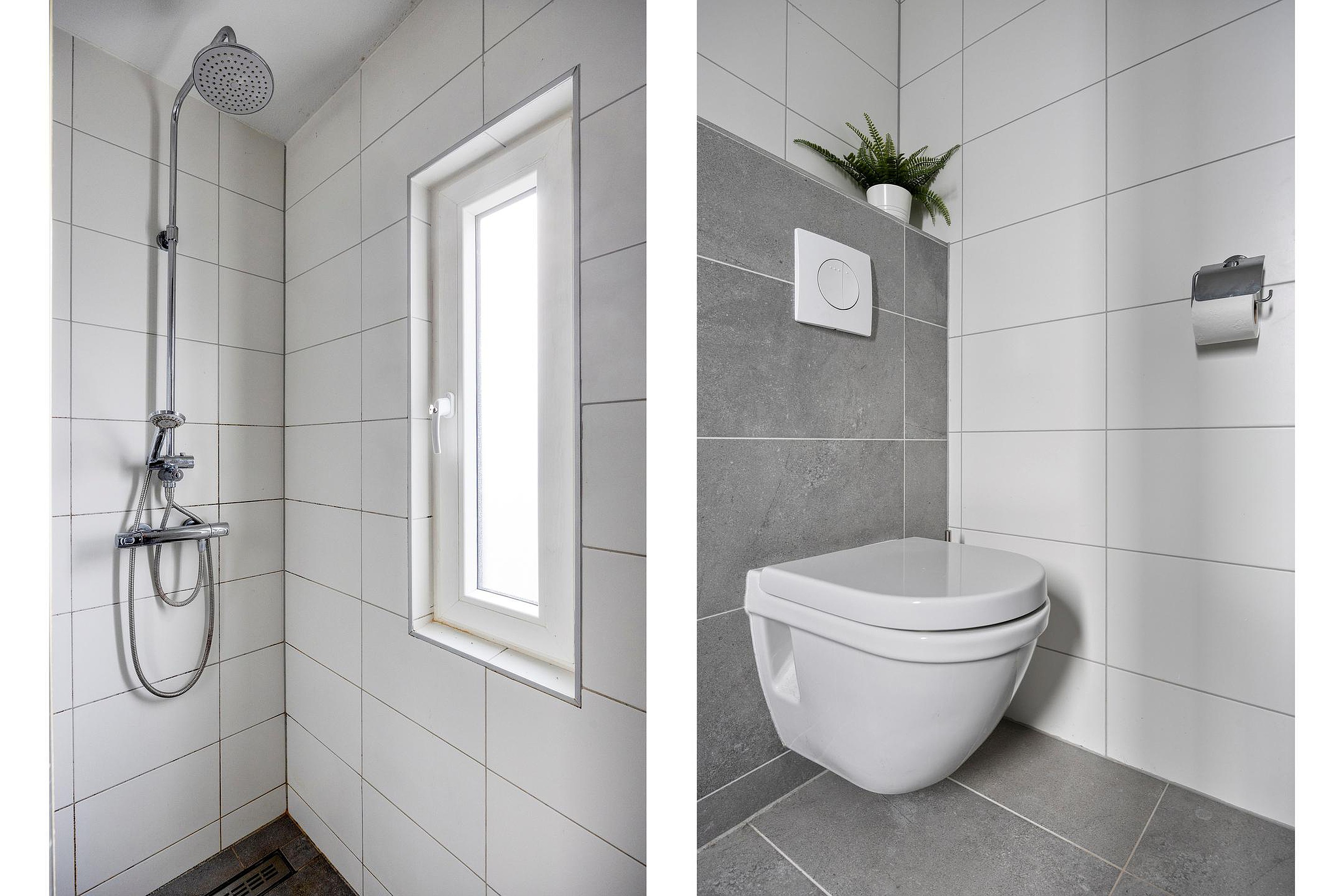 Badkamer, een moderne en geheel betegelde badkamer, voorzien van een inloopdouche met thermostaatkraan, rainshower en handdouche, wastafel met onderladen en een spiegel met verlichting, een tweede toilet (hangend closet), badkamerradiator, mechanische ventilatie en een te openen raam.