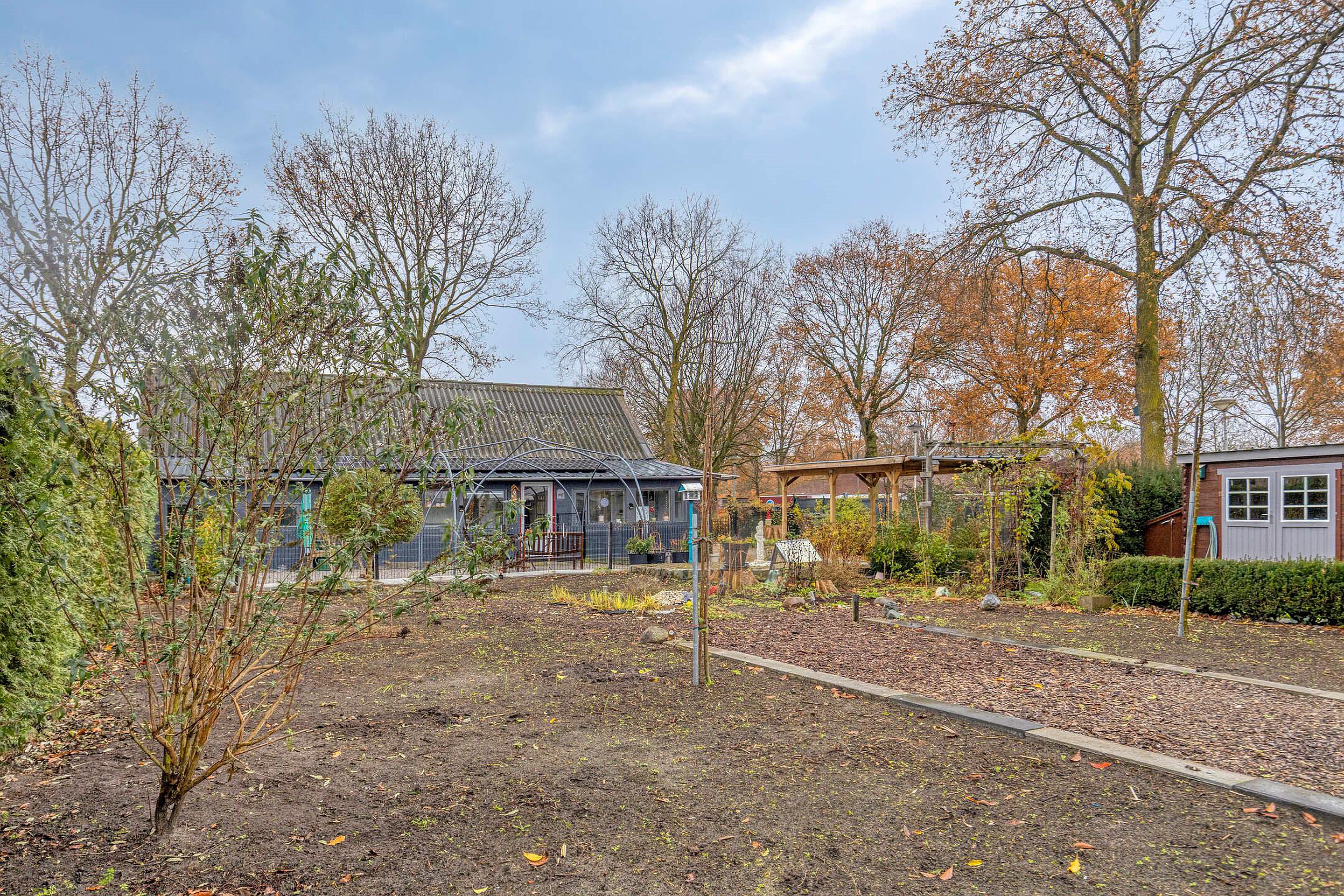 De tuin is een oase van rust. Door de ligging aan de rand van het dorp geniet u aan de achterzijde van een weids en vrij uitzicht. De tuin beschikt over diverse bergingen, ideaal voor opslag of klussen.