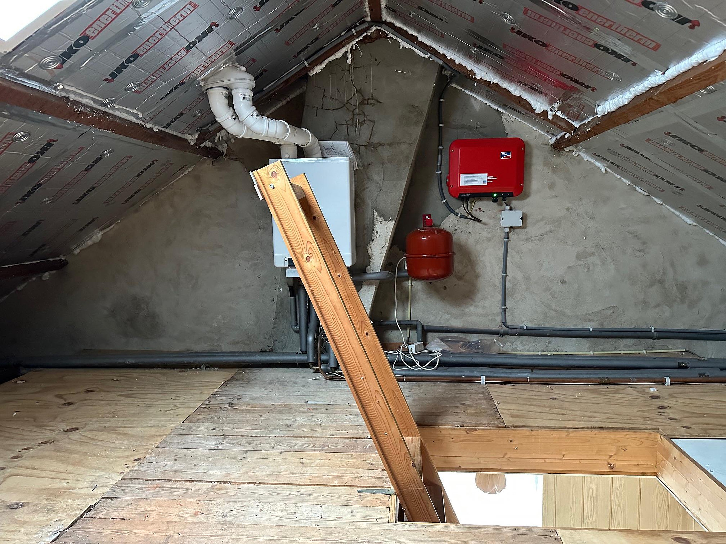 Tweede verdieping Vanaf de overloop is de bergzolder bereikbaar. Hier is de CV ketel geplaatst (Intergas 2022). Het dak is voorzien van isolatie.
