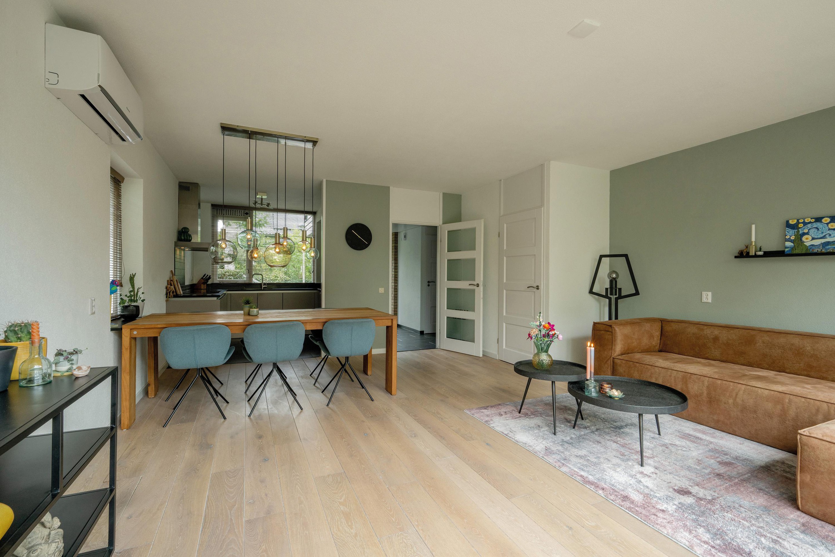 De woning (bouwjaar 1983) is medio 2023 volledig gasloos gemaakt en het hele huis beschikt over airconditioning (2023 / 4 units) voor zowel koelen als verwarmen.