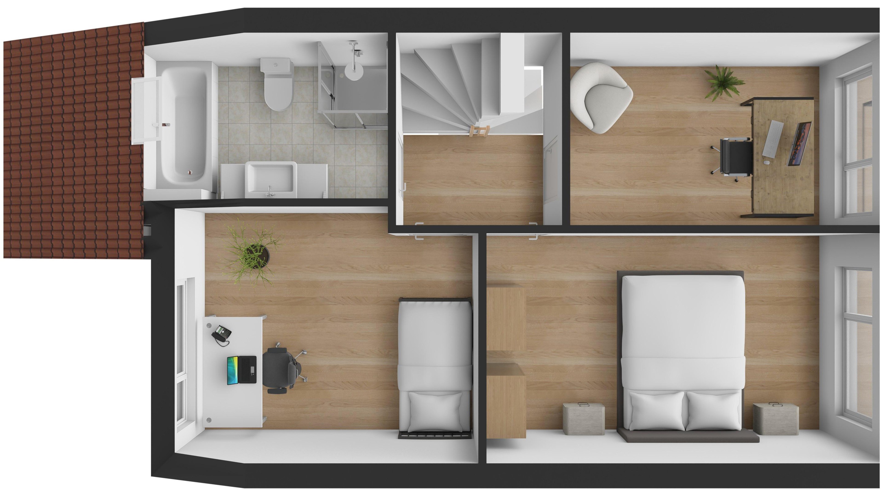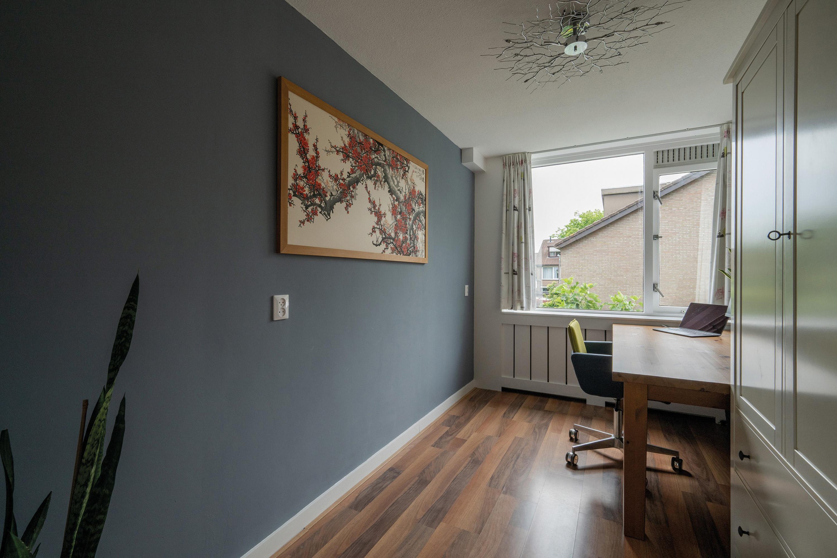 De kers op de taart op deze etage is de flinke dakkapel die de zolderkamer naast veel ruimte ook veel daglicht geeft. Ideaal als vierde slaapkamer, hobbyruimte of werkplek. Ook hier net als de rest van het huis: strak afgewerkt en netjes onderhouden.