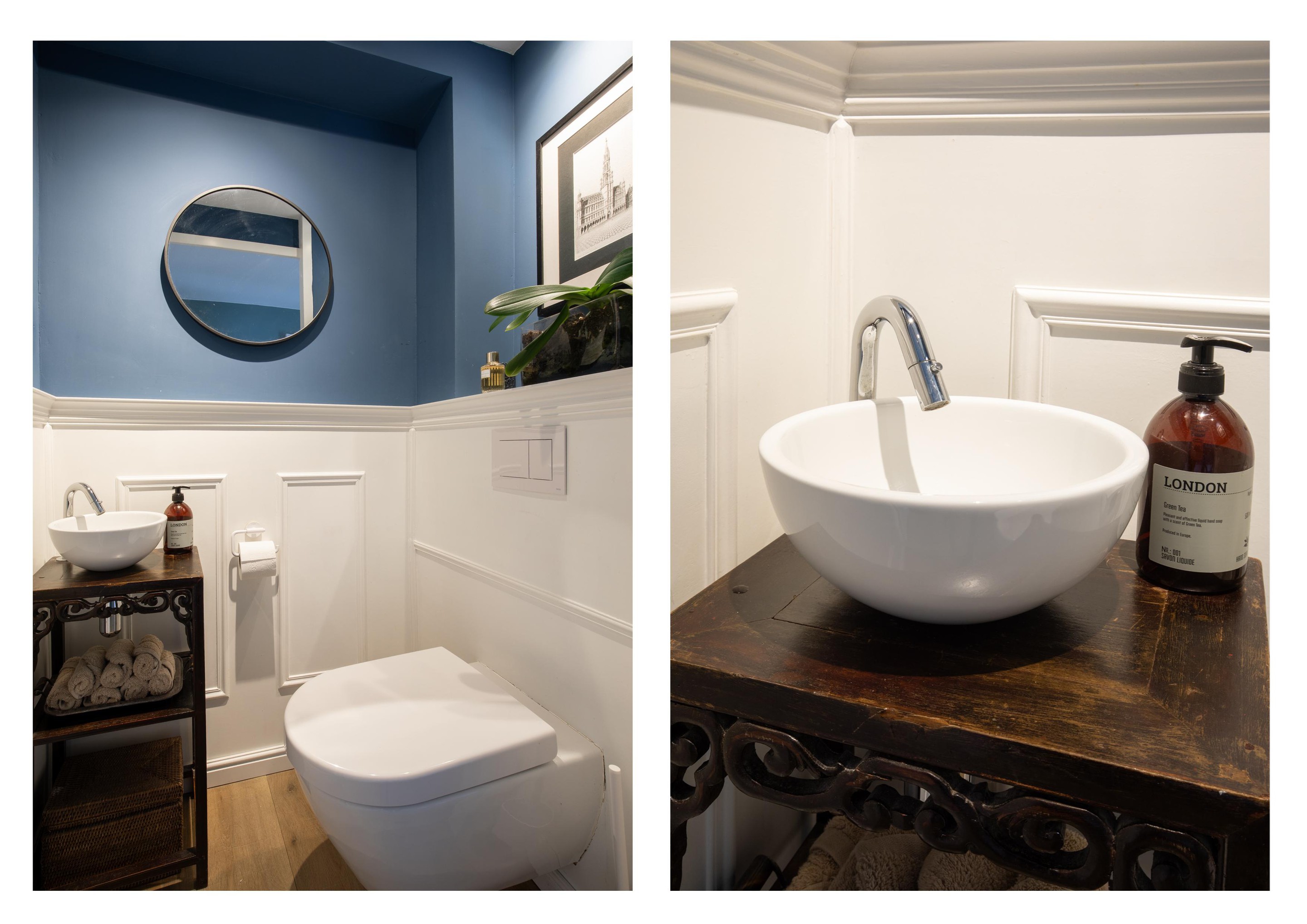 From the moment you enter, the home makes a lasting impression. The spacious entrance hall is both elegant and practical, featuring bespoke built-in storage and a comfortable seating area, creating a warm and organised welcome. The stylish guest toilet, finished with classic panelling and refined detailing, reflects the consistent level of care and design found throughout the home.
