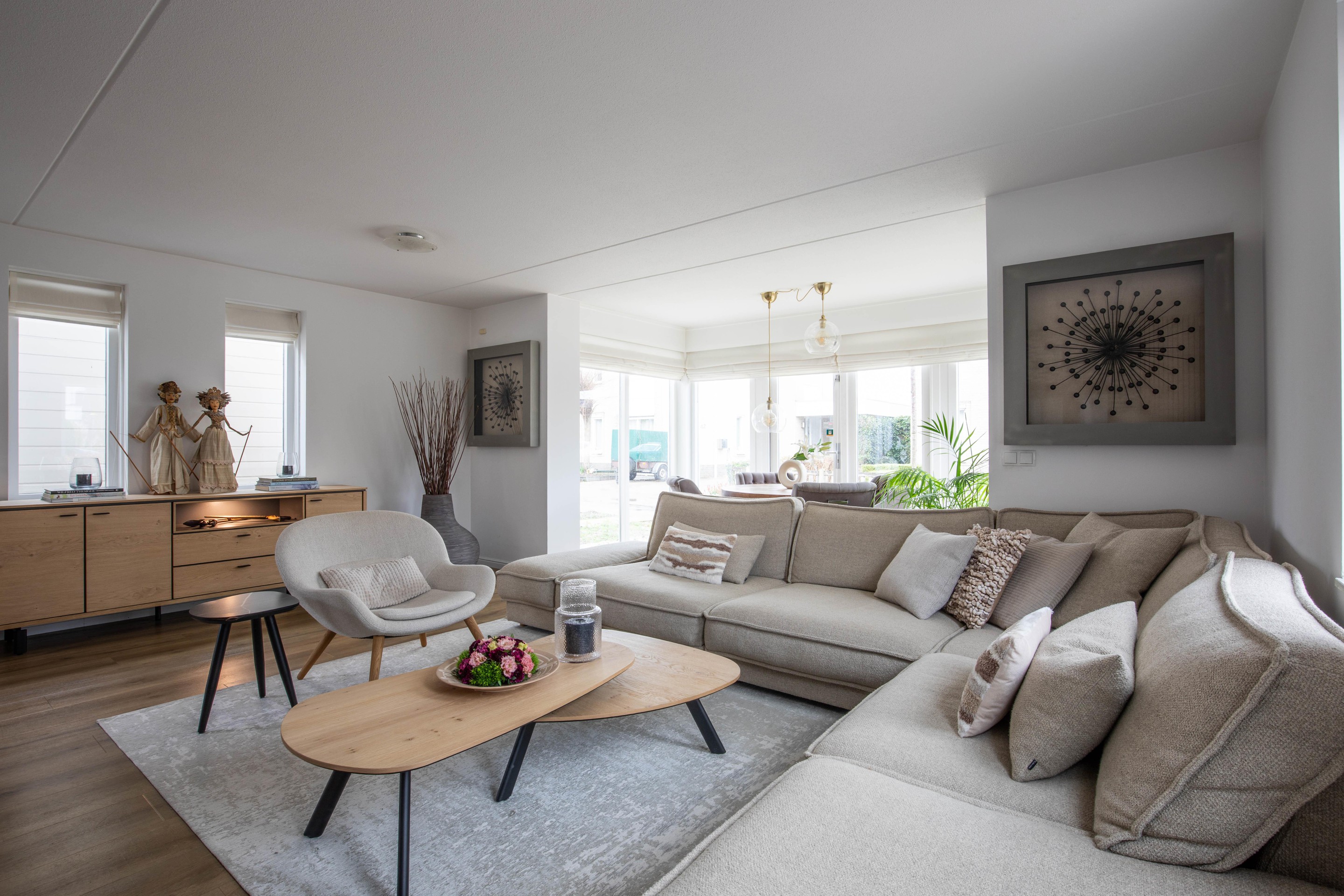 De begane grond opent zich naar een indrukwekkende en royale leefruimte waarin licht en ruimte centraal staan. De L-vormige indeling zorgt voor een natuurlijke flow tussen de woon-, eet- en ontspanningsruimtes, terwijl de grote raampartijen en meerdere oriëntaties zorgen voor een prachtige lichtinval gedurende de hele dag.
