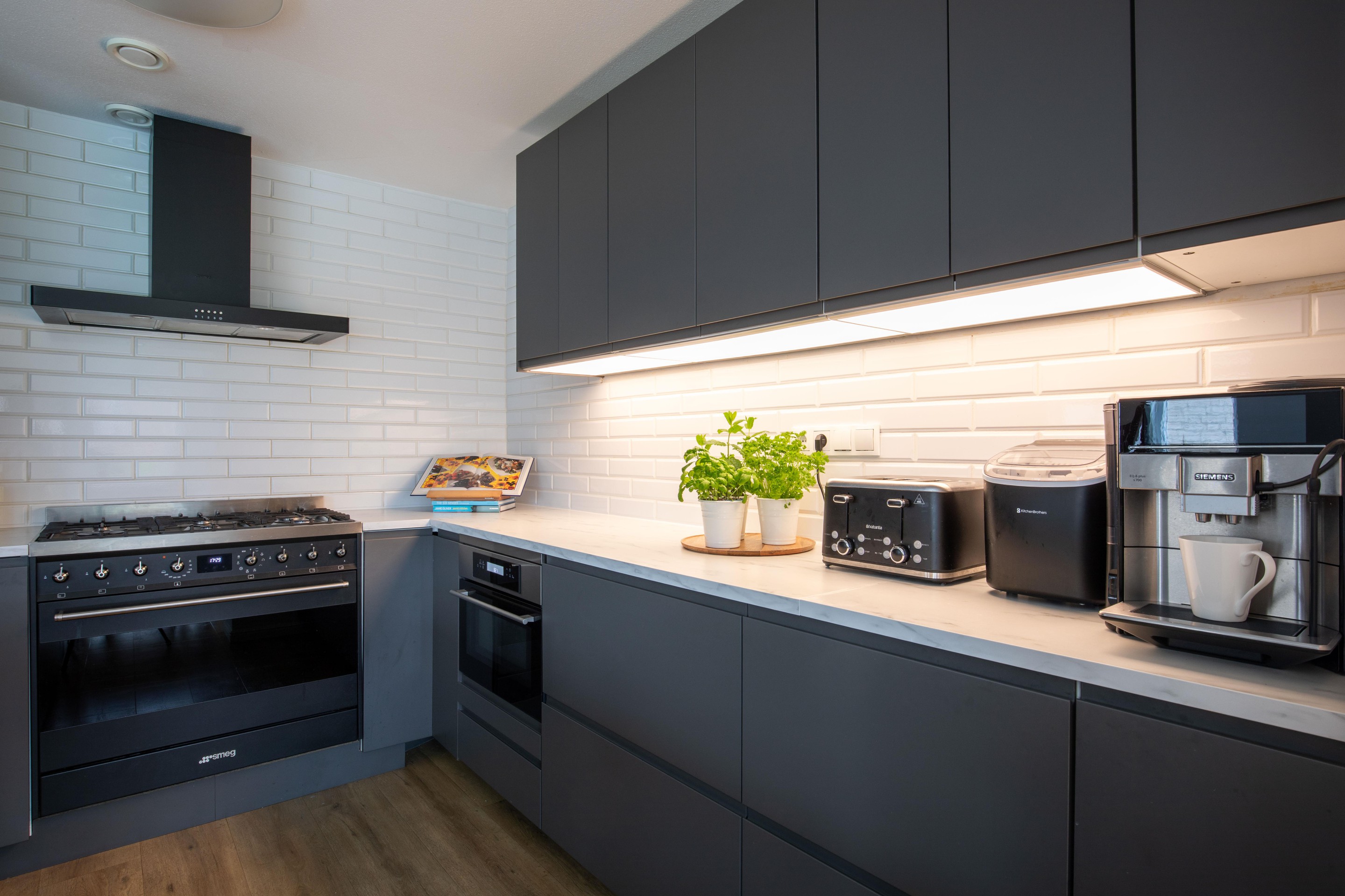De open keuken is een absolute eyecatcher — strak, modern en ontworpen met oog voor zowel functionaliteit als stijl. Het ruime kookeiland, afgewerkt met een hoogwaardig werkblad, biedt volop ruimte om te koken, te borrelen en samen te leven.