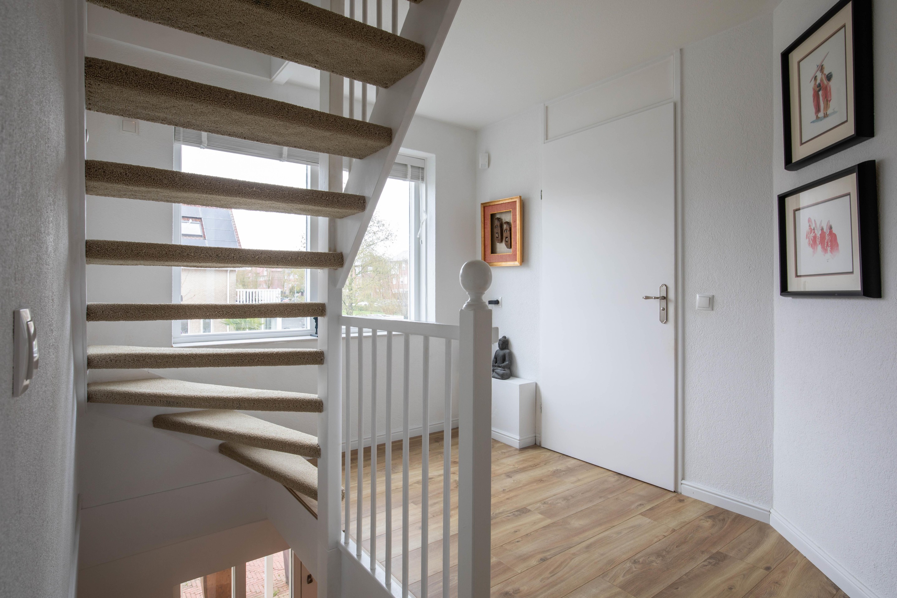 De eerste verdieping vormt een absoluut hoogtepunt van de woning. De lichte en open overloop wordt gekenmerkt door een overvloed aan daglicht en creëert een rustige, luchtige sfeer.