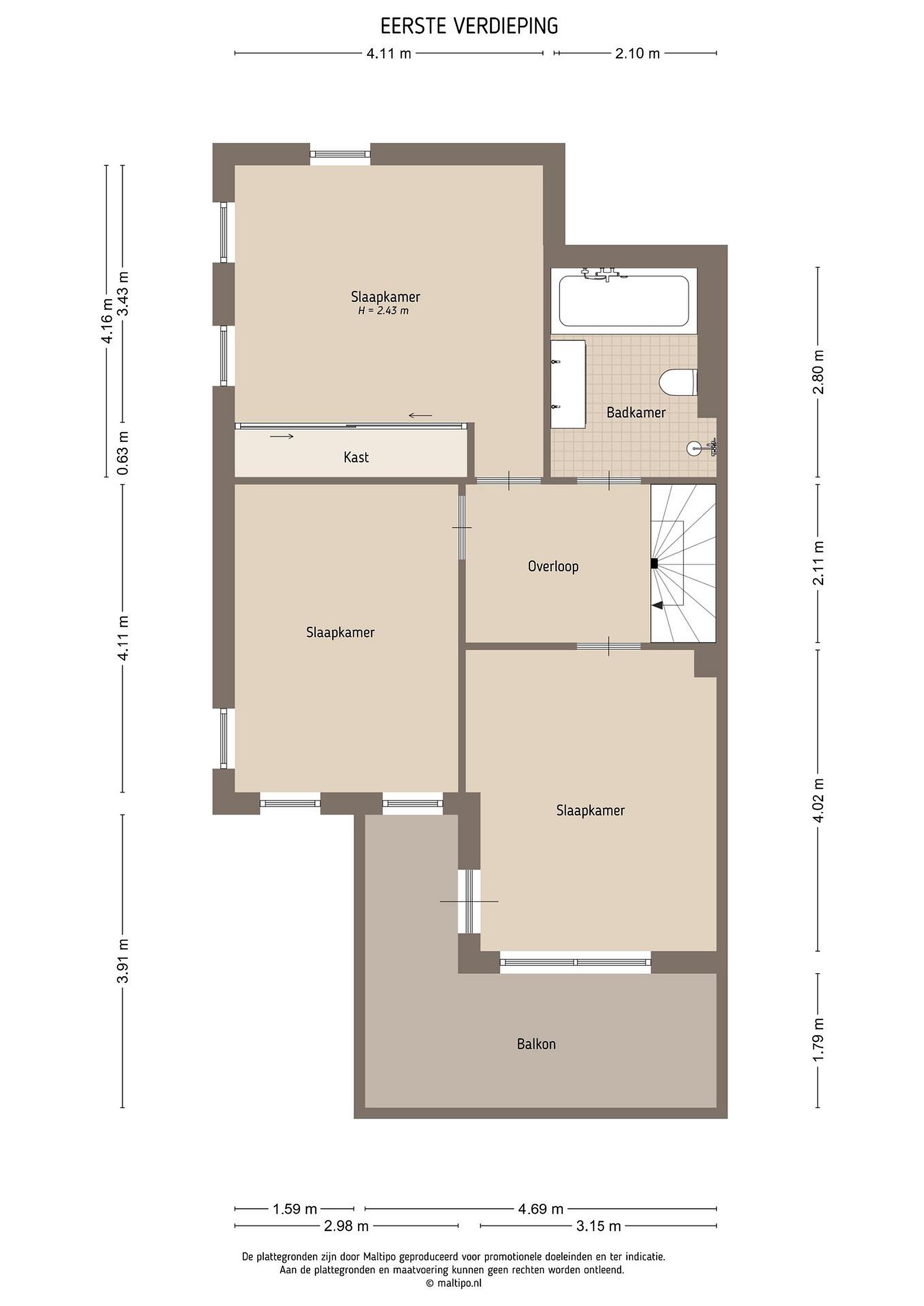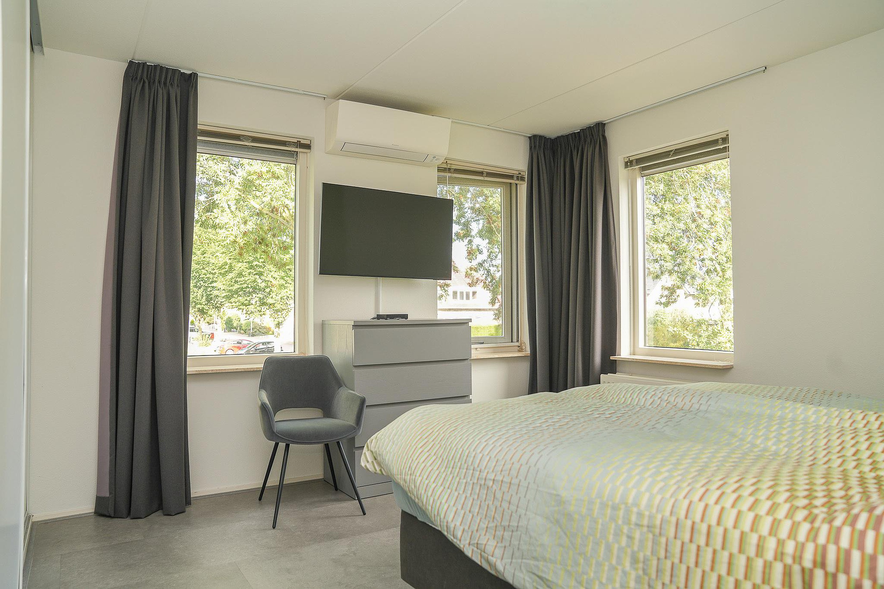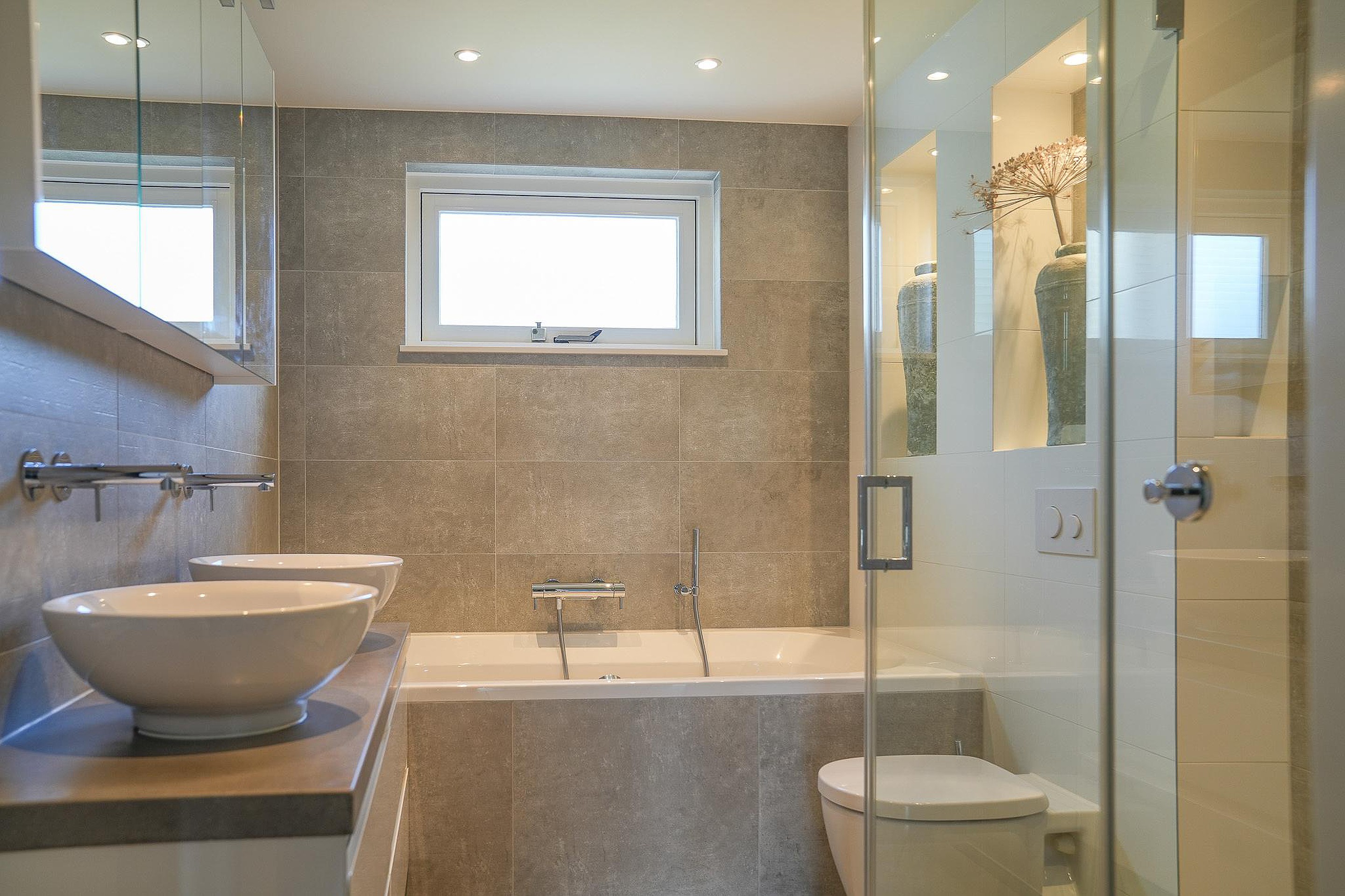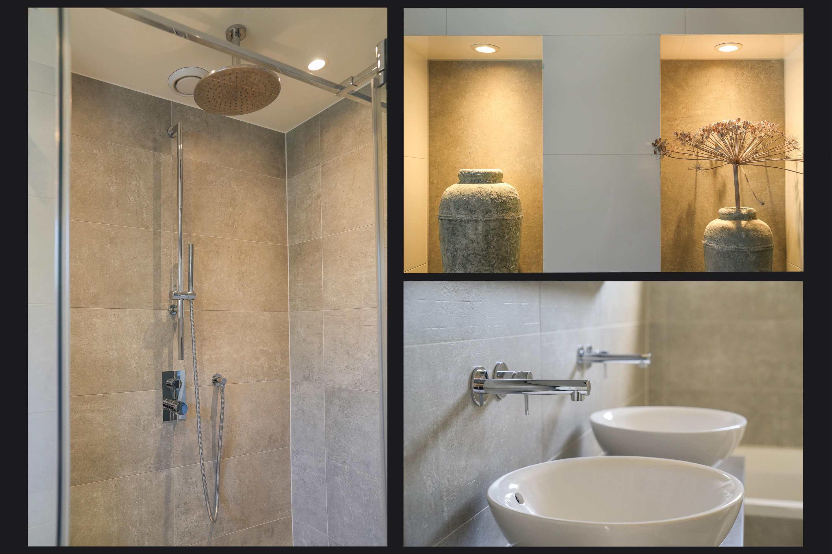 Op de eerste verdieping vind je drie slaapkamers, allen voorzien van houten kozijnen met dubbel glas. De master bedroom aan de voorzijde is extra comfortabel met een airco (ook verwarmend!) en een ruime inbouwkast. De moderne badkamer is werkelijk een plaatje: een inloopdouche, ligbad, dubbel wastafelmeubel met verlichte spiegel, zwevend toilet en designradiator – hier kom je echt tot rust.