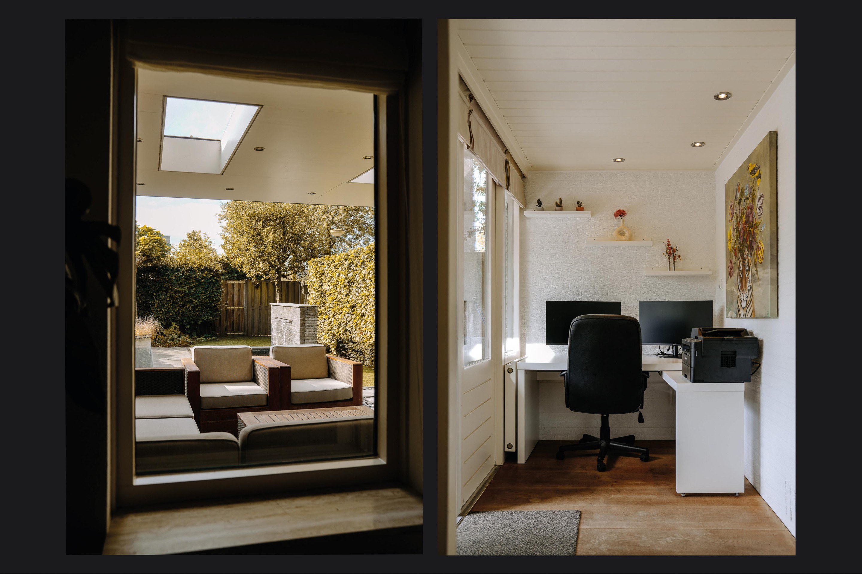 Aan de achter- én zijkant van de woning is iets uitgebouwd, waardoor er op de begane grond meer GO wonen is ontstaan. De extra werkkamer tussen woonkamer en garage is ideaal als thuiswerkplek, speel- of hobbyruimte. De gezellige L-vormige woonkamer is voorzien van een massief houten vloer afwerking en sfeervolle houtkachel en dankzij de aluminium schuifpui geniet je hier van veel daglicht én een directe verbinding met de tuin.