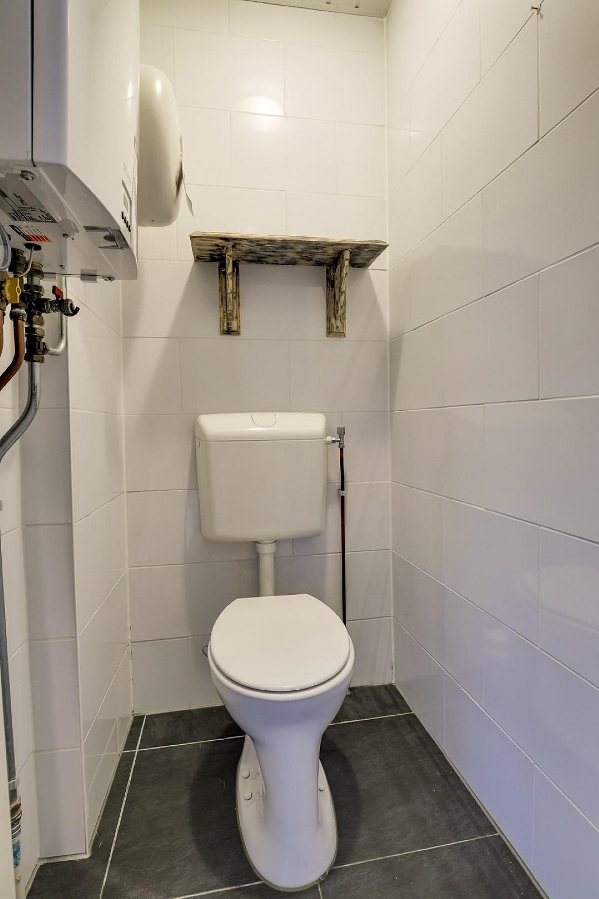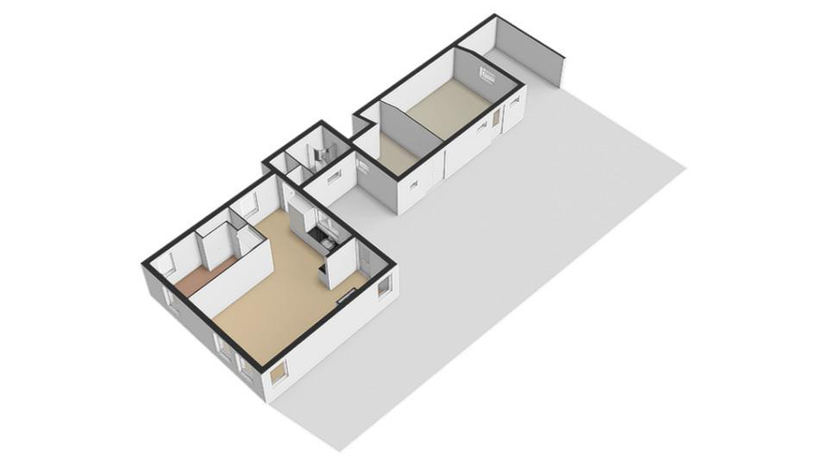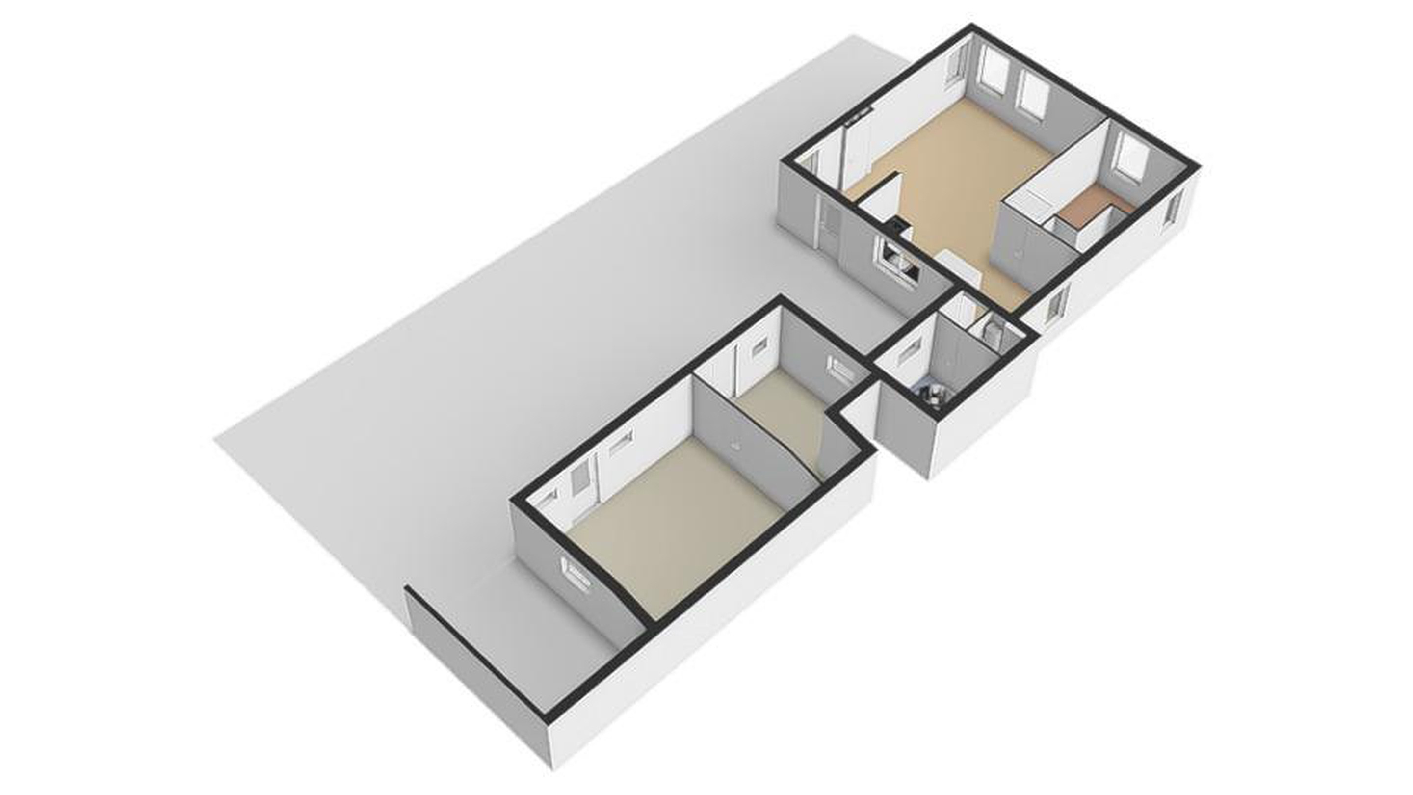 Begane grond Achter entree/hal met garderobekast, woonkamer met meterkast, hoekkeuken voorzien van inbouwapparatuur, slaapkamer, hal met toielt, badkamer met douche, wastafel en wasmachineaansluiting.