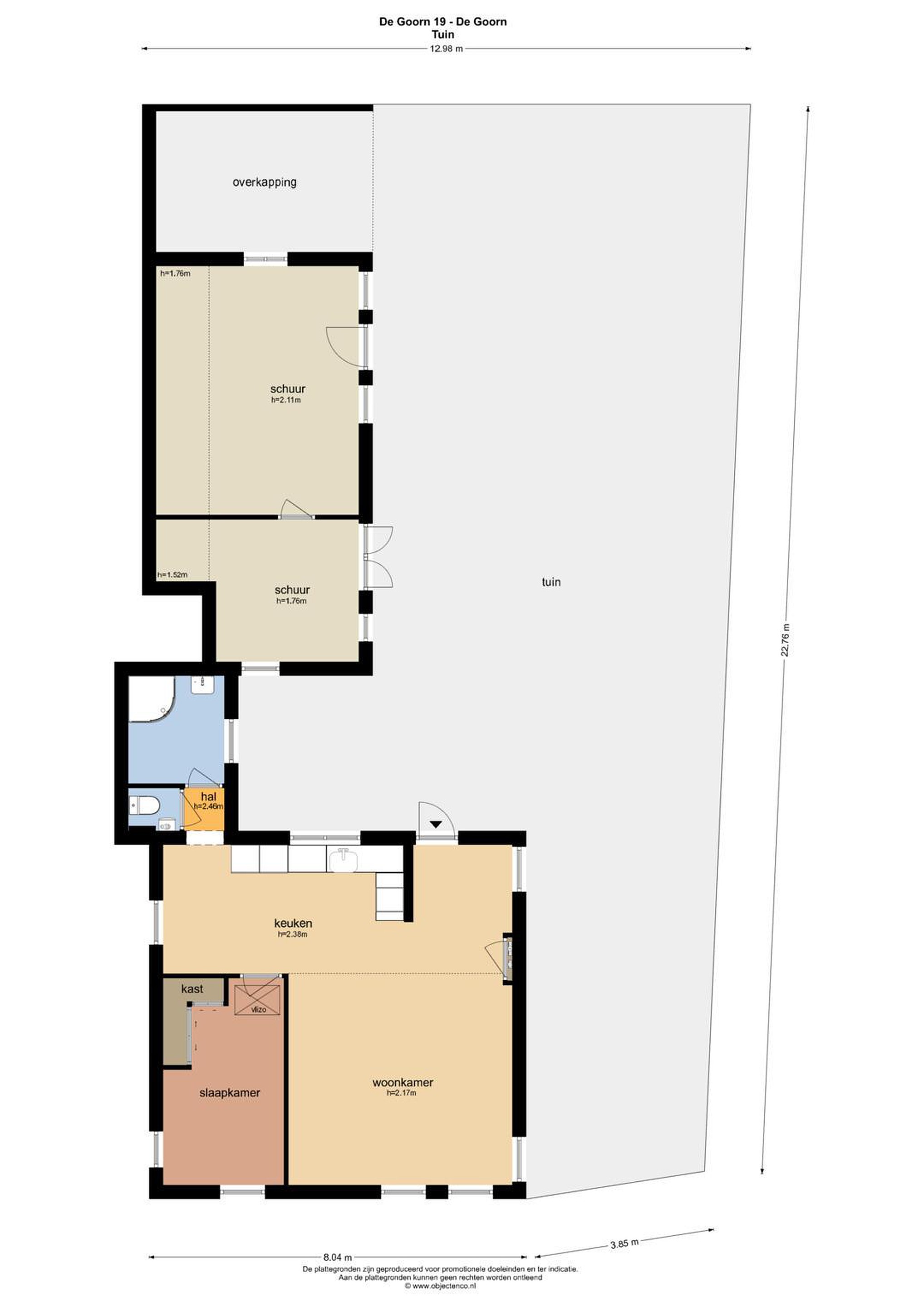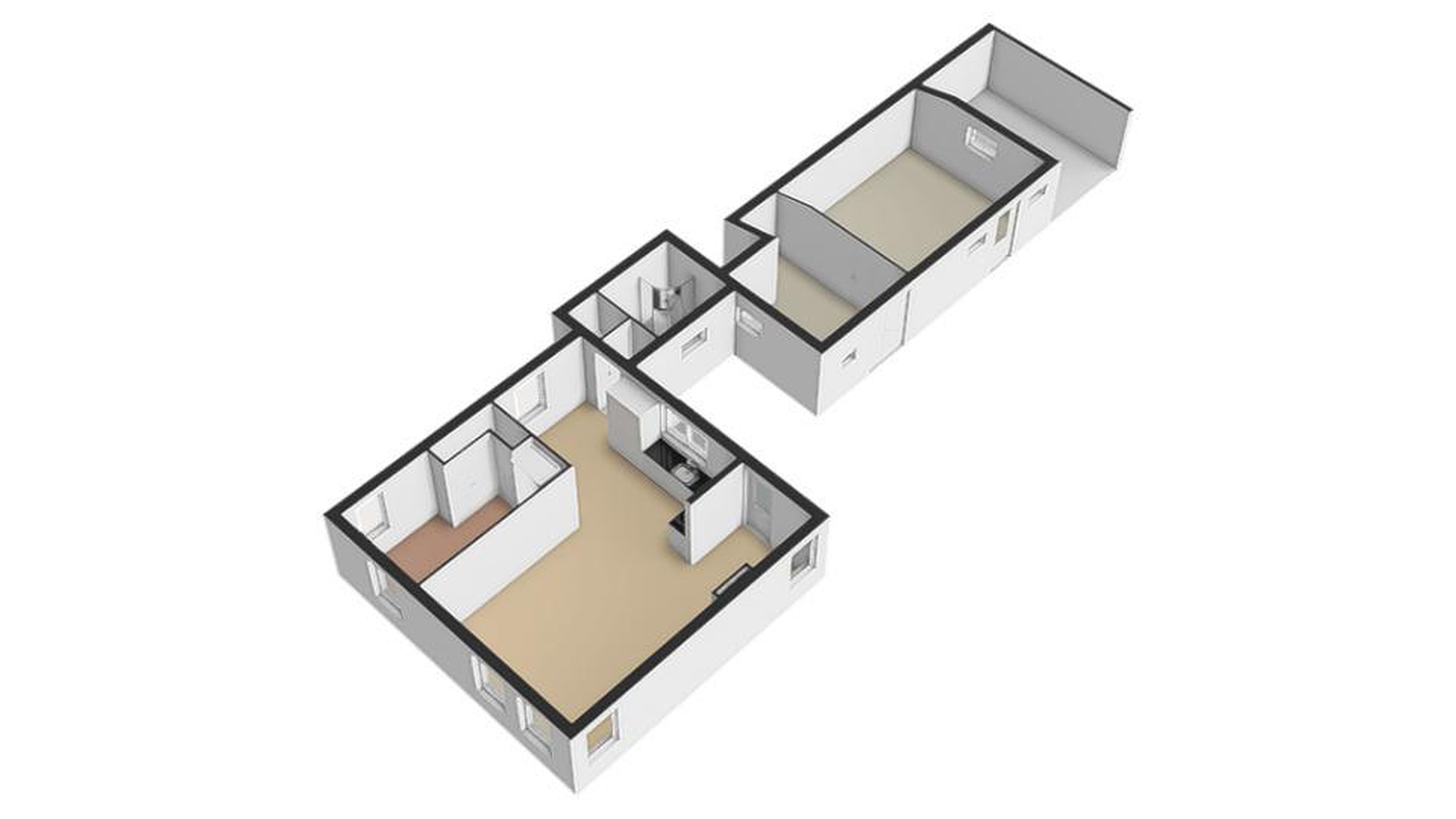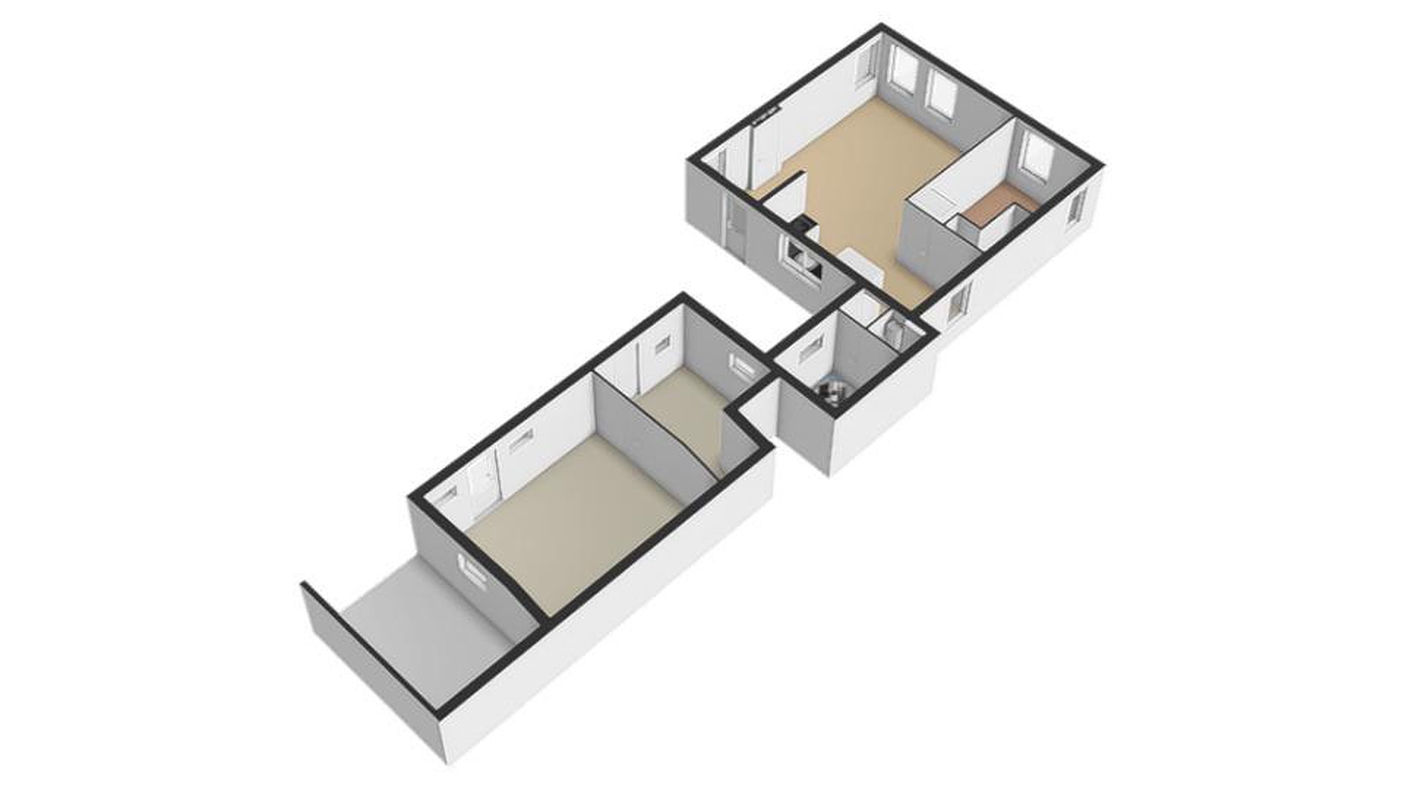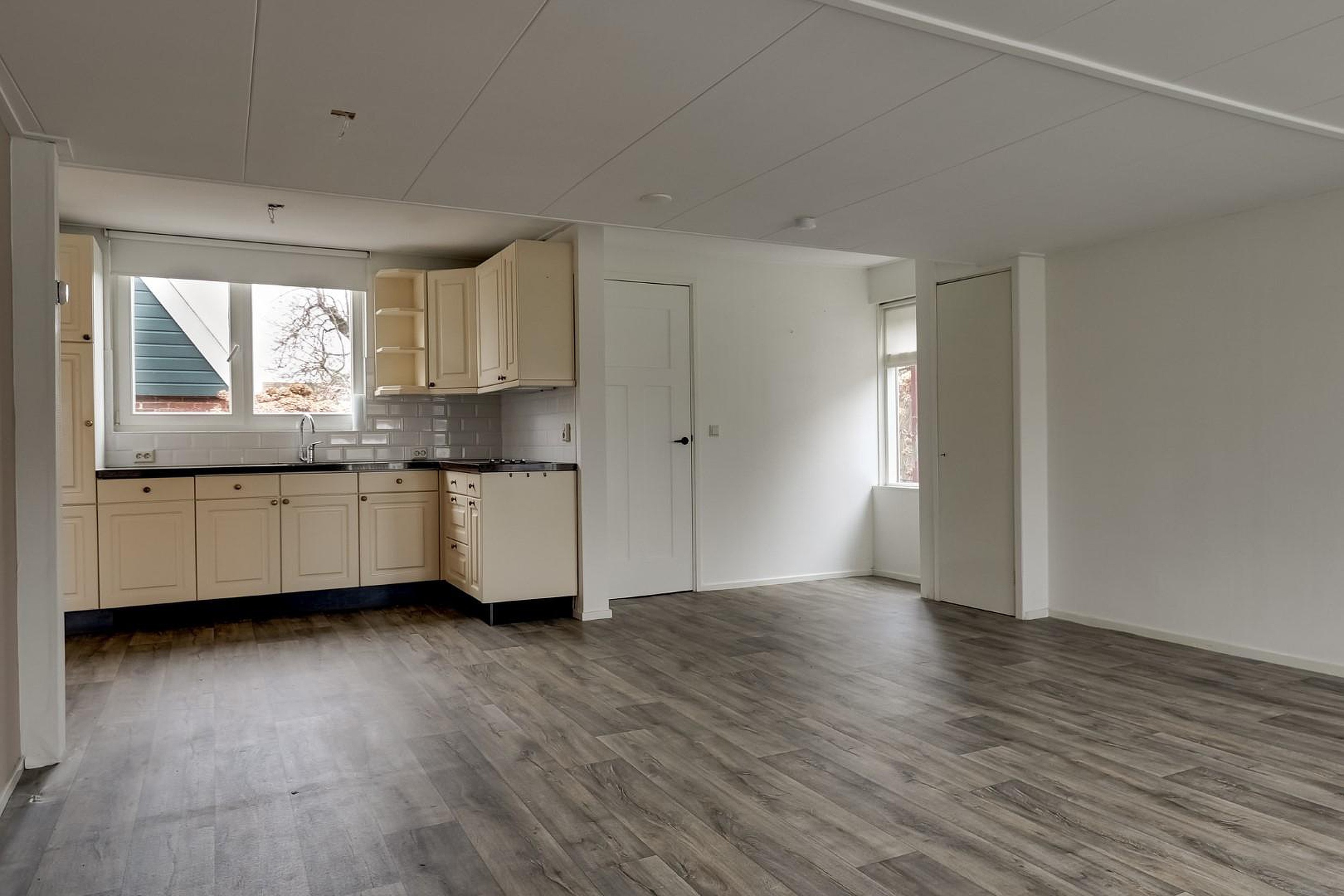 Begane grond Achter entree/hal met garderobekast, woonkamer met meterkast, hoekkeuken voorzien van inbouwapparatuur, slaapkamer, hal met toielt, badkamer met douche, wastafel en wasmachineaansluiting.