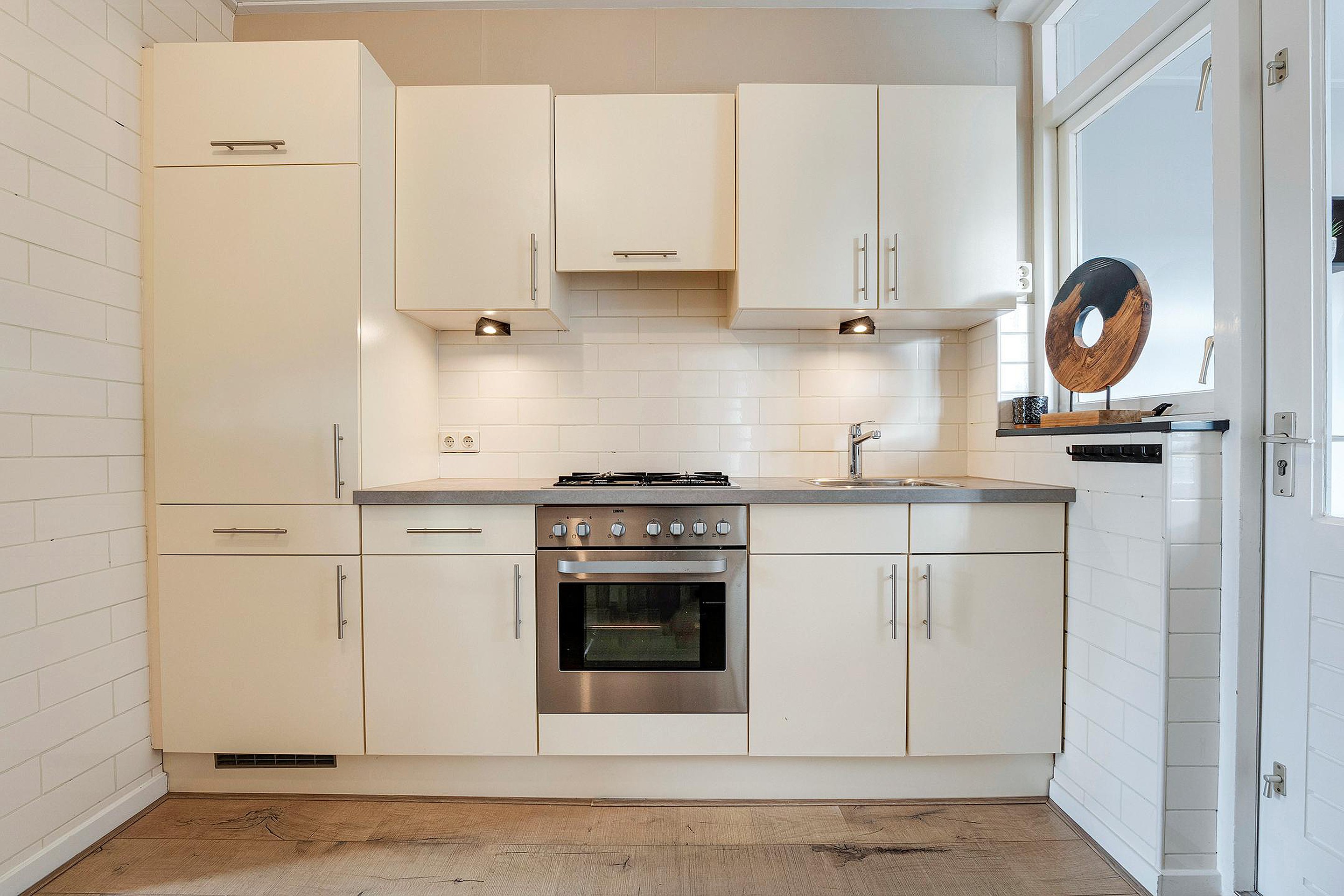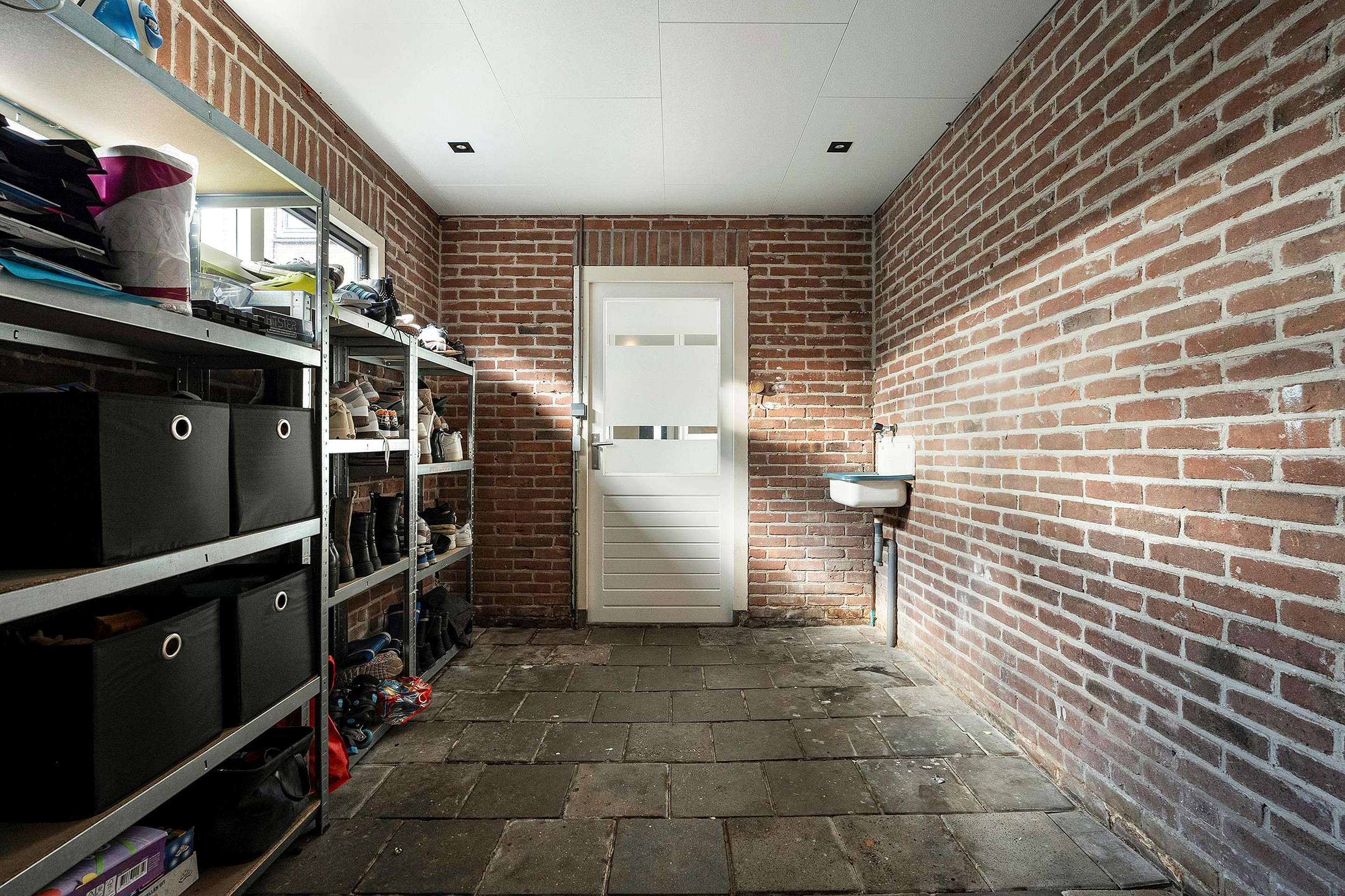 Aan de achterzijde van de woning bevinden zich de bijkeuken met wasmachine-aansluitingen, c.v. installatie (Intergas HR, 2017) en voorraadkast.