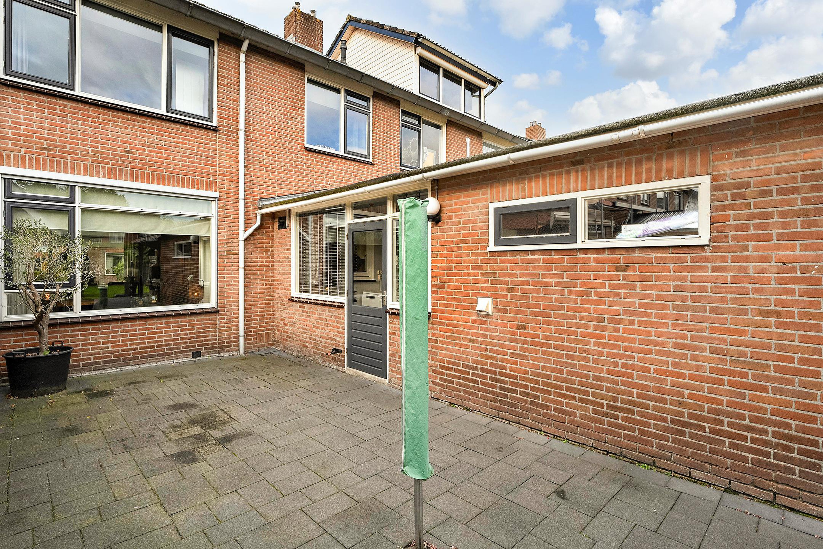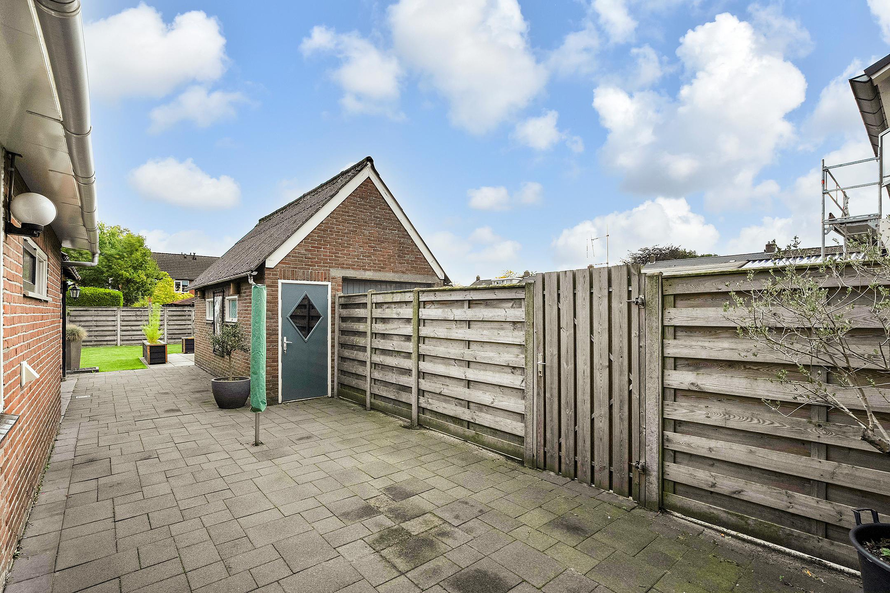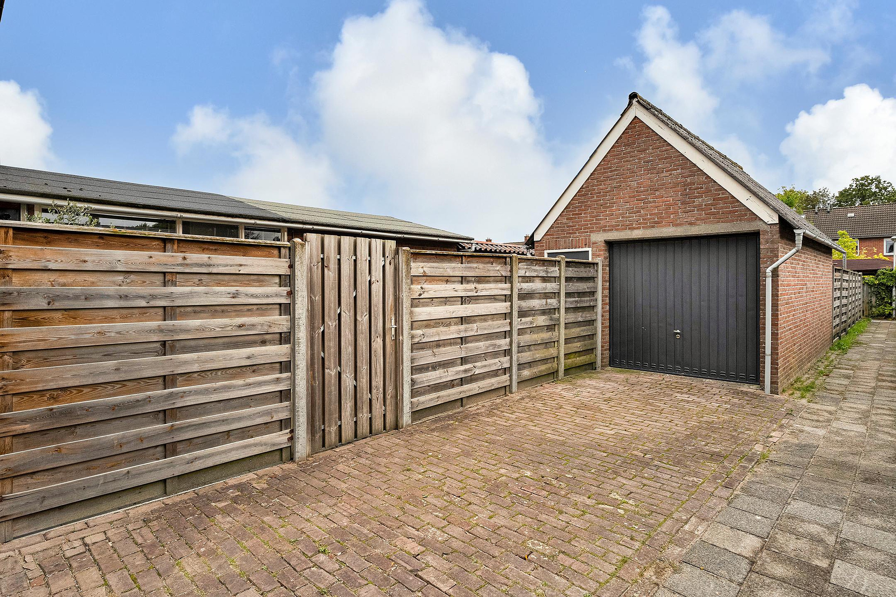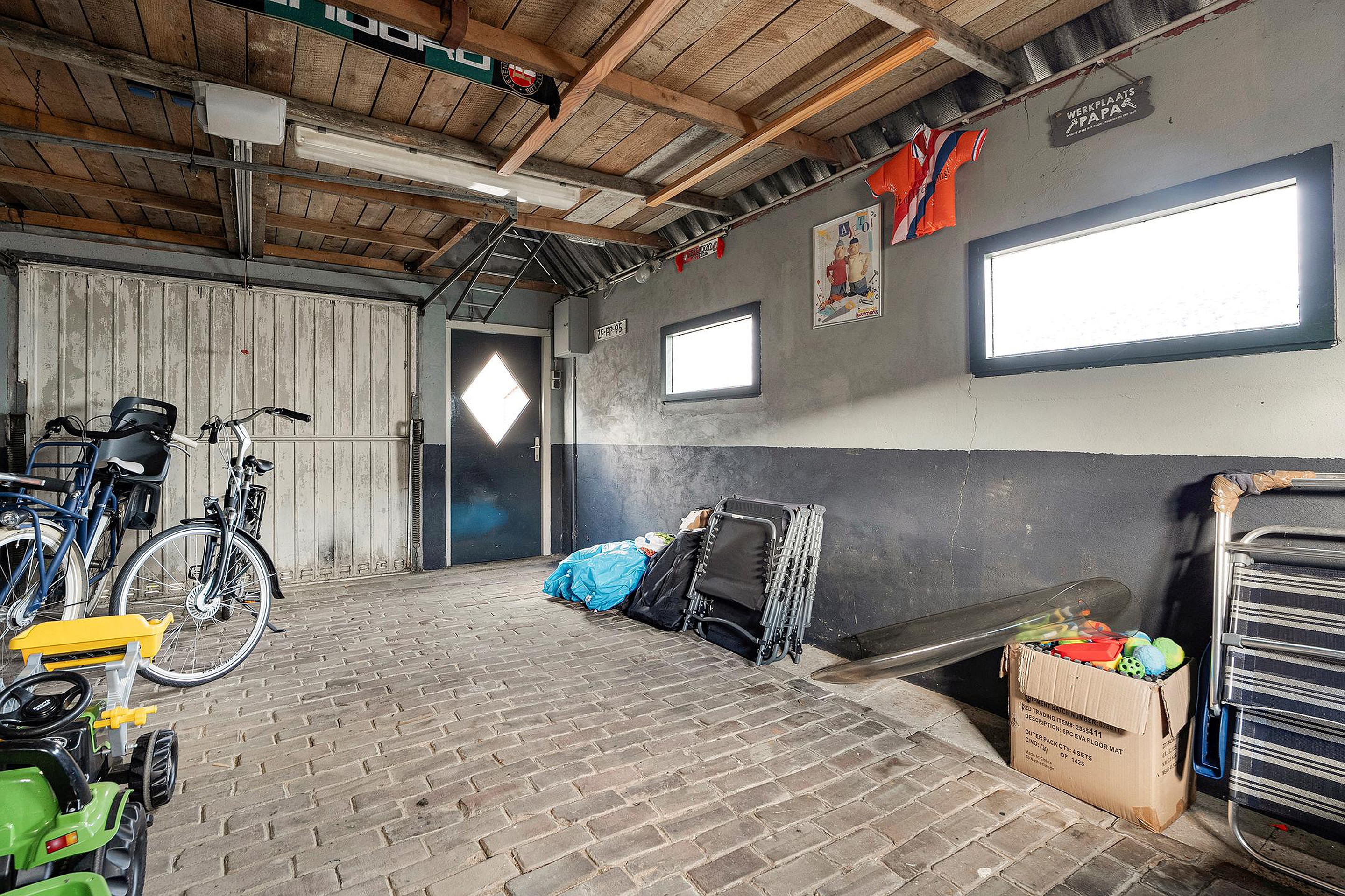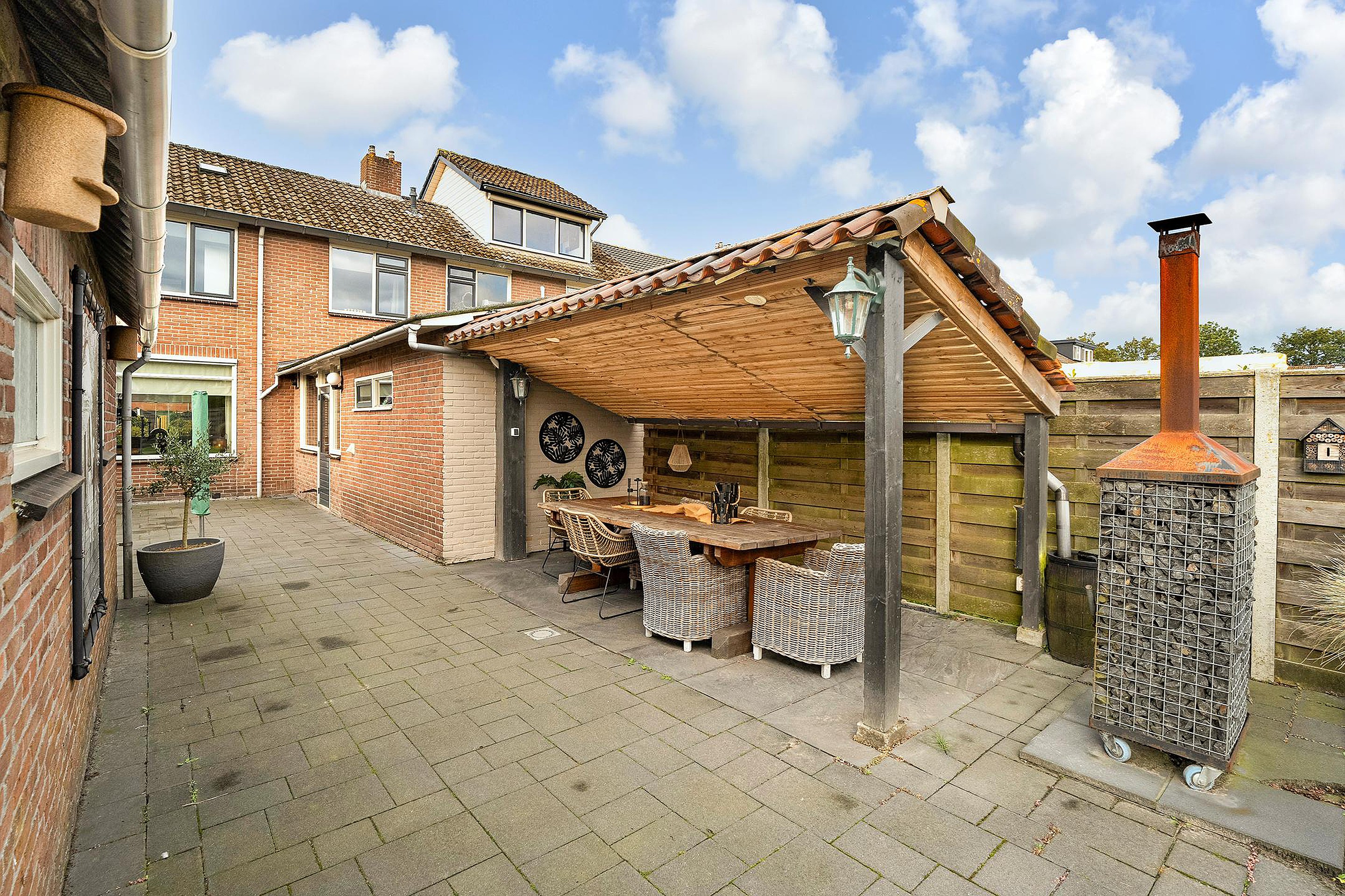 Bijzonder diep bemeten achtertuin (perceel 401m2) met verschillende terrassen, overkapping en vrijstaande garage (7x4) met vliering.