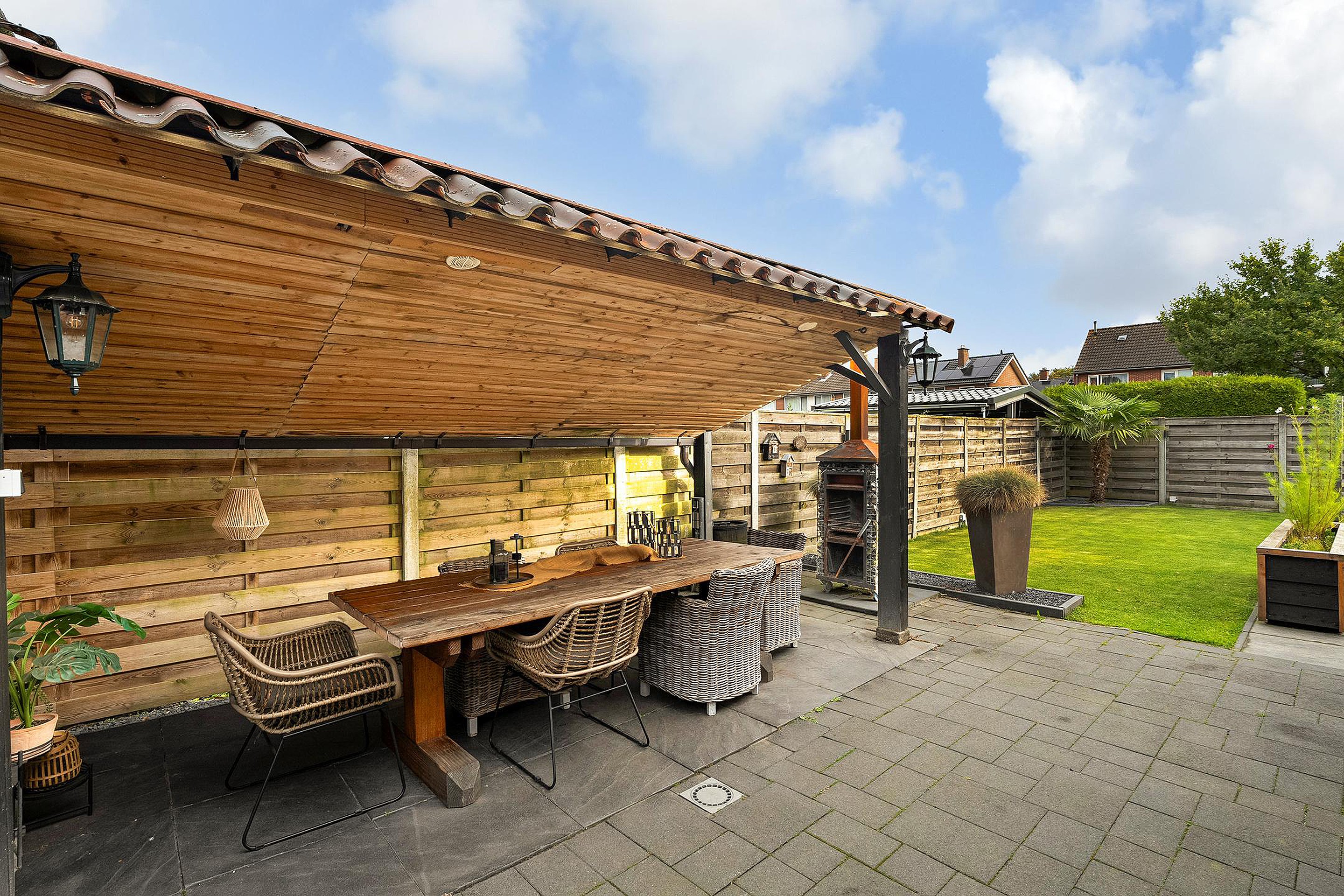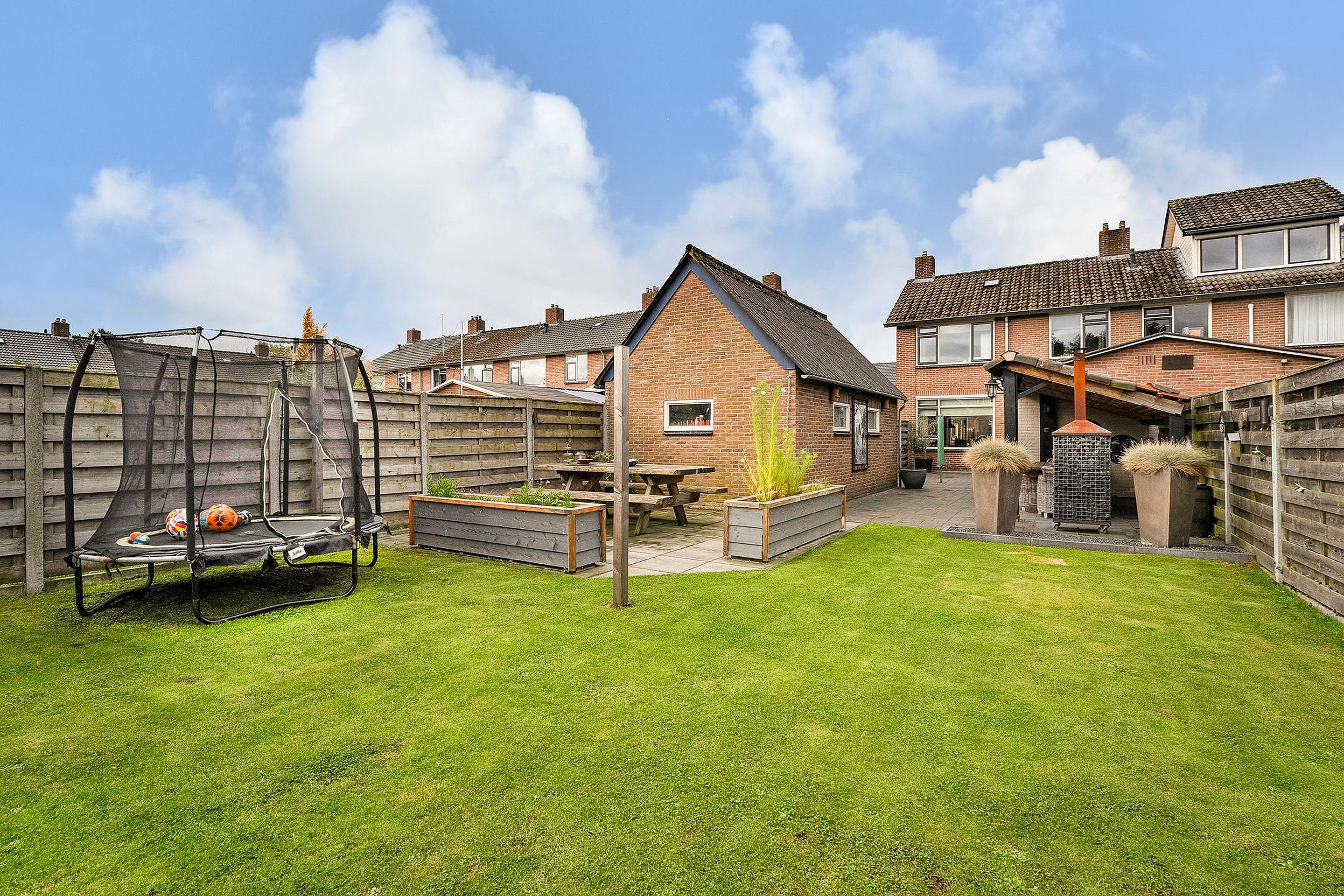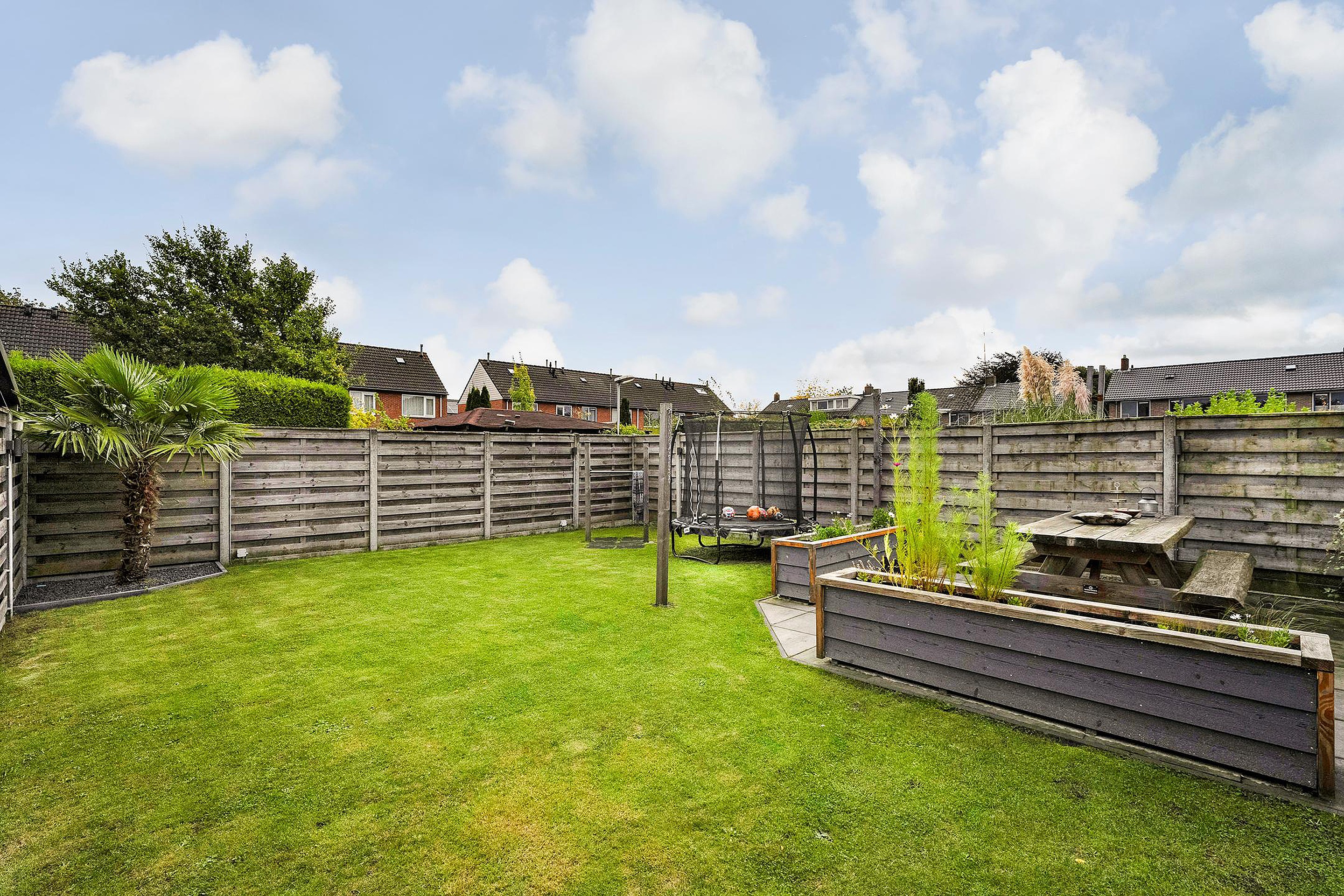 Eén blik op deze tuin en je weet: hier kun je nog eens wat kwijt. De achtertuin is diep, zó diep dat je er gerust een trampoline, speeltoestel, moestuin, loungehoek én vuurkorf (of allemaal!) kwijt kunt. Met meerdere terrassen heb je altijd zon, schaduw of juist een knus hoekje. Geef die barbecue-uitnodiging maar vast vorm; hier gaan je zomeravonden nooit meer hetzelfde zijn.