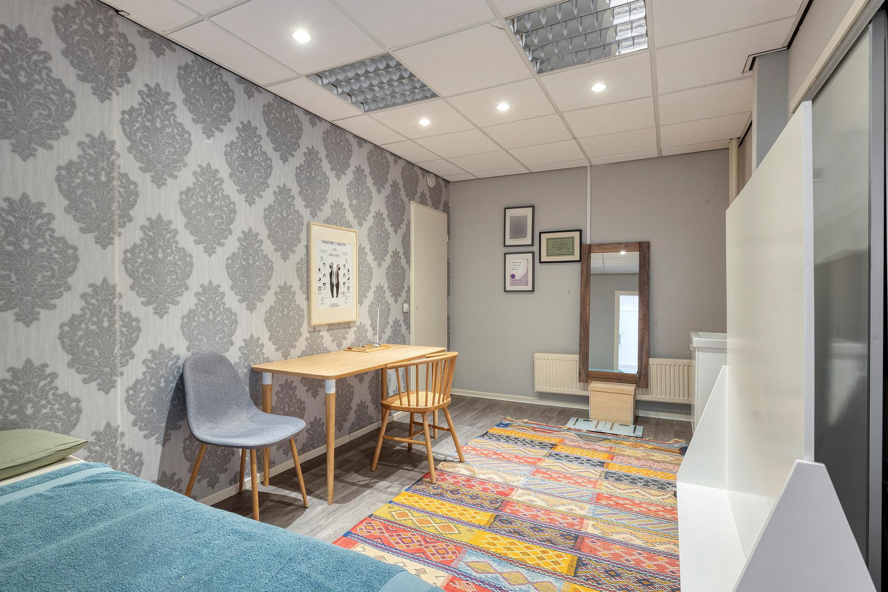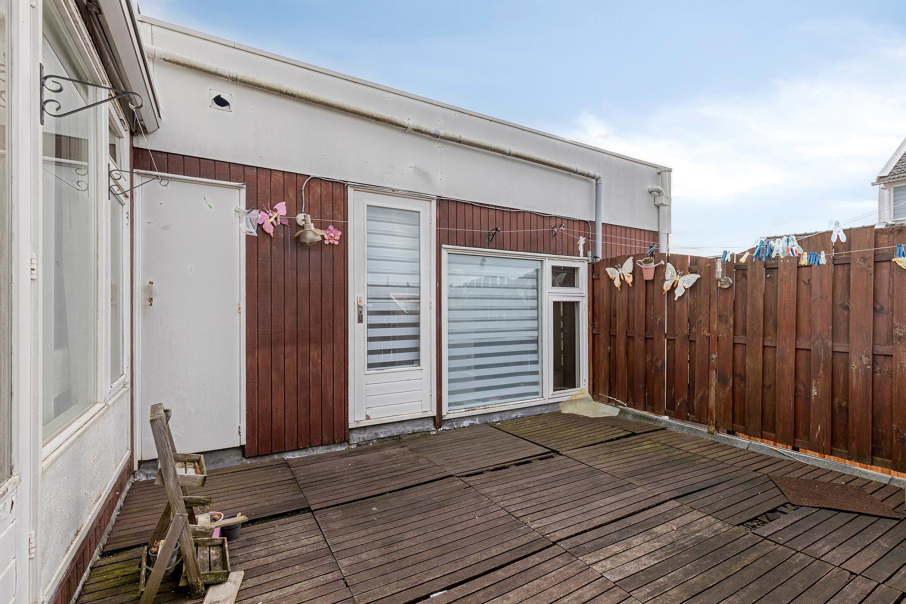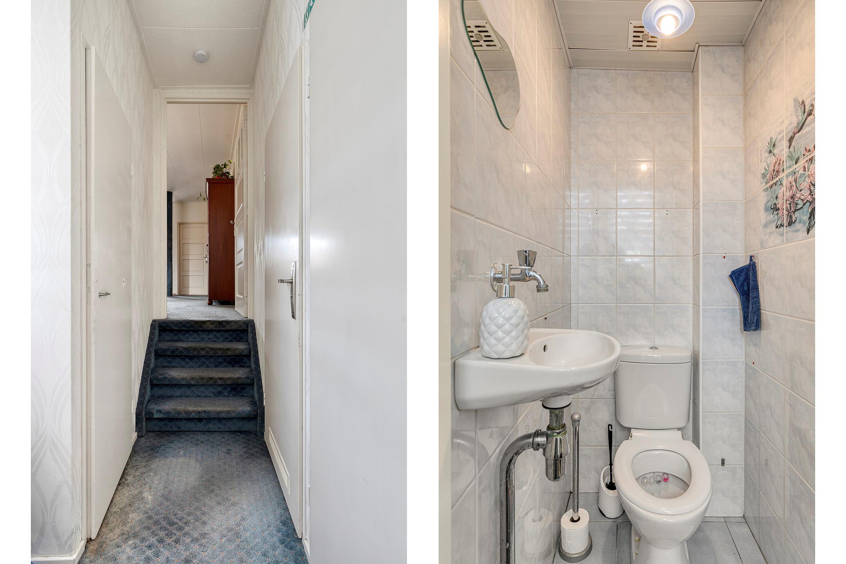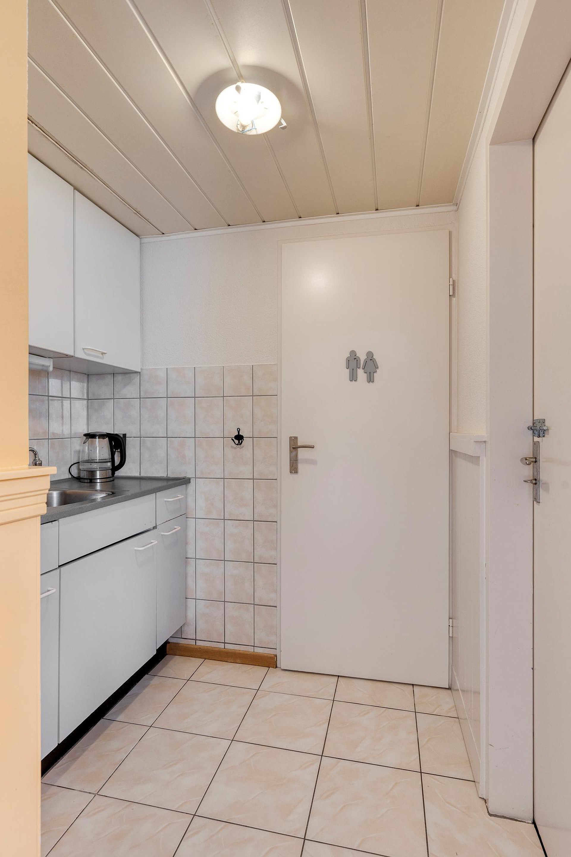 De tweede entree met meterkast geeft toegang tot de werkruimte. Riante werkruimte met schuifpui naar buitenplaats met achterom. Vanuit deze ruimte zijn 2 kamers bereikbaar. 1 kamer is voorzien van een ruime schuifdeurkast, wastafelmeubel en een kleine vaste kast. De tweede kamer is voorzien van een vaste trapkast. De pantry geeft toegang tot het toilet met fontein en de ruime berging met opstelplaats voor wasmachine. Vanuit de berging heeft u toegang tot de stookruimte met opstelplaats voor HR-combiketel (Remeha 2021). Vanuit de berging is ook de buitenplaats bereikbaar.