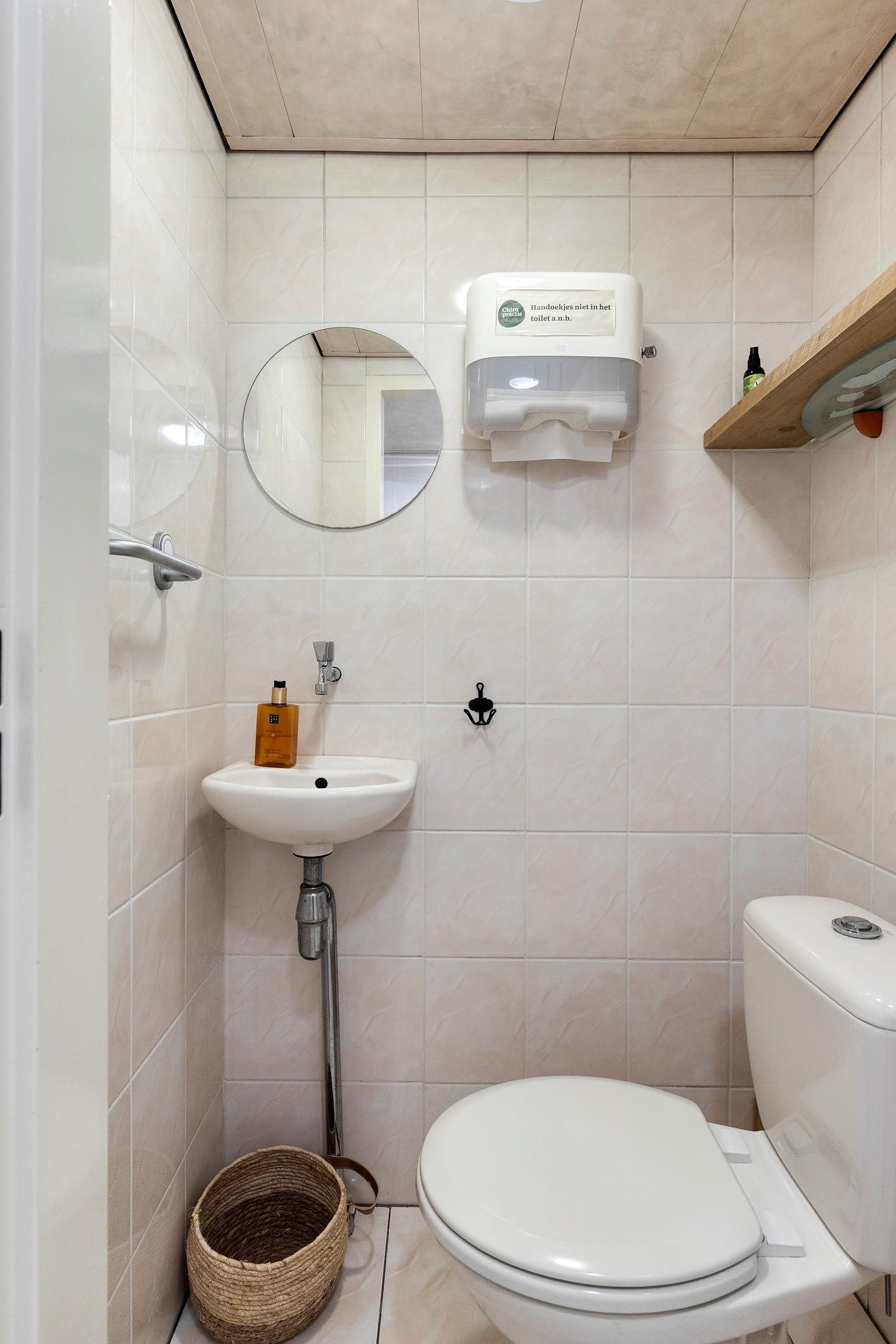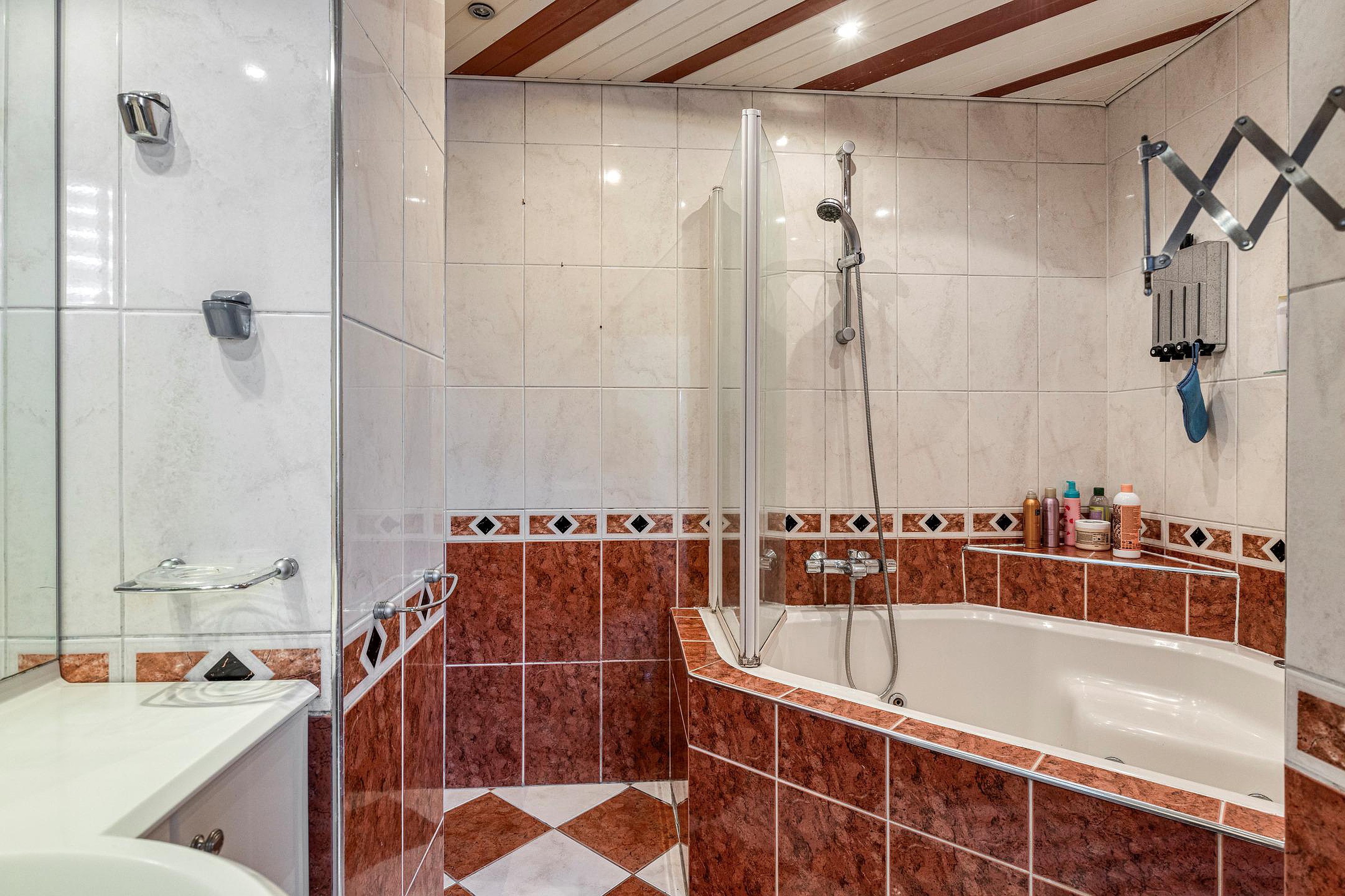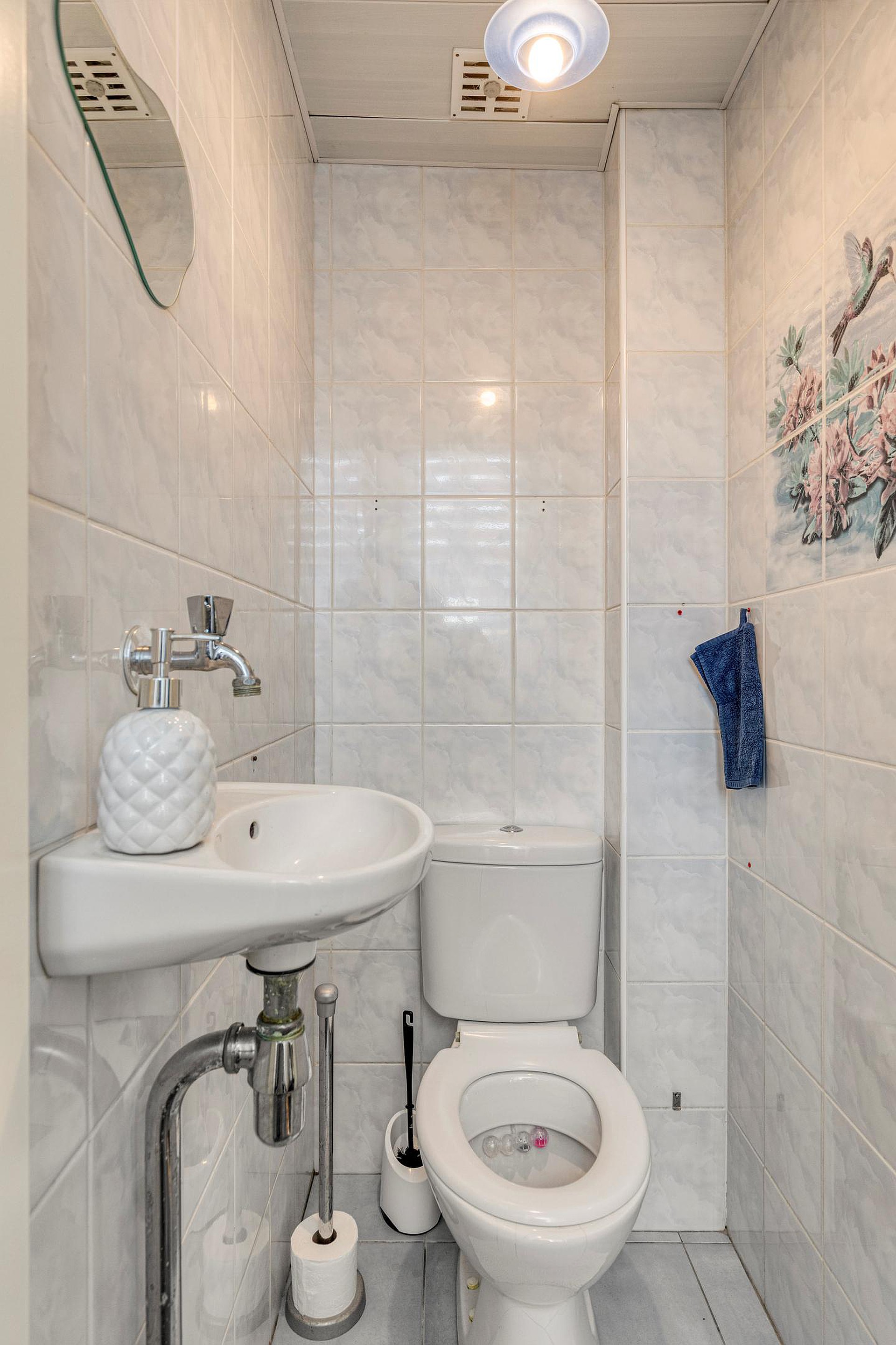 Aan de achterzijde van deze verdieping bereikt u via een tussenhal met vaste kast de badkamer, separaat toilet met fontein en de ruime slaapkamer aan de achterzijde van het pand. De badkamer is voorzien van zit-ligbad (whirlpool), wastafelmeubel en designradiator. Separaat toilet met fonteintje.