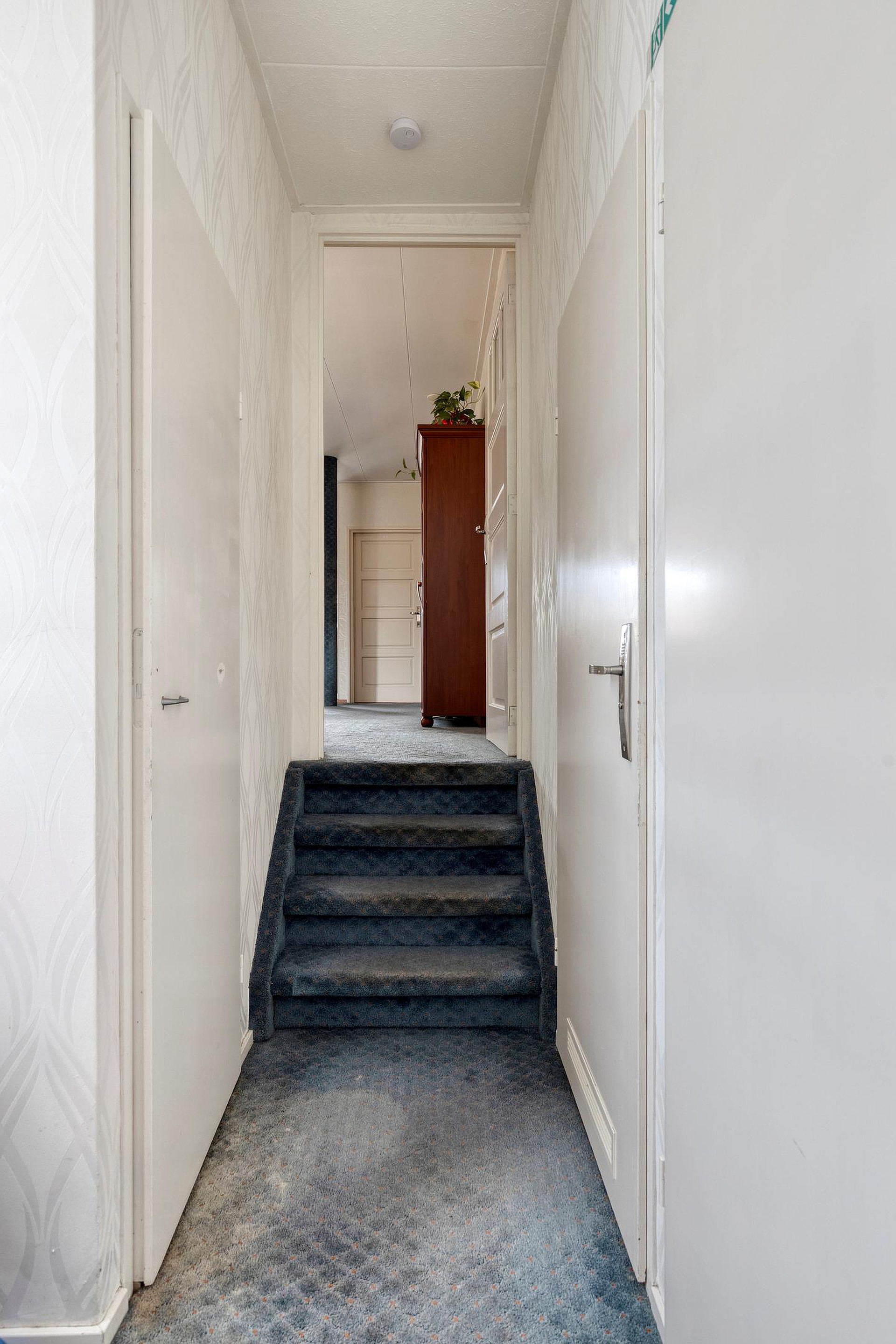 Vanuit de linker entree op de begane grond bereikt u via de vaste trap de eerste etage, die momenteel als woonverdieping wordt gebruikt. De overloop geeft toegang tot 2 slaapkamers en de ruime woonkamer met halfopen keuken voorzien van diverse apparatuur. Vanuit de woonkamer is er toegang tot een slaap/werkkamer aan de voorzijde van het pand.