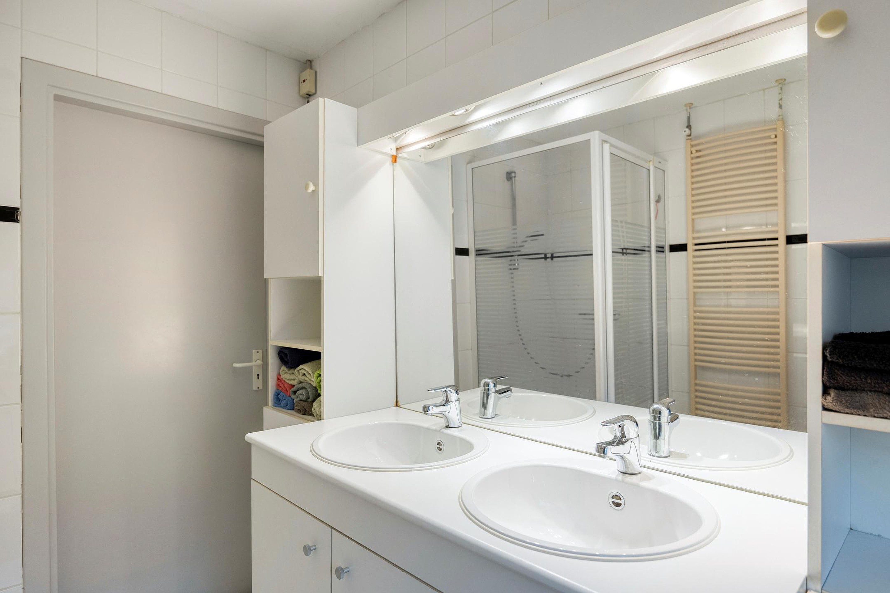Op deze etage zijn 2 ruime slaapkamer gelegen. De volledig betegelde badkamer is voorzien van een douchecabine, wastafelmeubel met dubbele wastafel en wandtoilet. Wasruimte met opstelplaats voor de wasmachine. Deze etage is voorzien van een donkere laminaatvloer.
